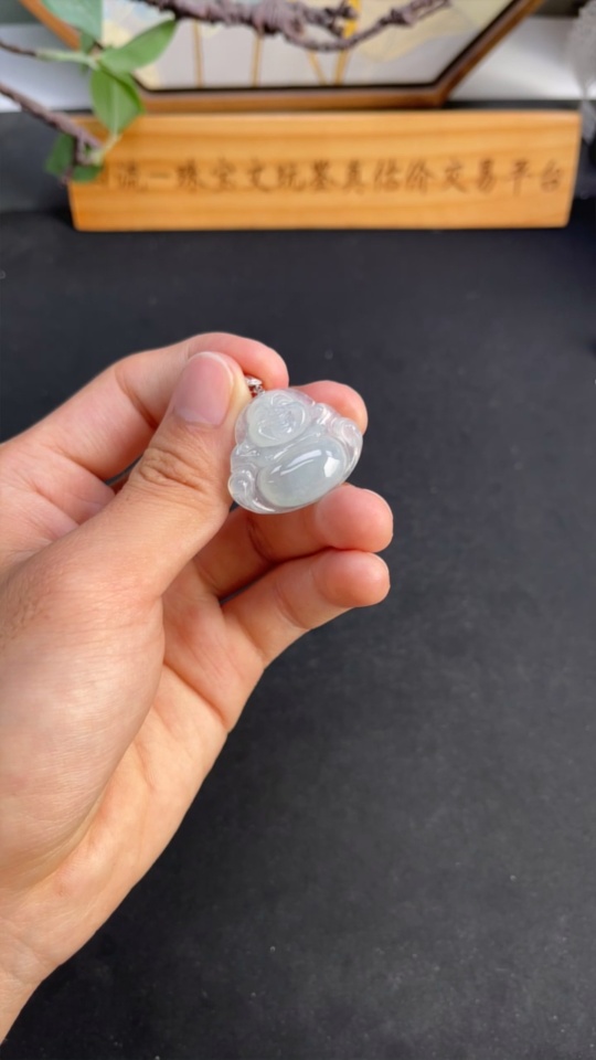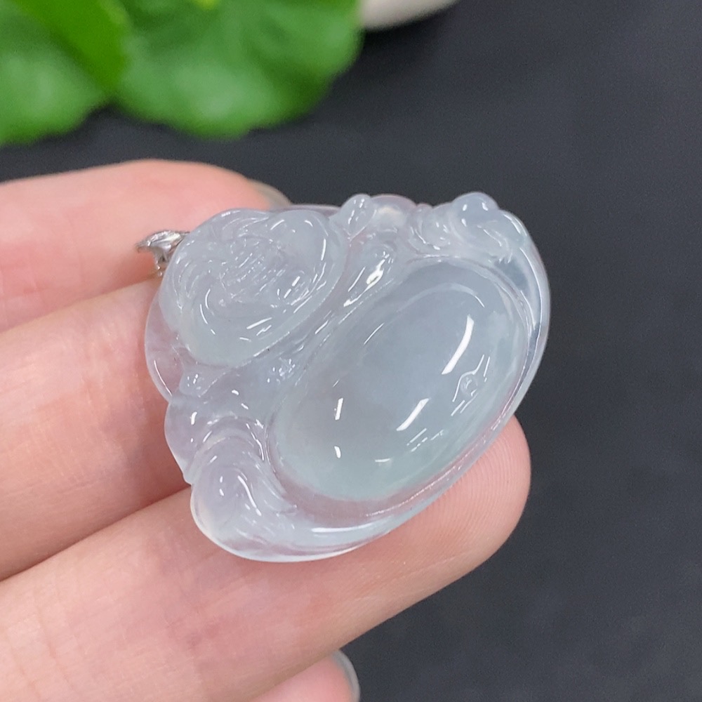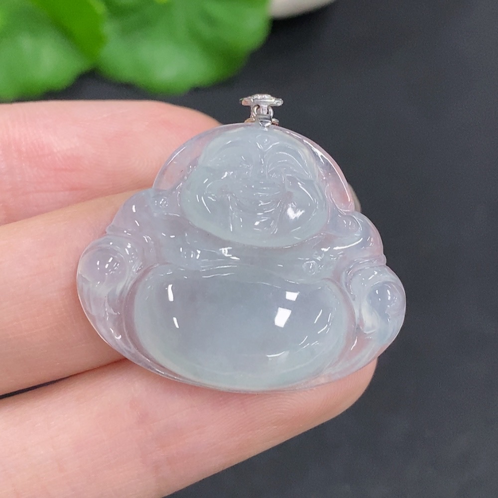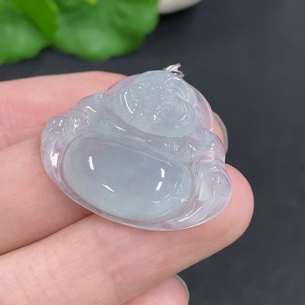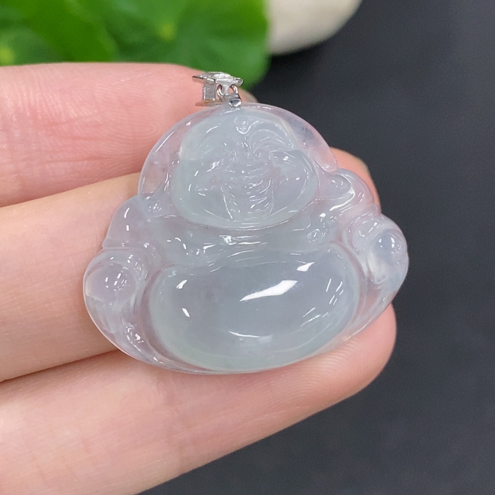 Jadeite Buddha Pendant with 18K Gold Clasp, Total Weight Approximately 6.2g, Diamond Accented