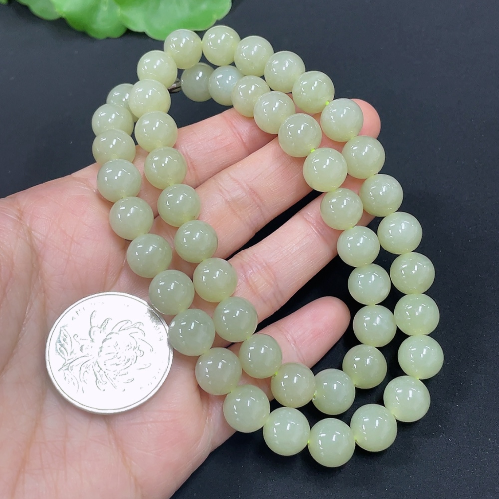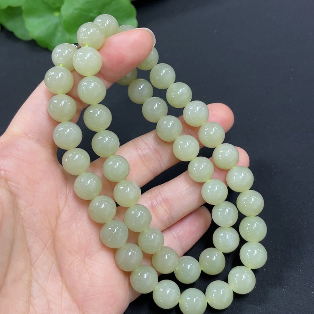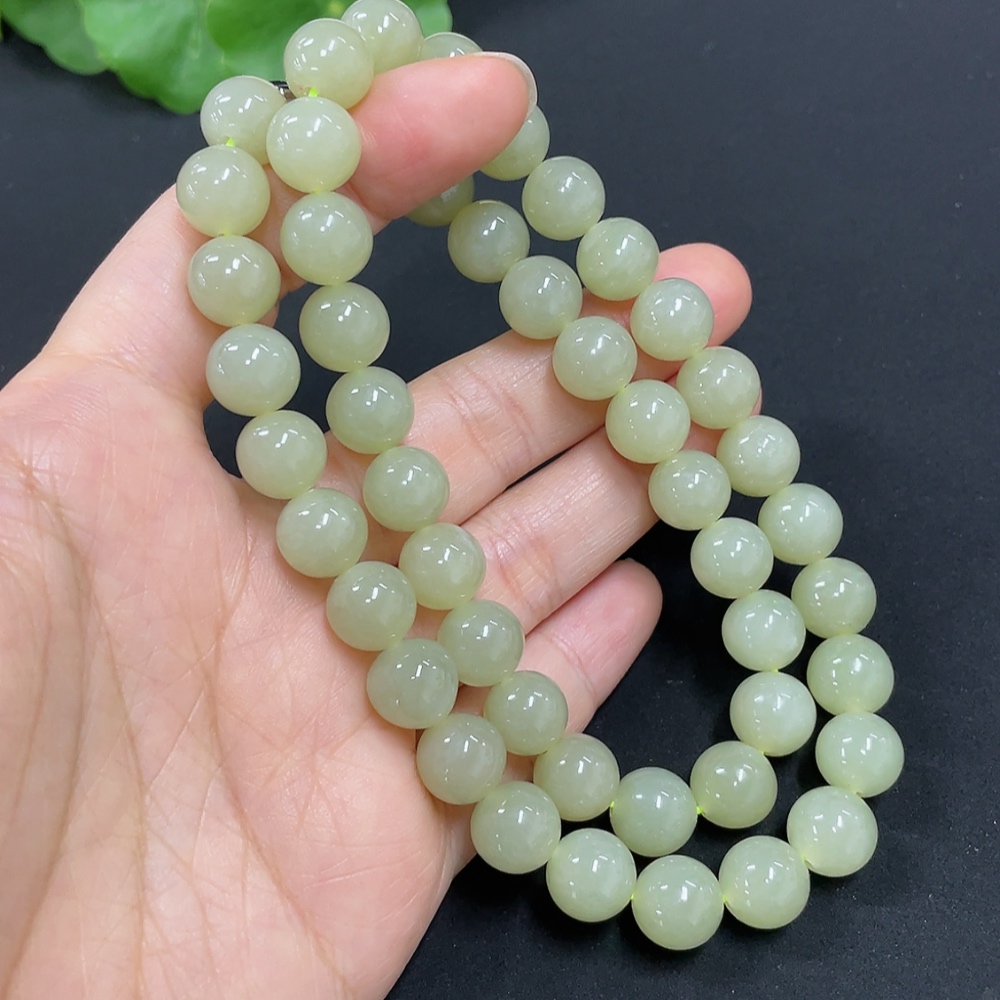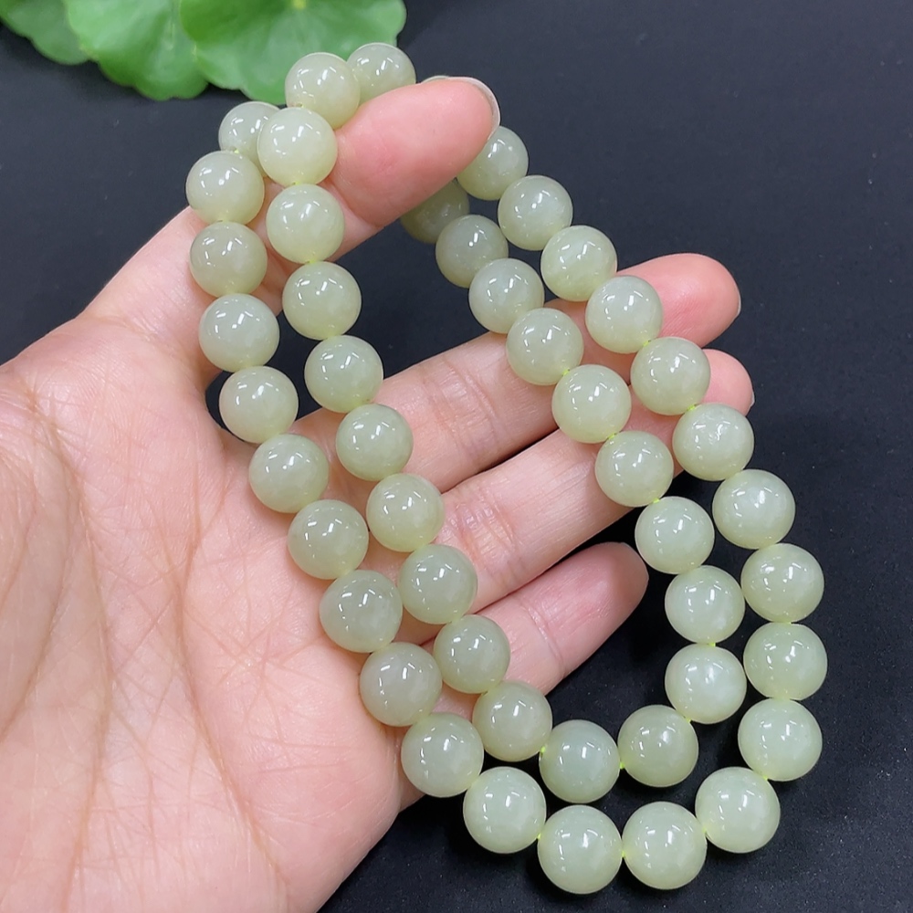 Hetian Jade Bead Necklace, Approx. 9.1mm, Total Weight Approx. 62.1g