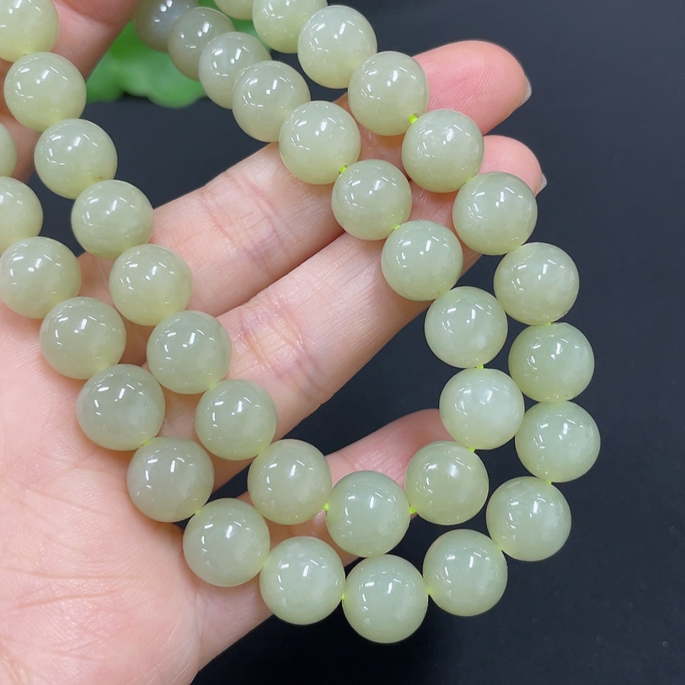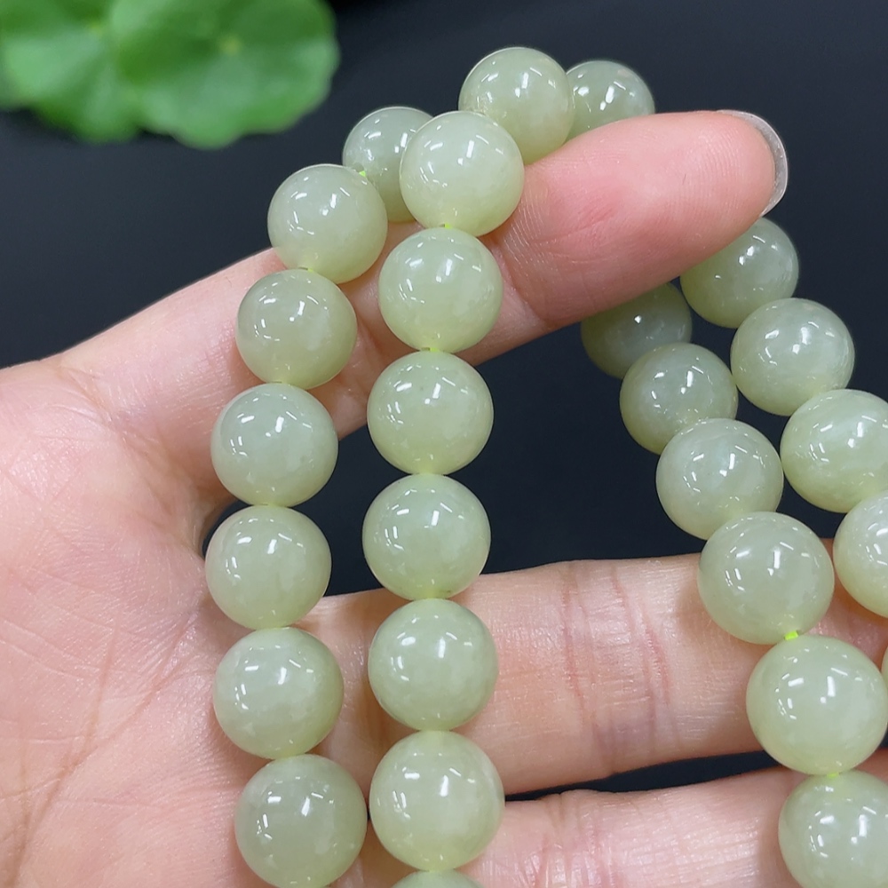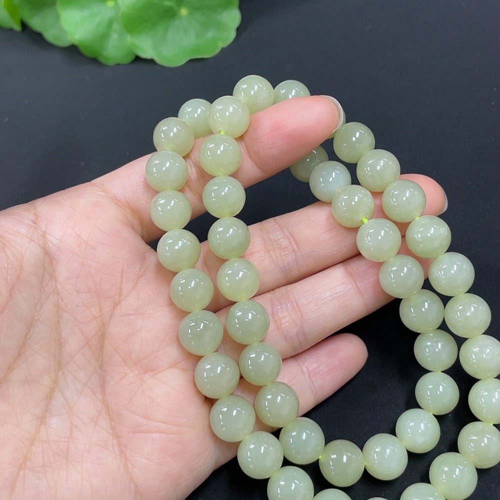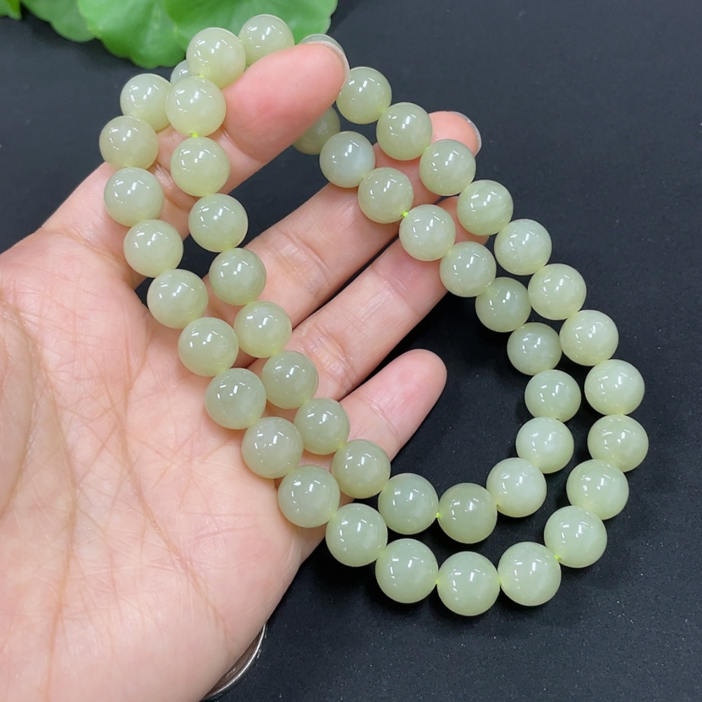 Hetian Jade Bead Necklace, Approx. 9.1mm, Total Weight Approx. 62.1g