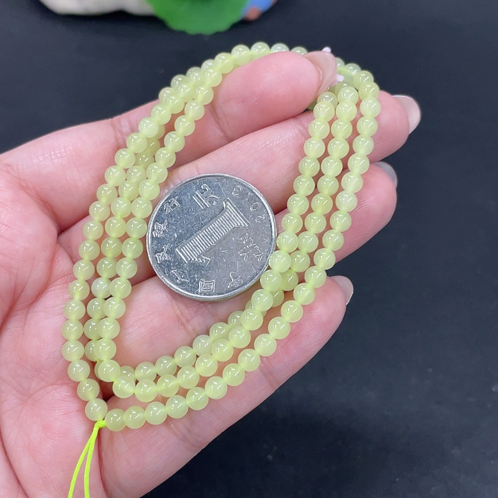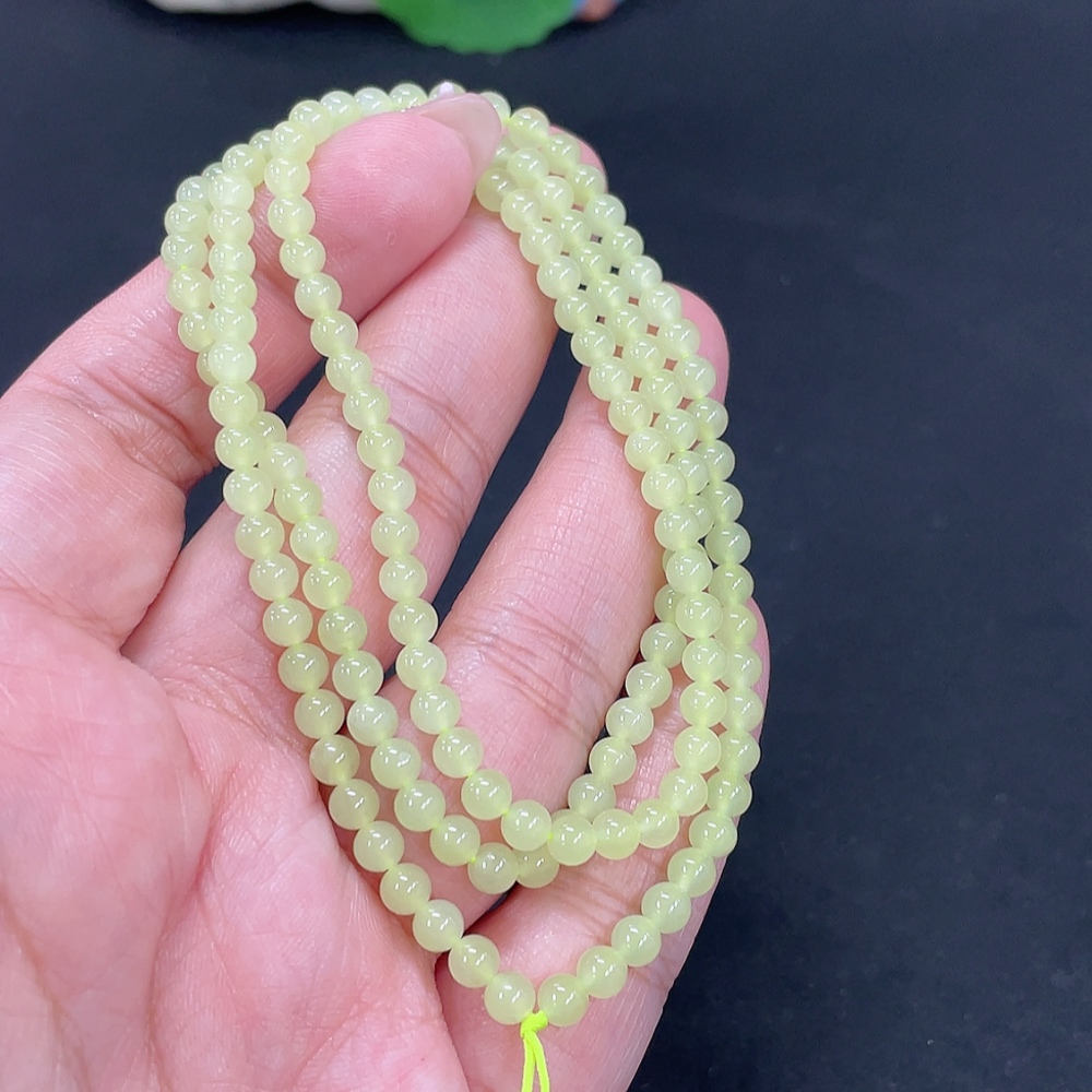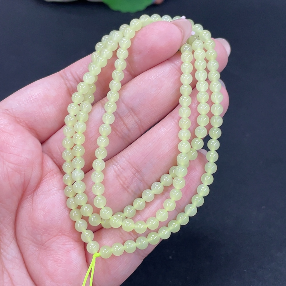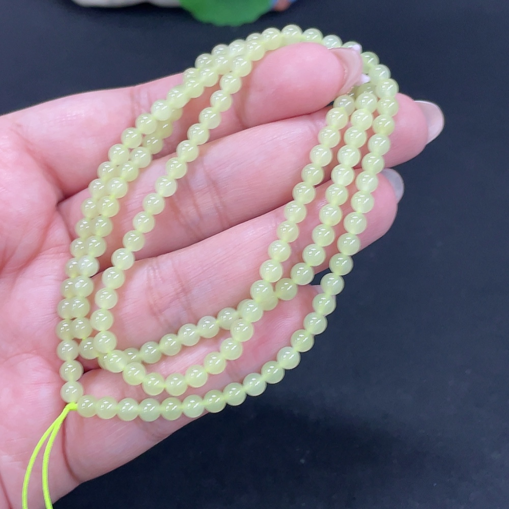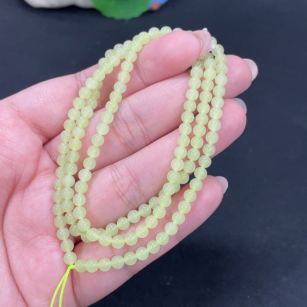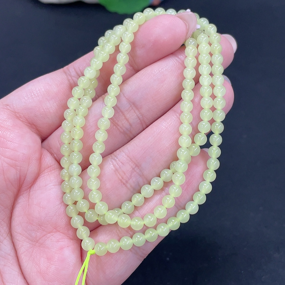 Hetian Jade Bead Necklace, Approx. 3.8mm, Total Weight Approx. 14.3g