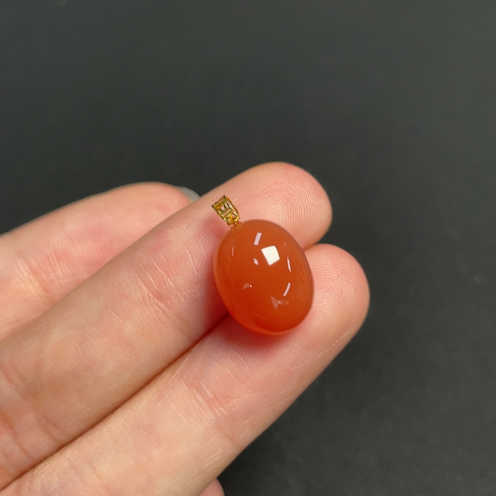 Red Agate Pendant Unmarked 18K Gold Tested Total Weight Approx. 1.19g