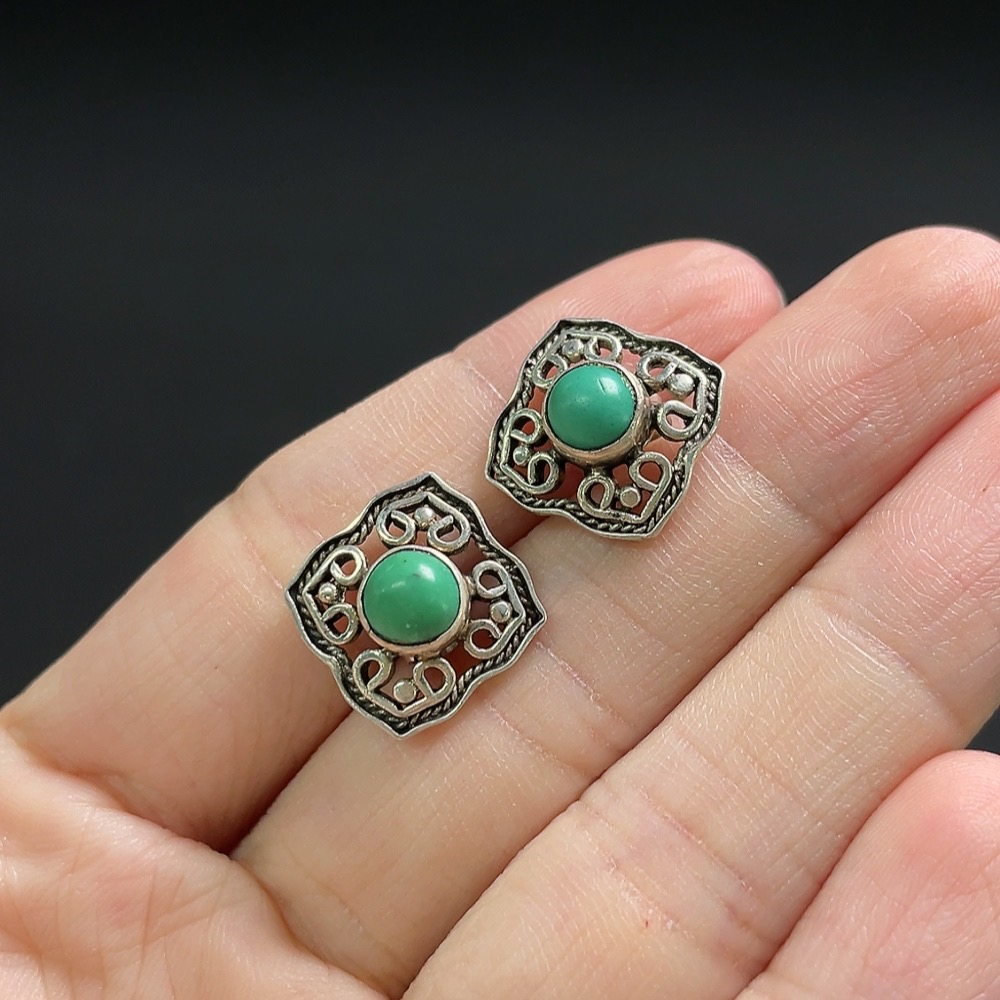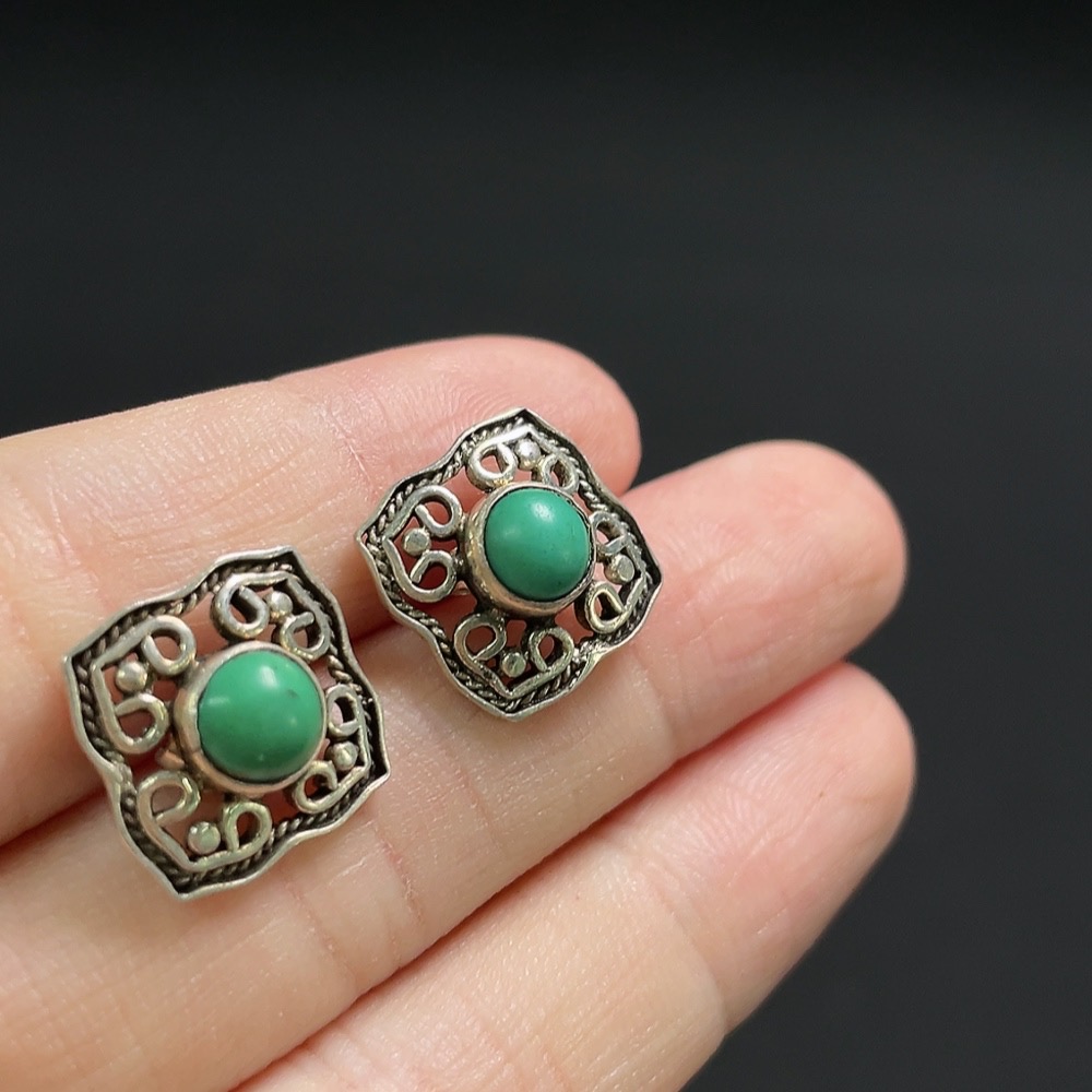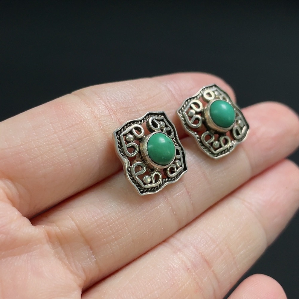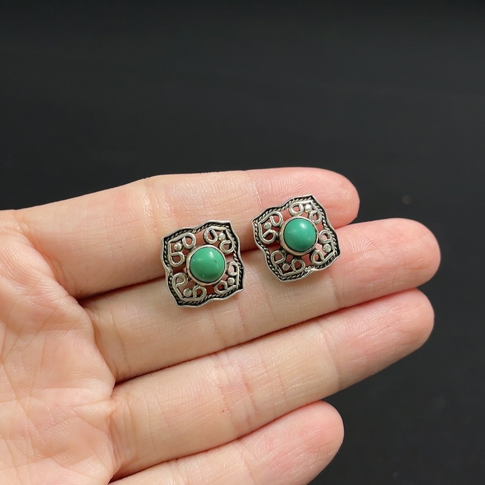 Turquoise earrings containing other mineral components, non-gold, total product weight approximately 2.8g, size about 5.2mm