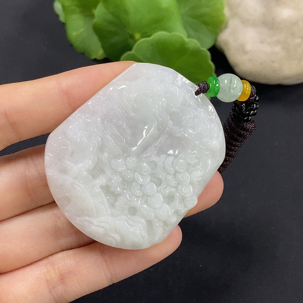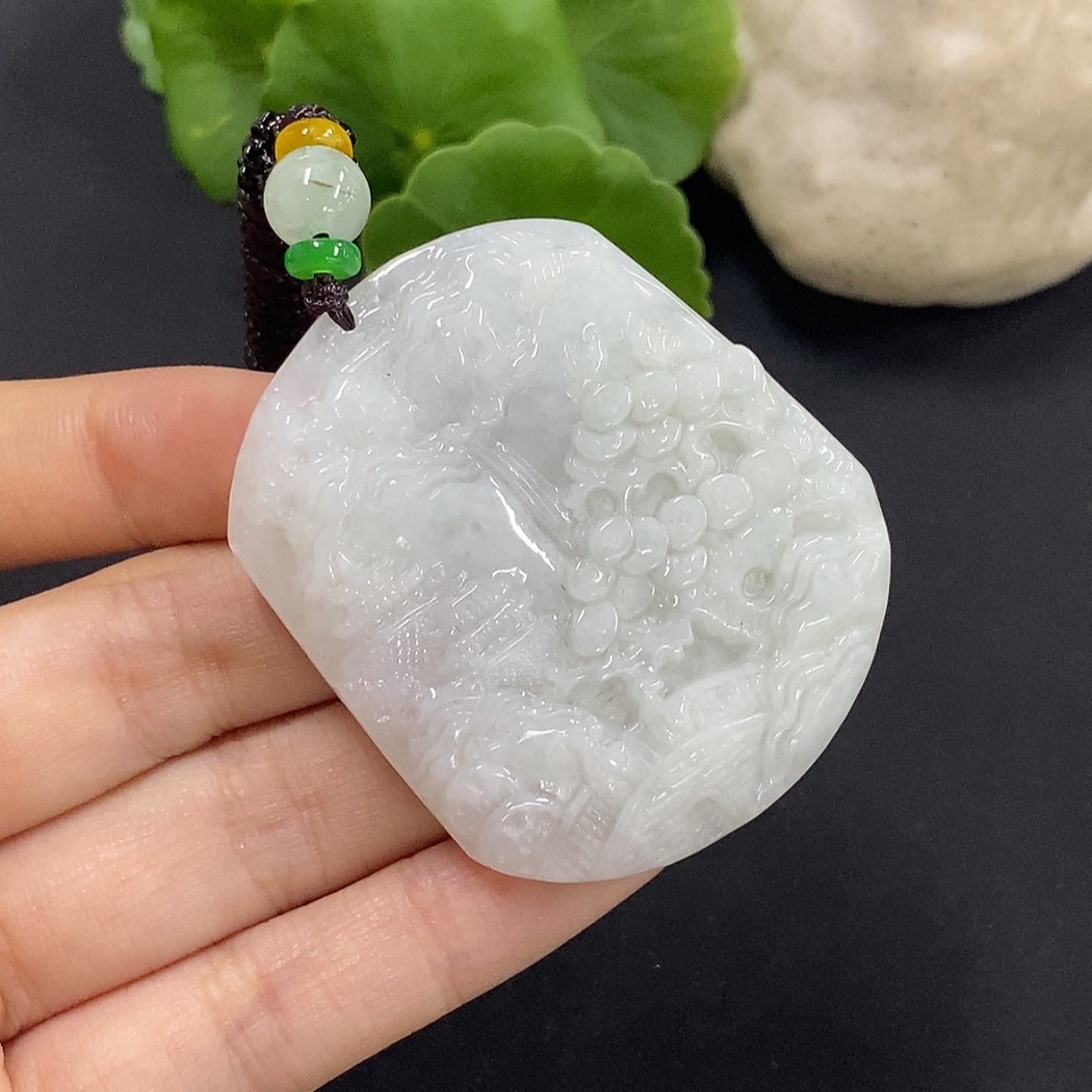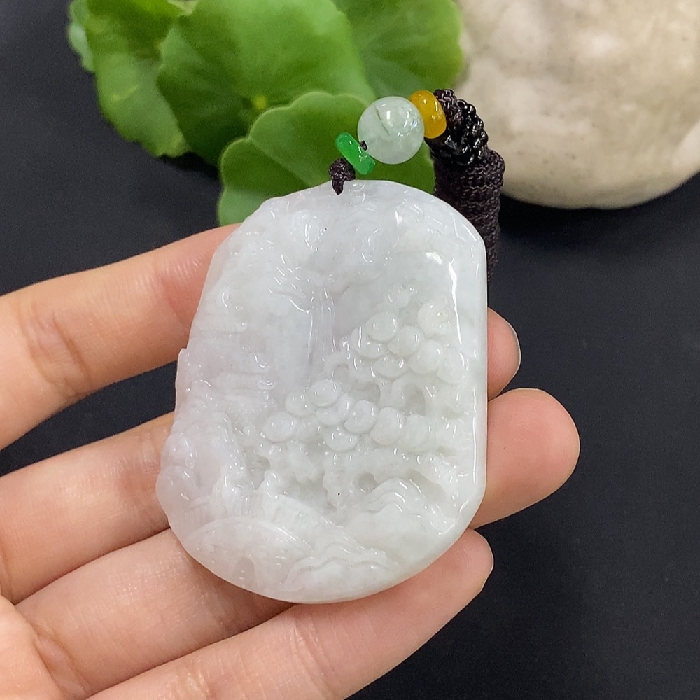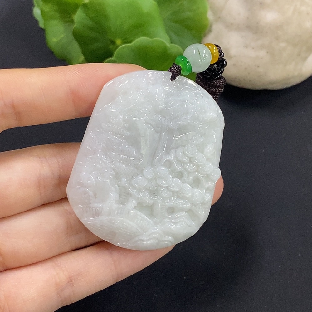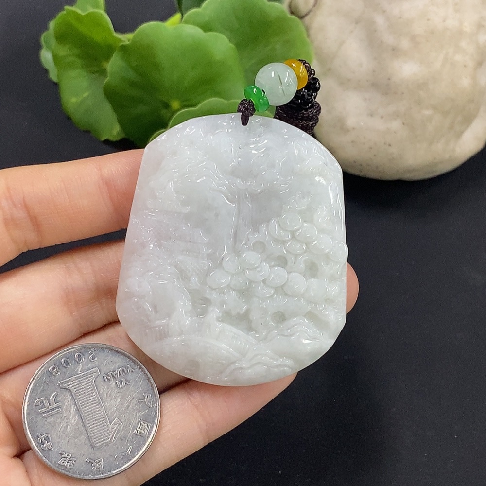 Jadeite Landscape Pendant with Non-A Grade Beads, Total Weight Approximately 35.52g
