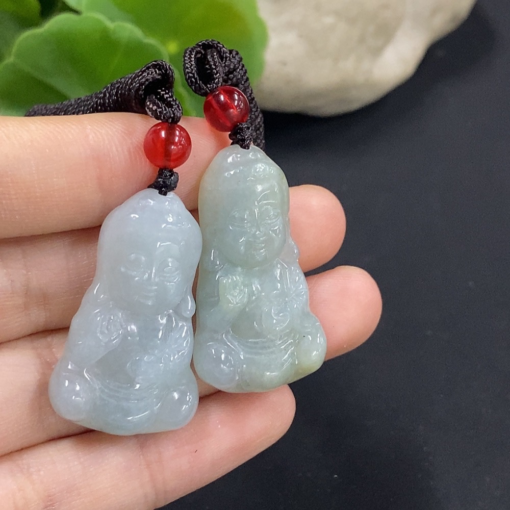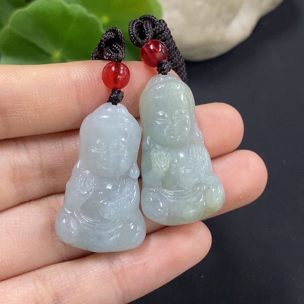 Jadeite Baby Buddha Pendant with Non-A Grade Beads