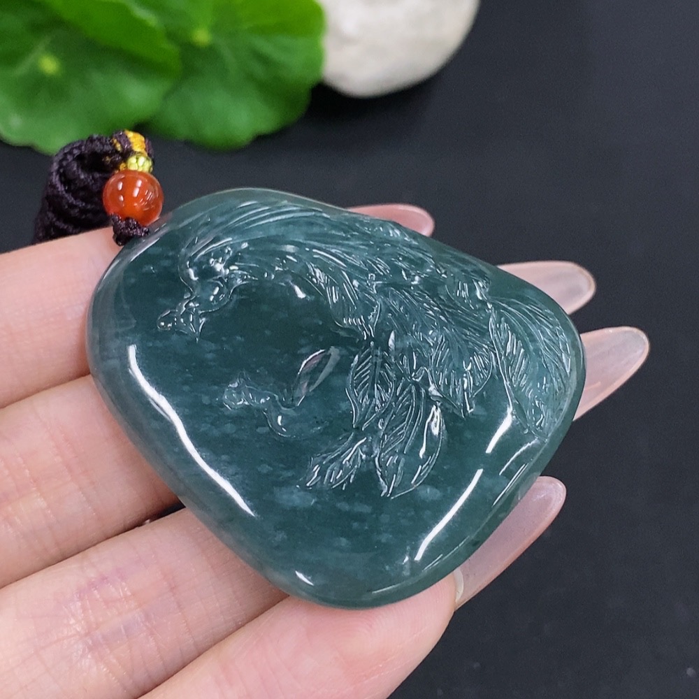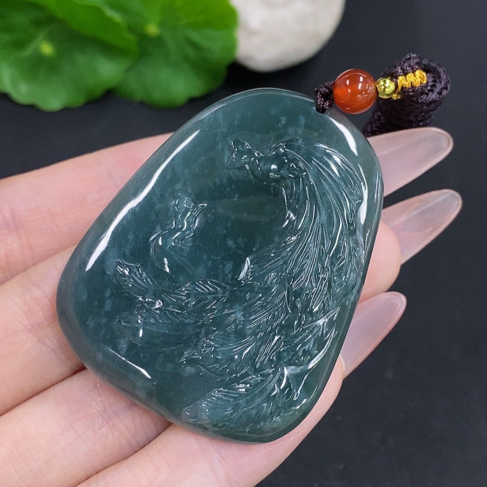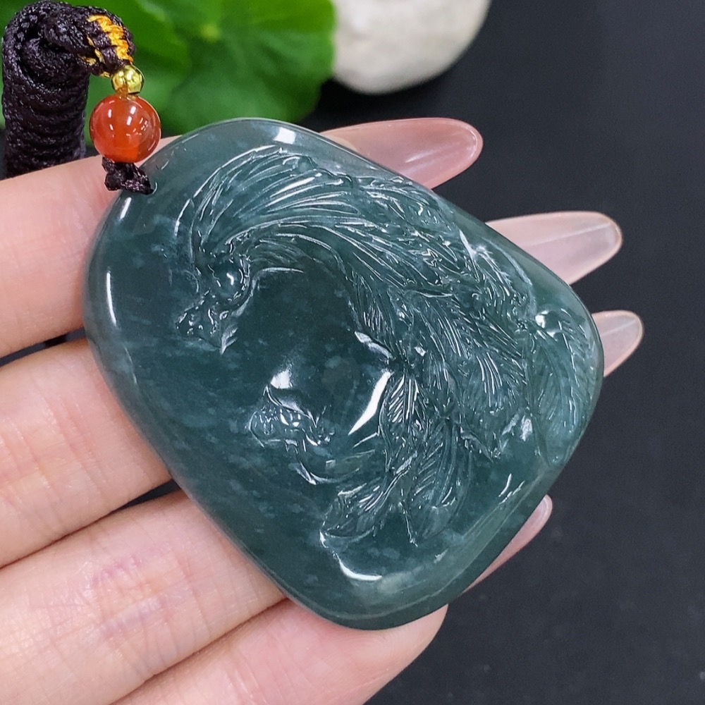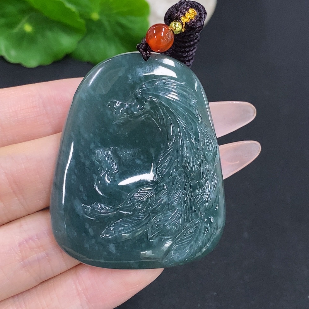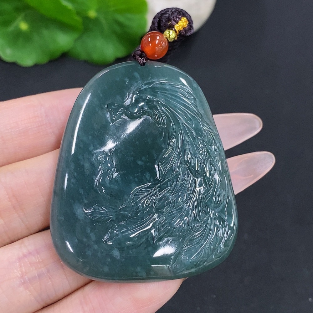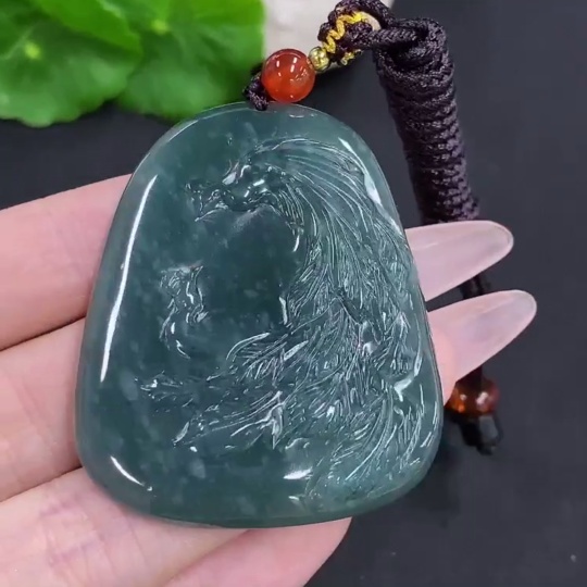 Jadeite Phoenix Pendant Total Weight Including Rope Approx. 28g (Matching Beads Non-Grade A)