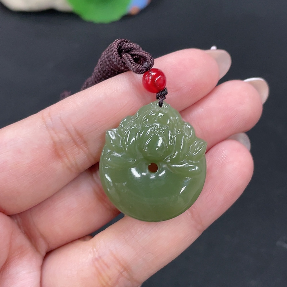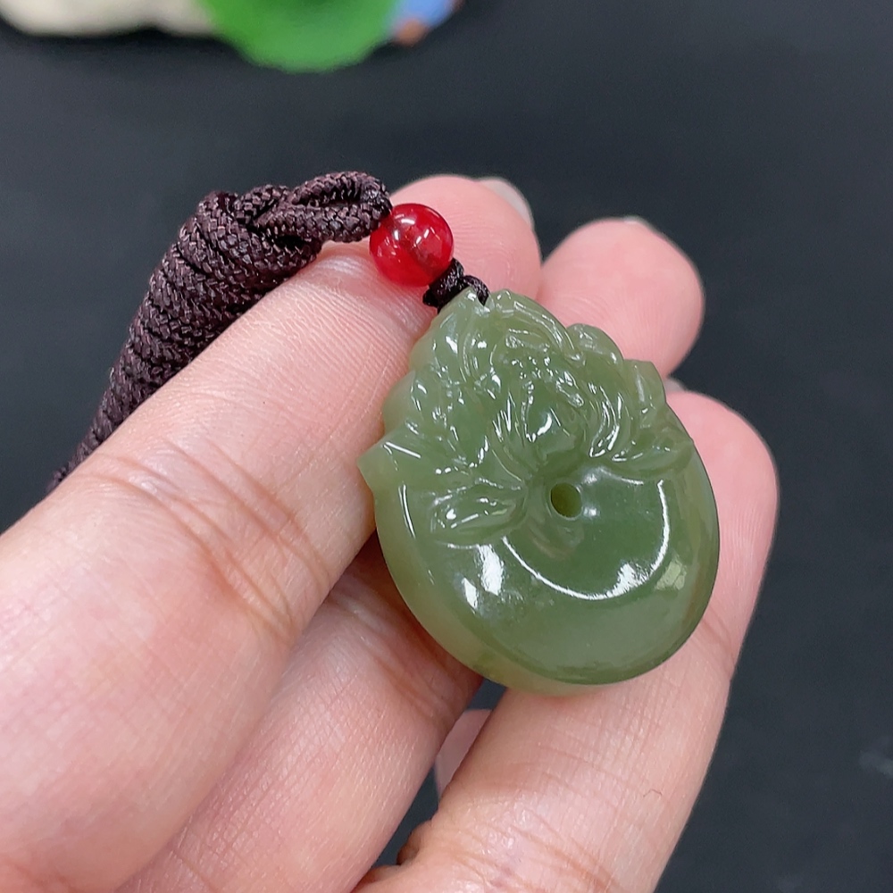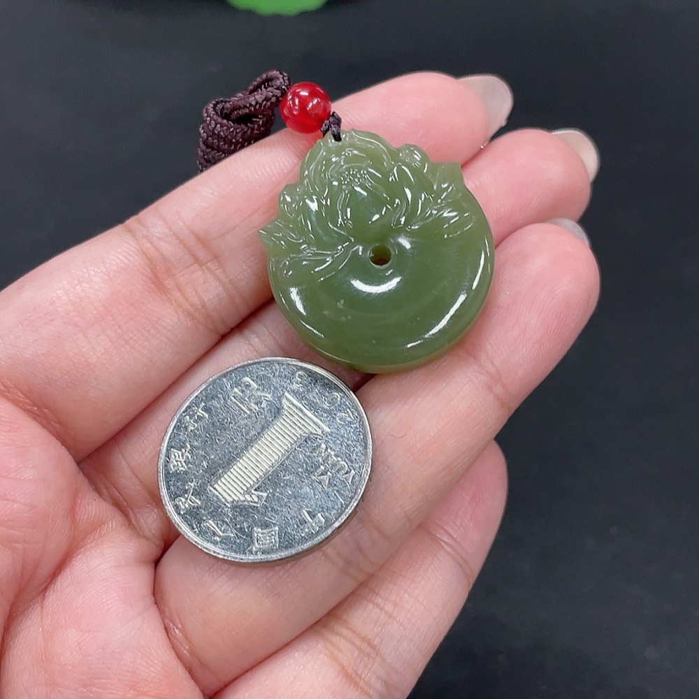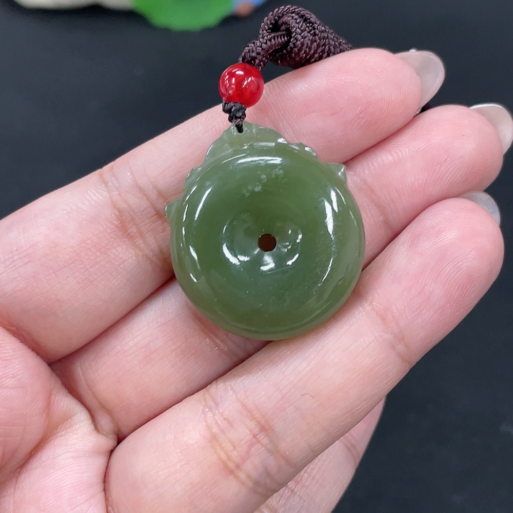 Hetian Jade Pendant, Antique Button Style, Total Weight Approx. [with cord] 14.8g, Beads Not Hetian Jade