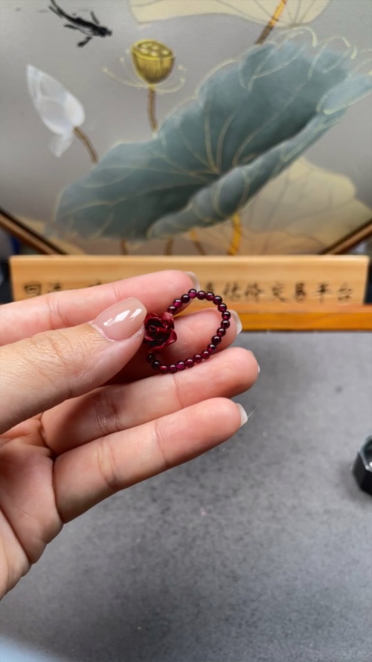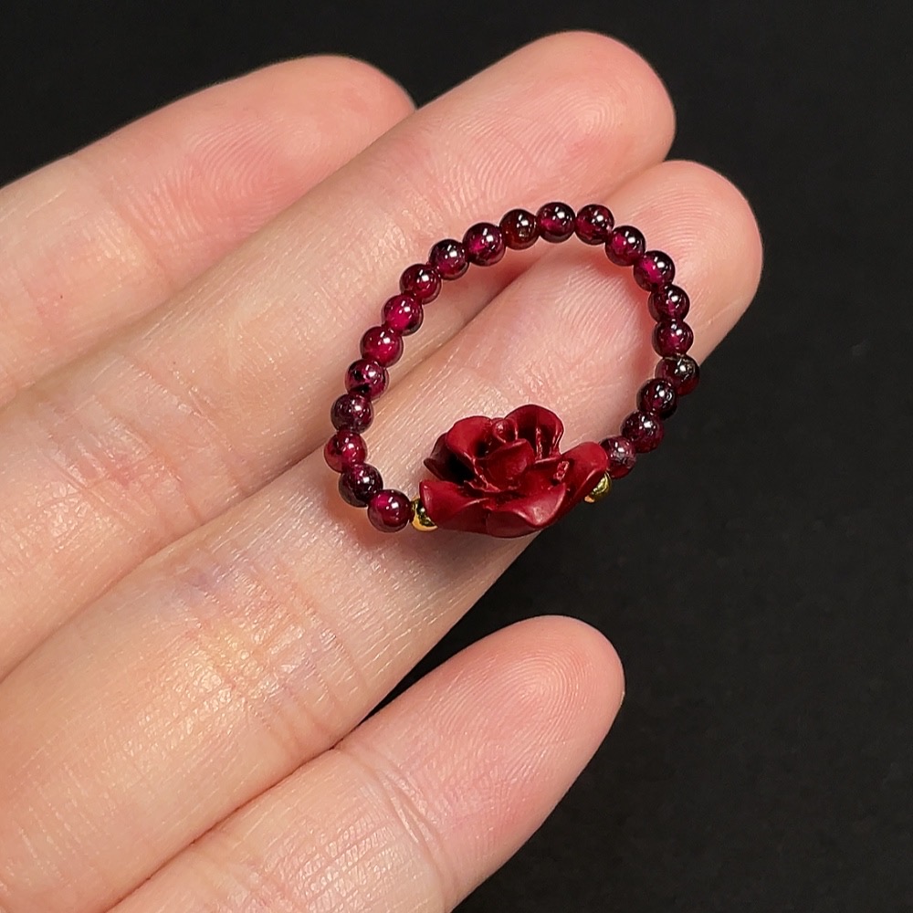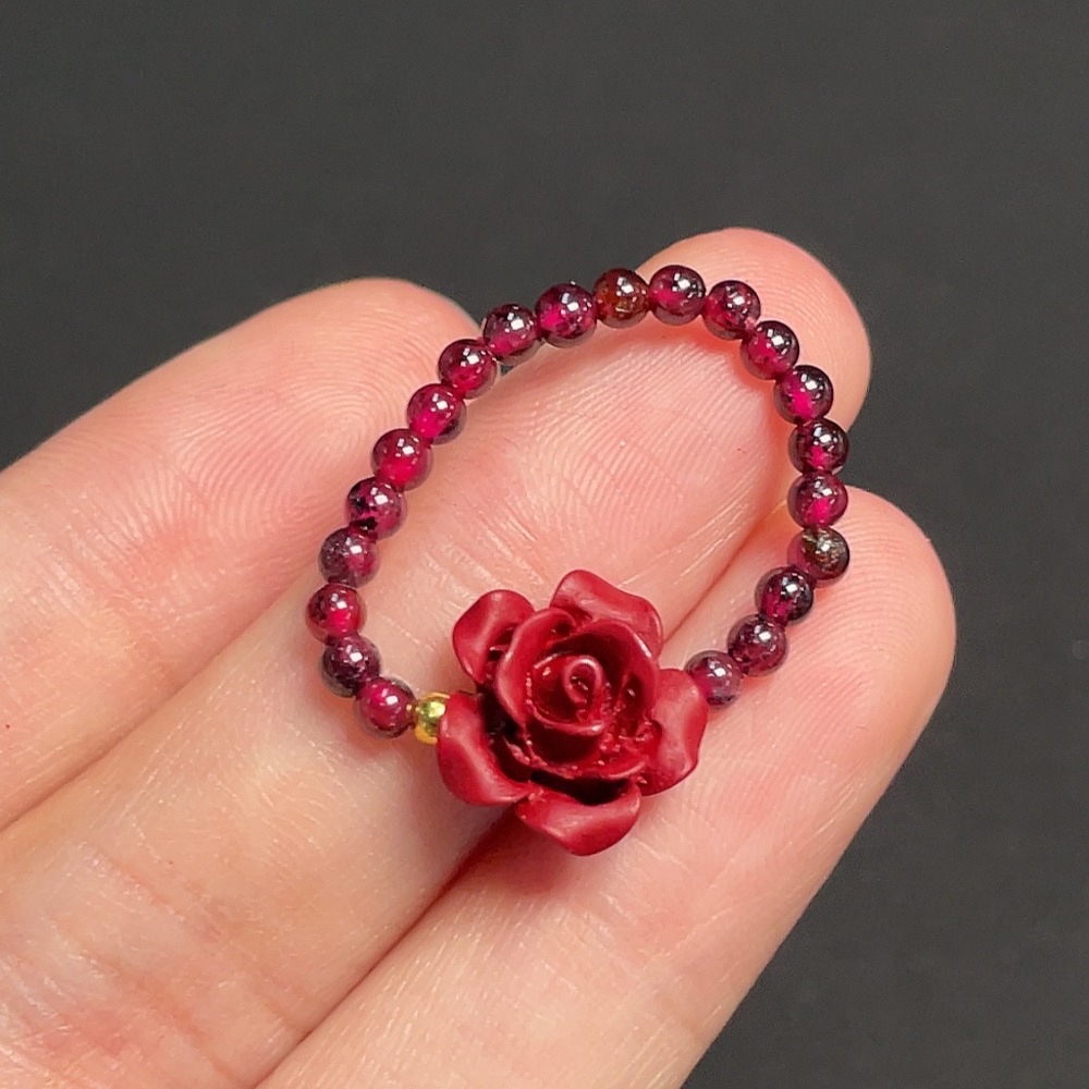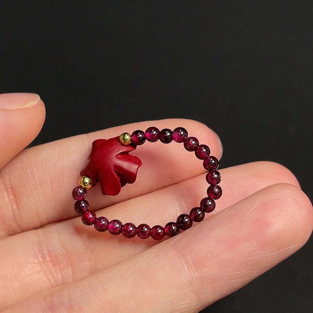 Garnet Ring, Gold Fragile, Non-Gold, Stones May Be Non-Natural, Total Weight Approx. 1.6g, Size About 2.7mm