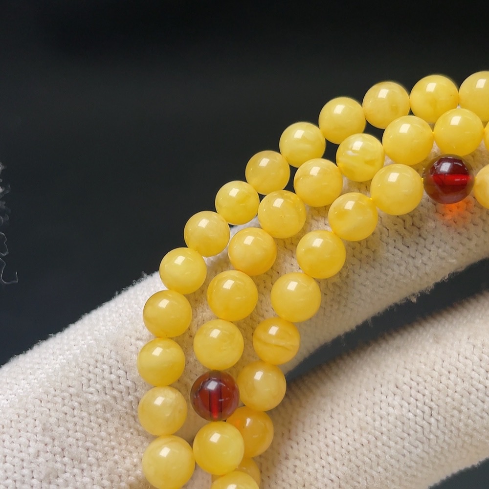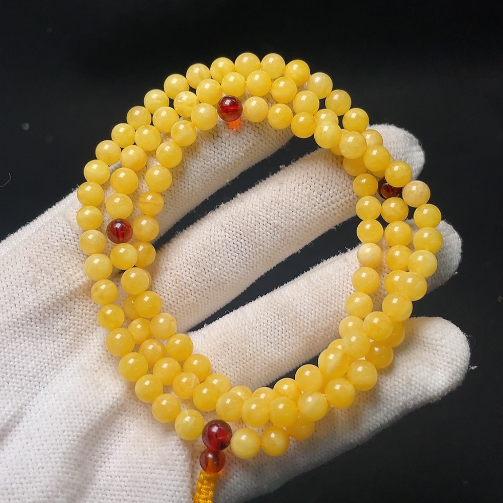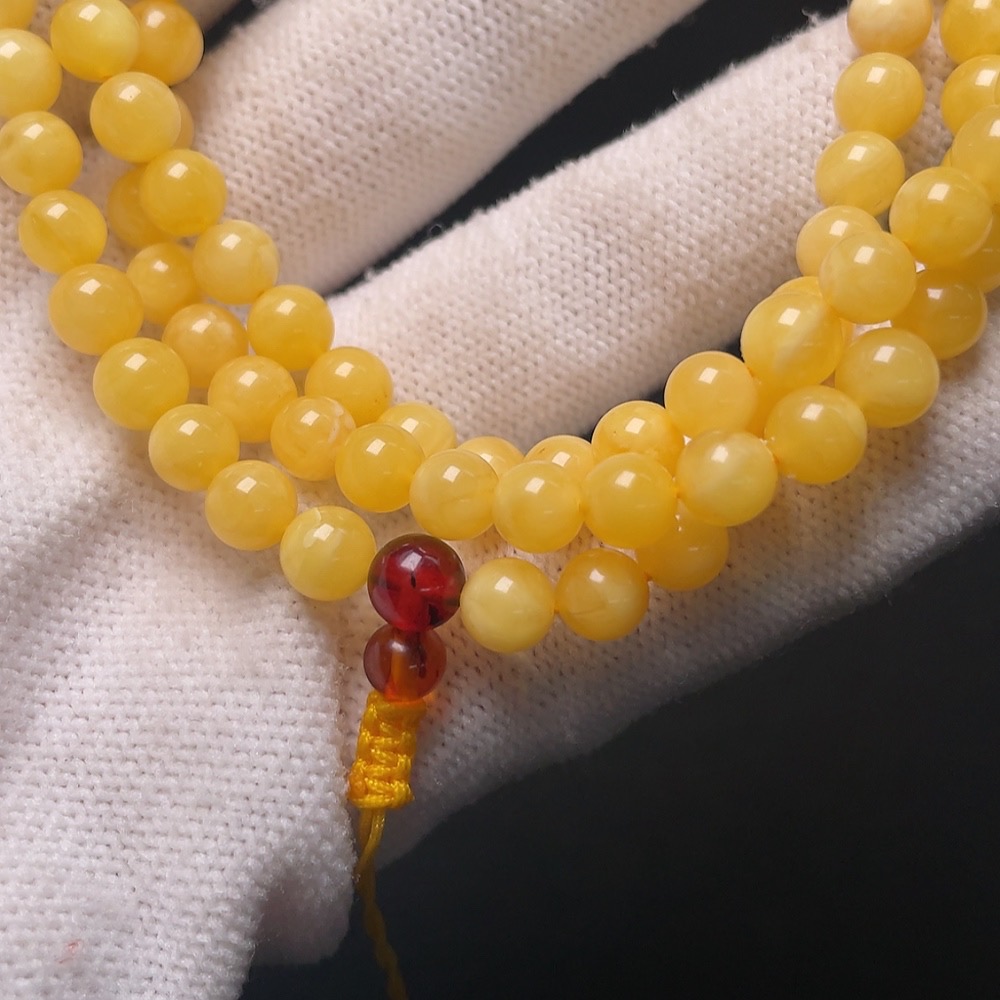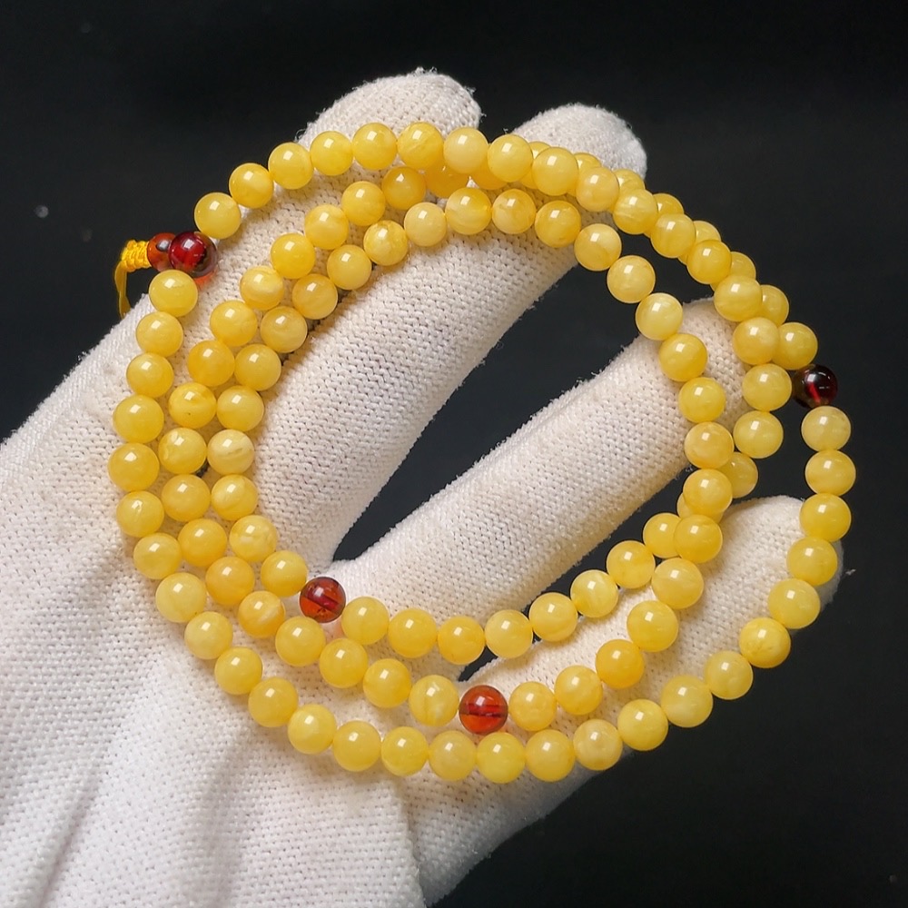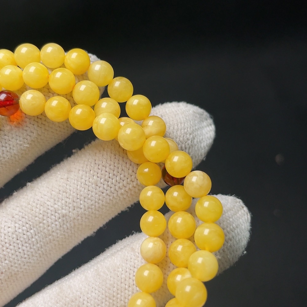 Amber Beeswax Bead Necklace, Total Weight Approx. 12.6g, Size About 5.8mm