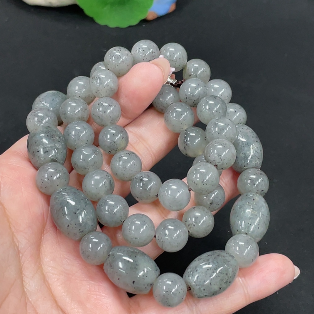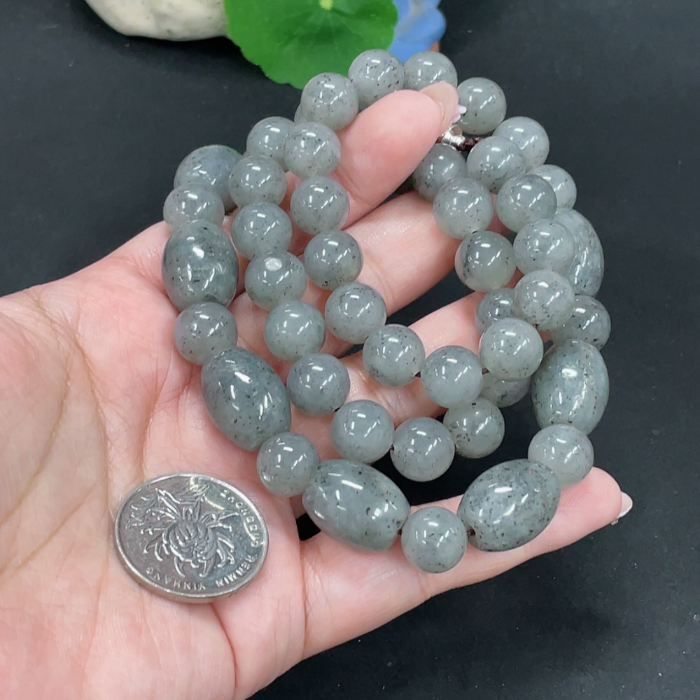 Hetian Jade Beaded Necklace Approx.10.5mm Total Weight Approx.120.3g Non-Gold