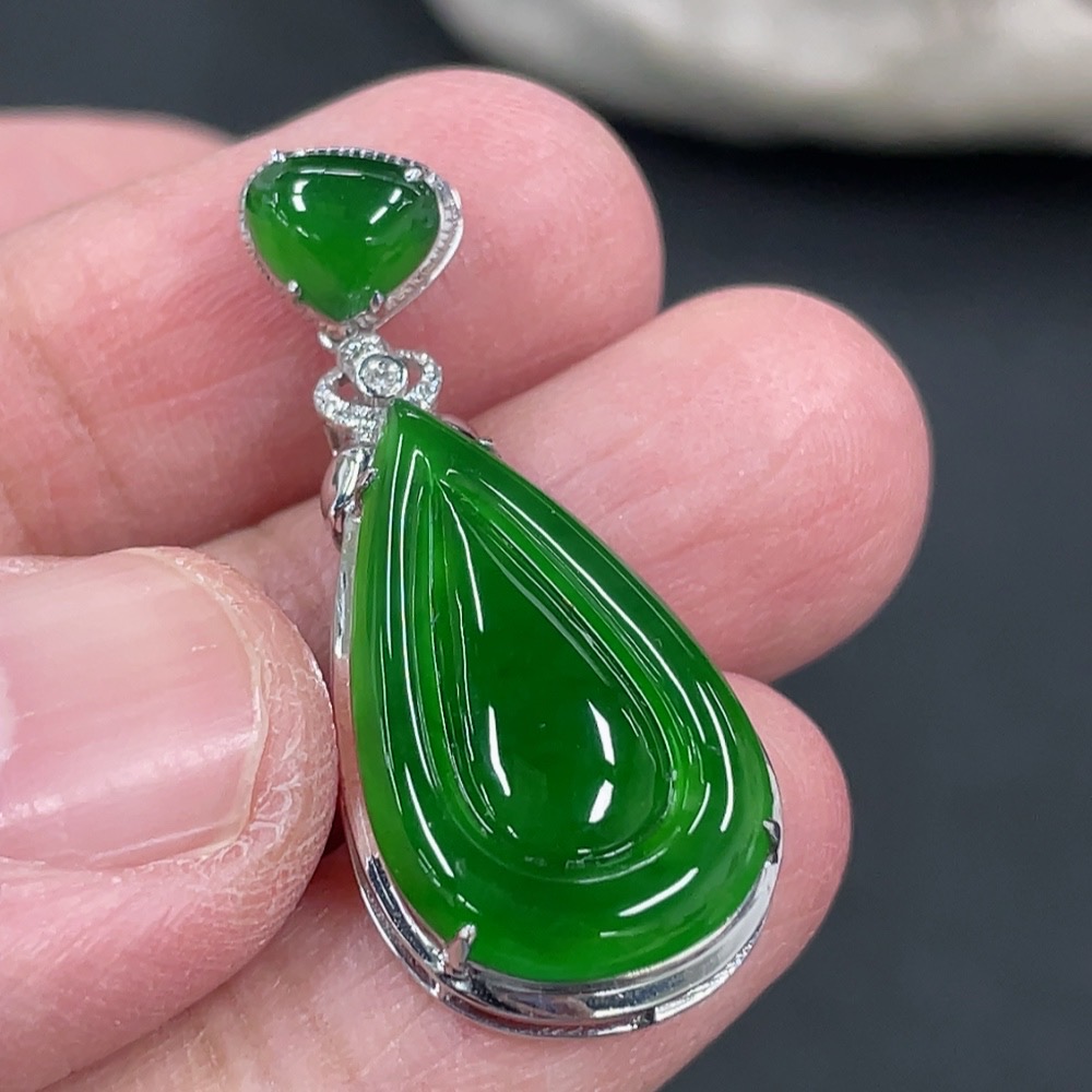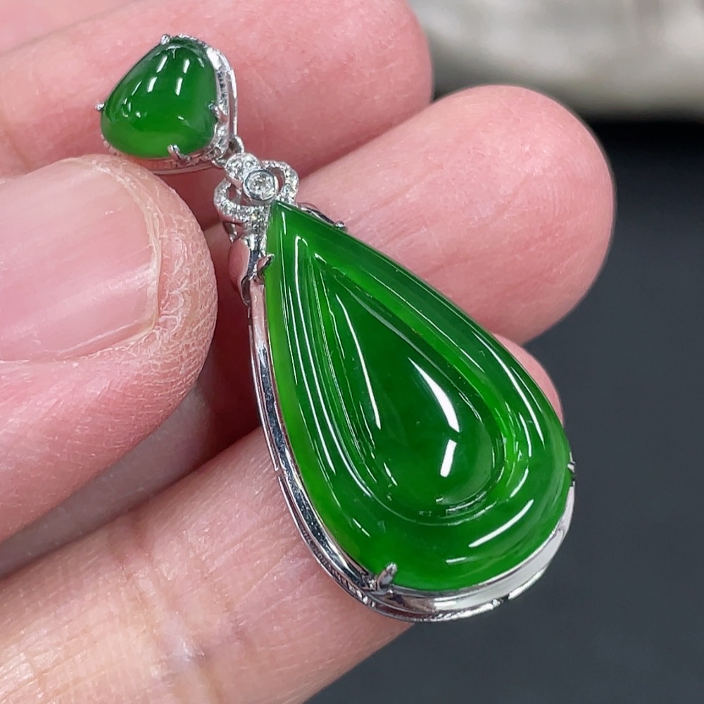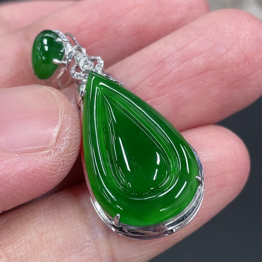 Jadeite Pendant with 18K Gold and Diamond Accents, Total Weight Approximately 2.6g