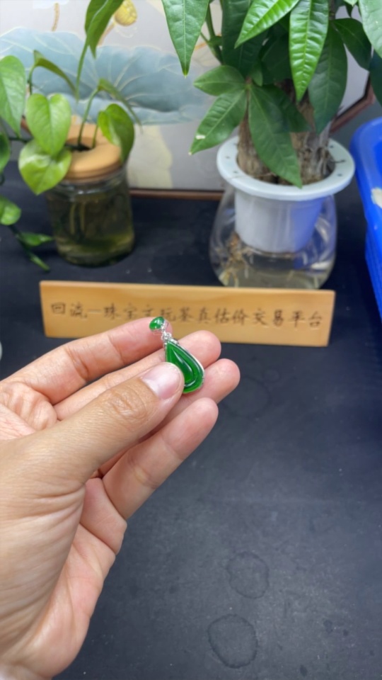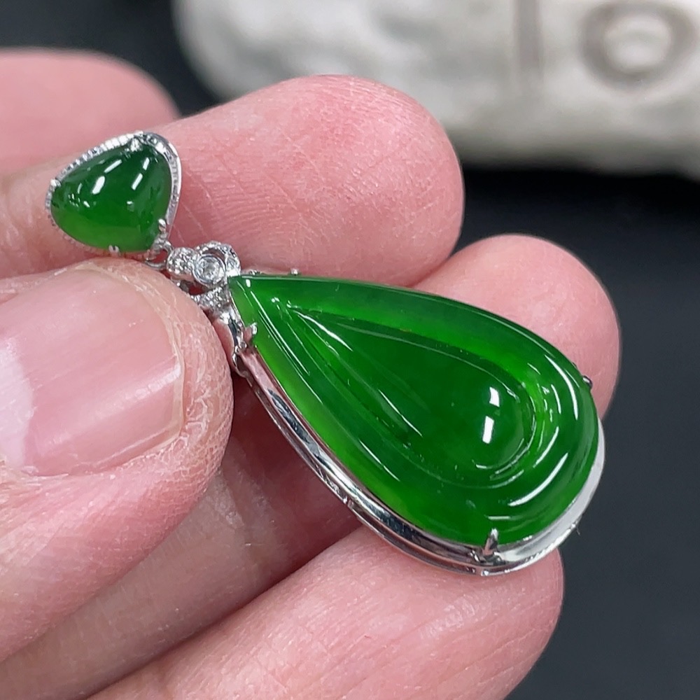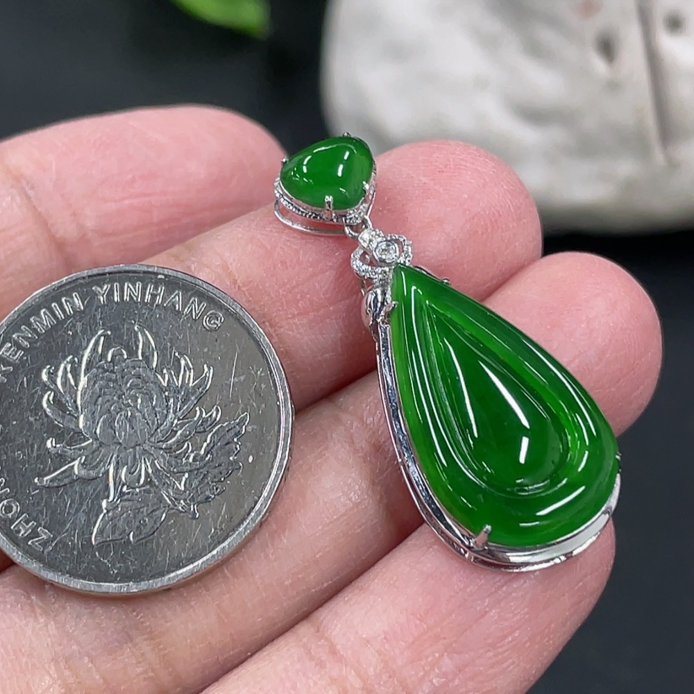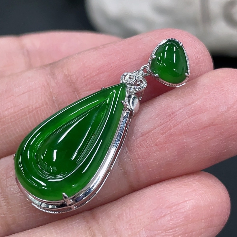 Jadeite Pendant with 18K Gold and Diamond Accents, Total Weight Approximately 2.6g