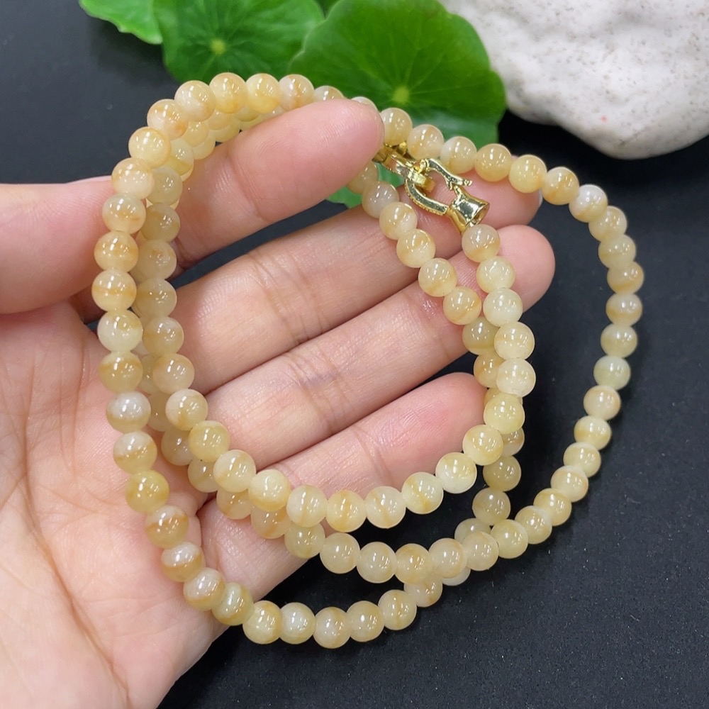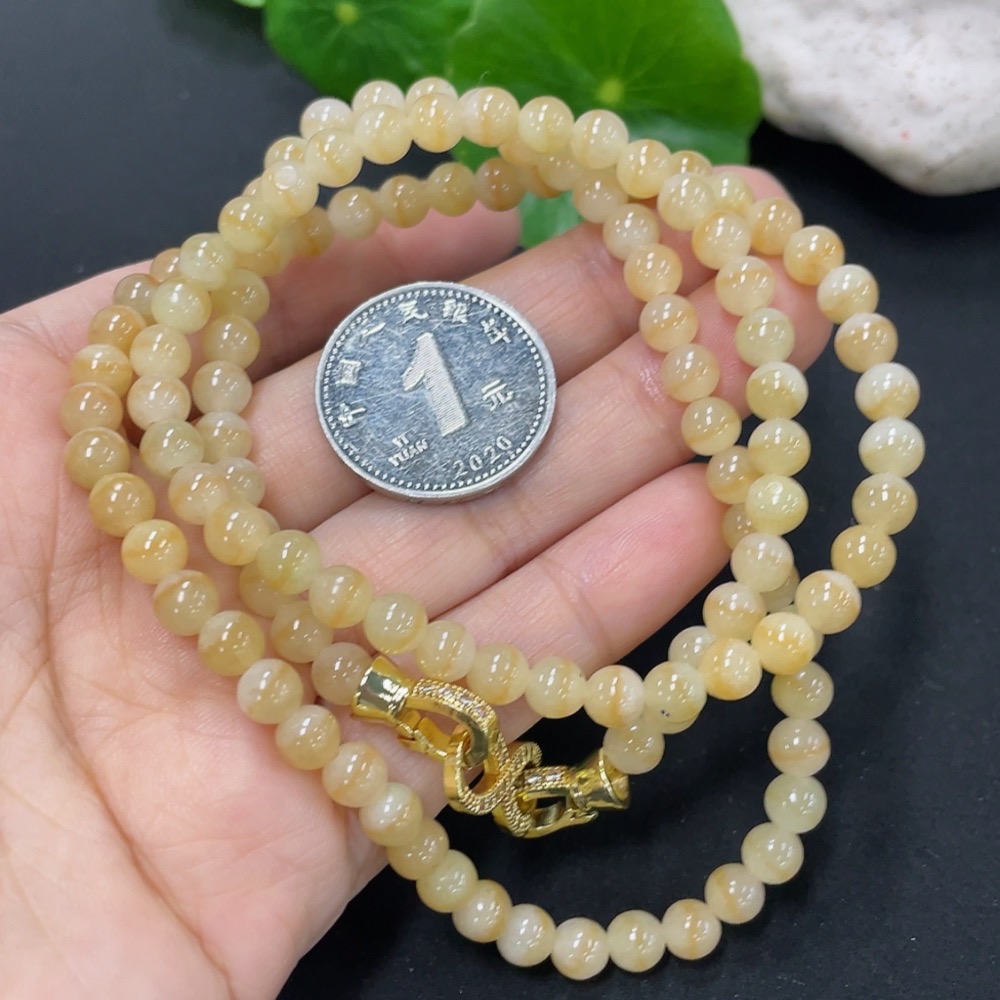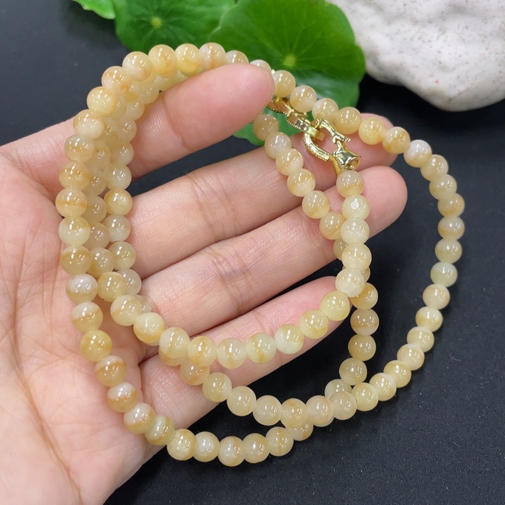 Jadeite Bead Necklace Approx. 5.3mm Non-Gold Total Weight Approx. 31g