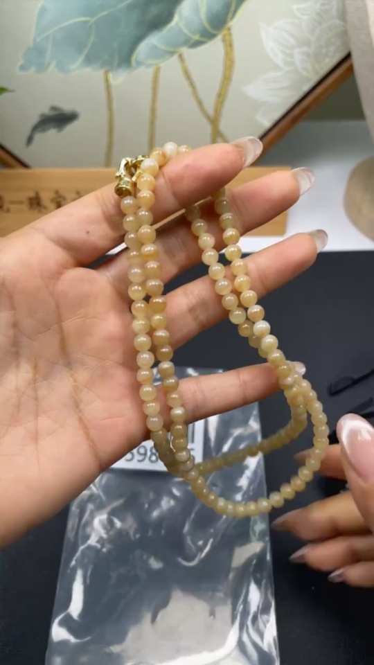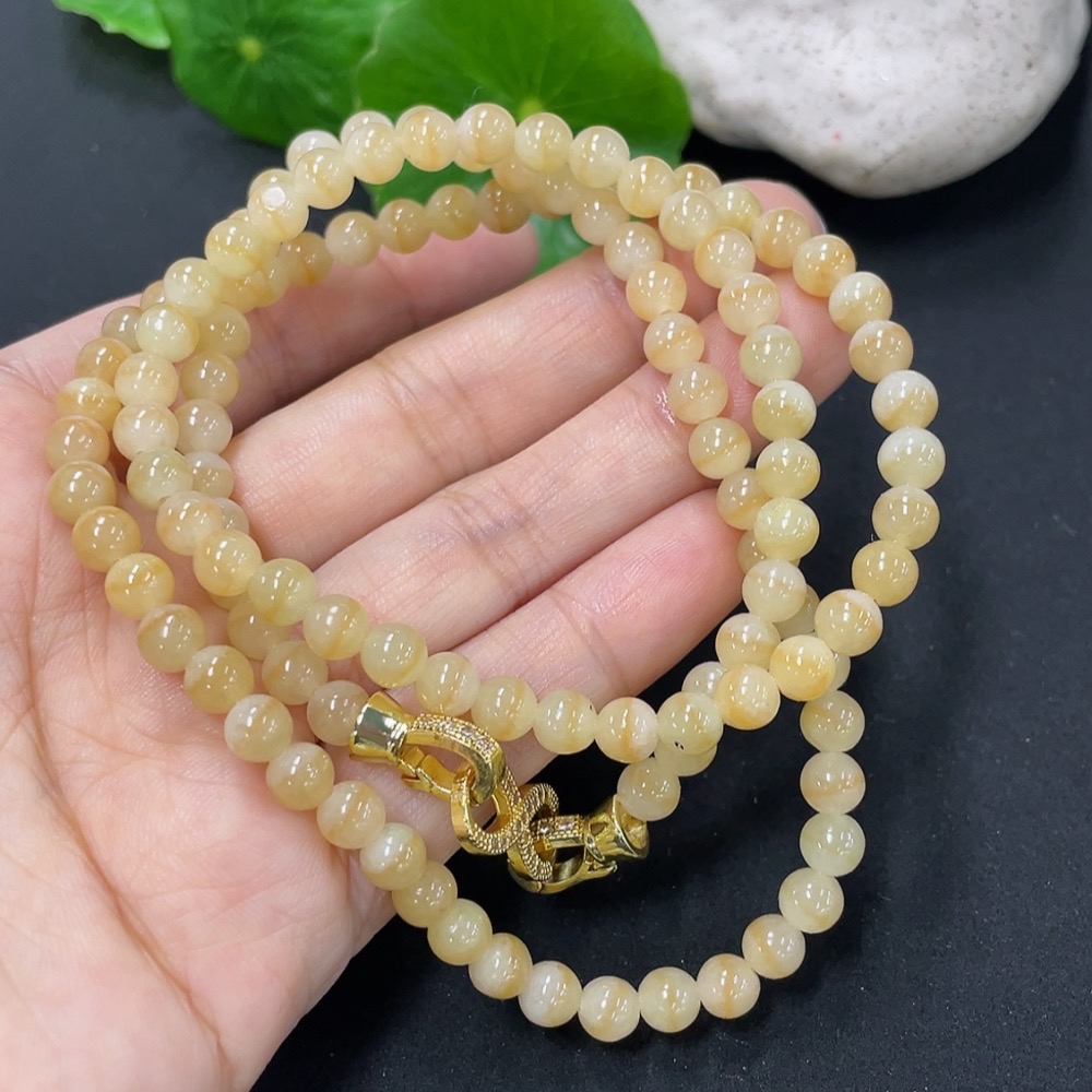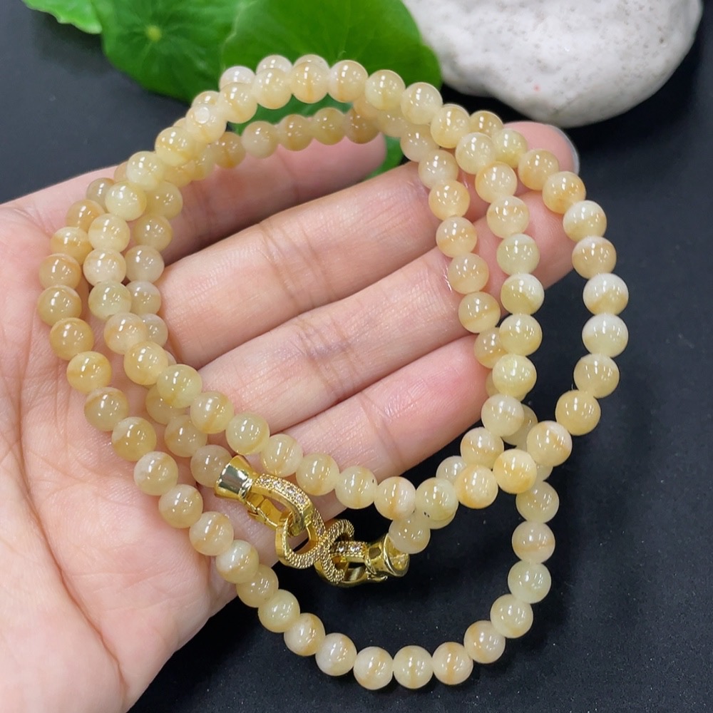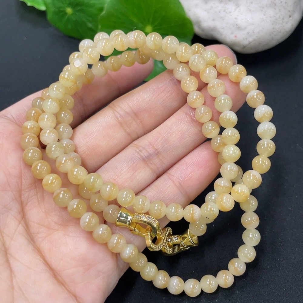 Jadeite Bead Necklace Approx. 5.3mm Non-Gold Total Weight Approx. 31g