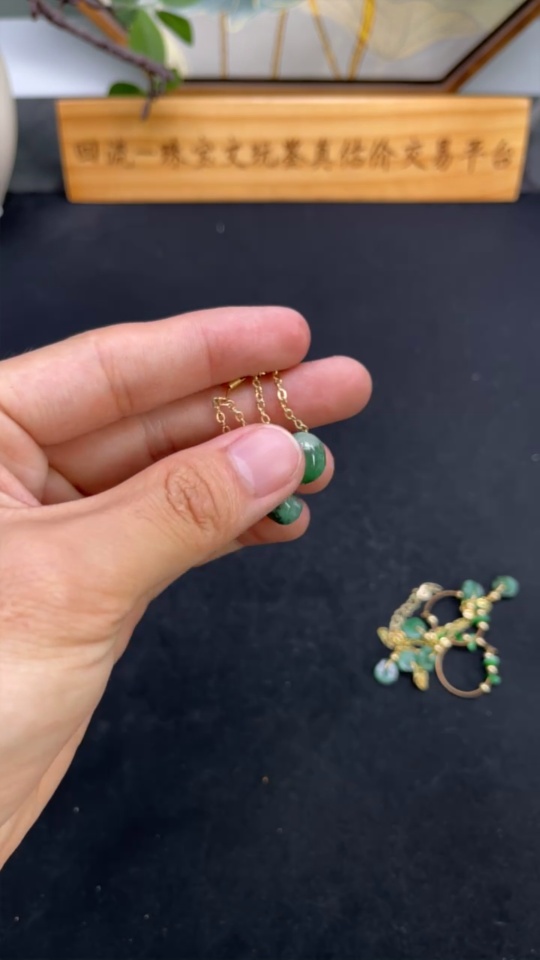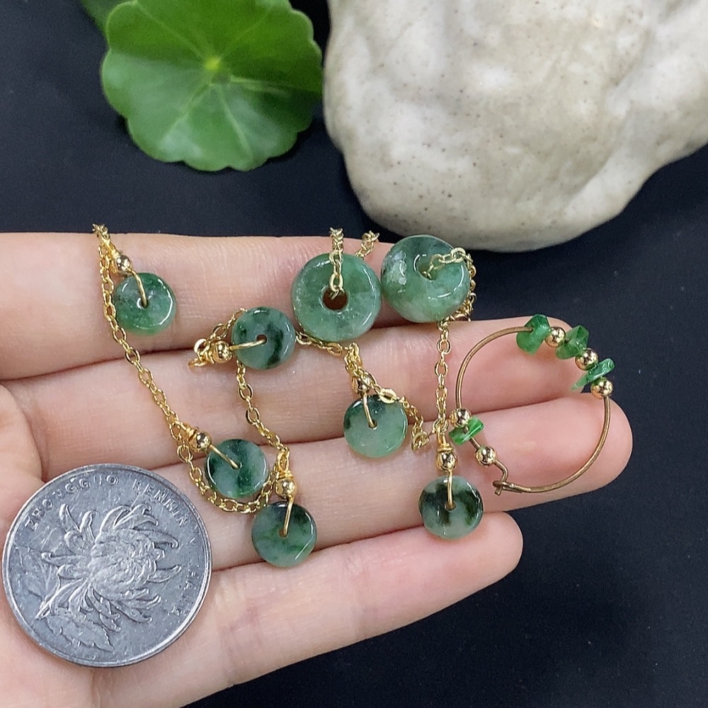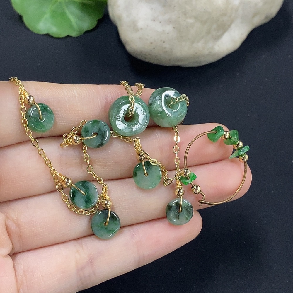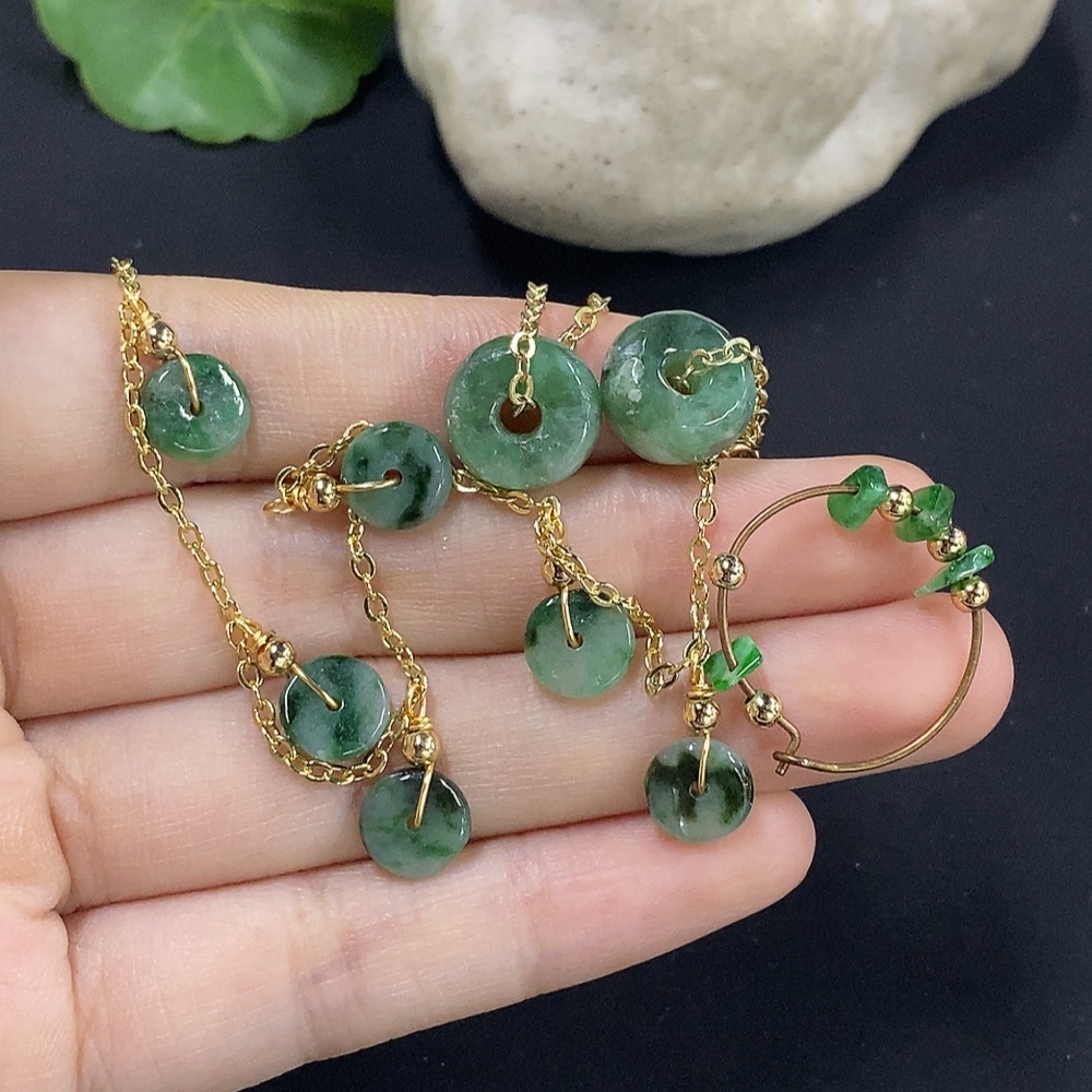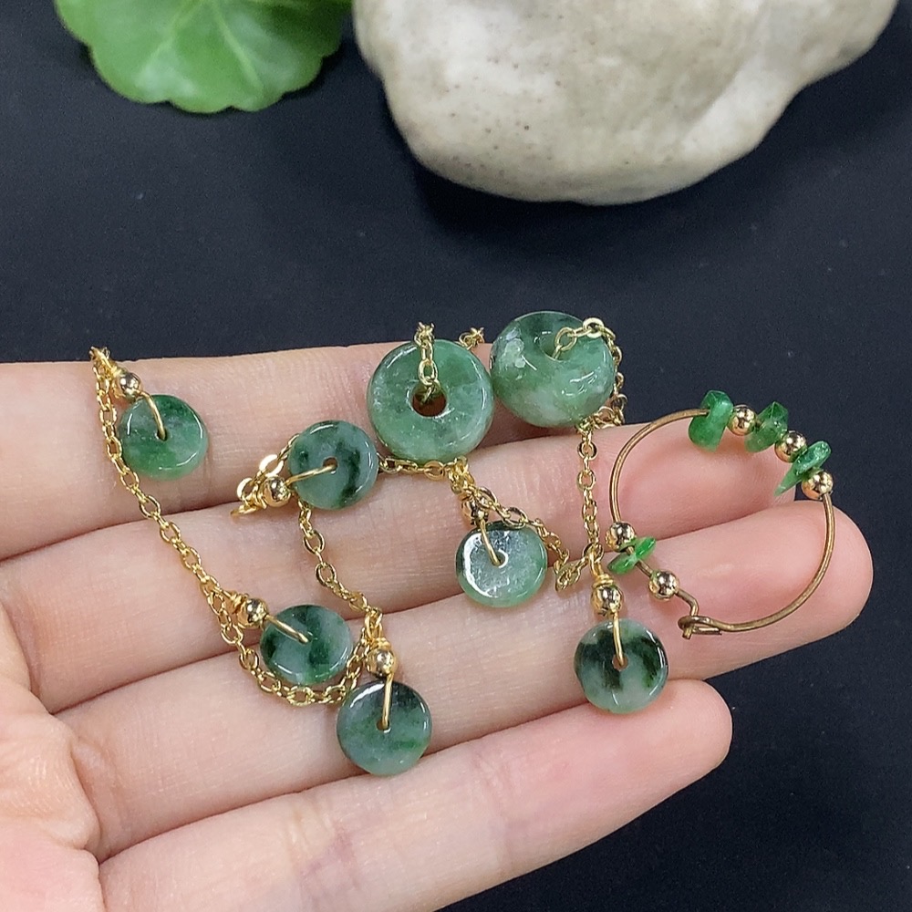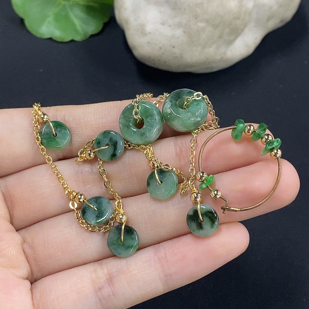 Jadeite inlaid earrings/bracelet, non-gold inlaid, containing other mineral components