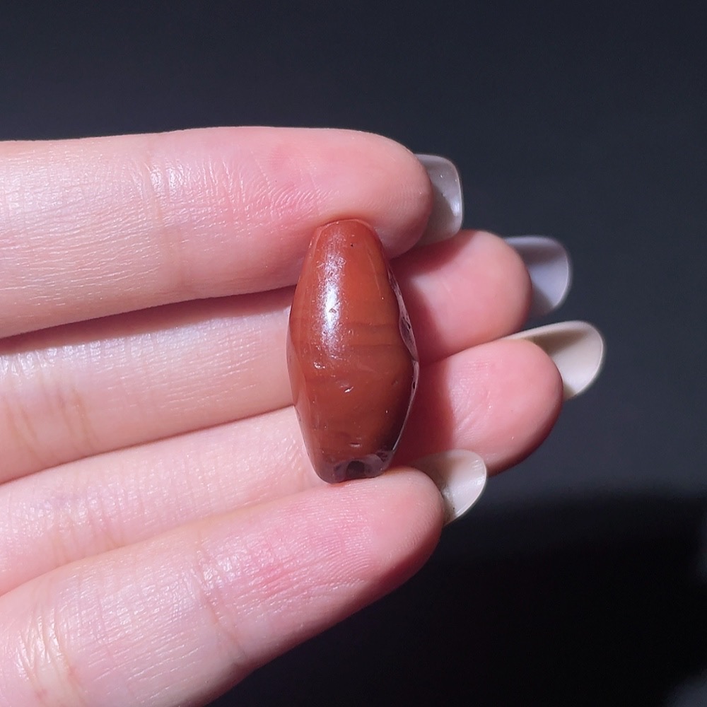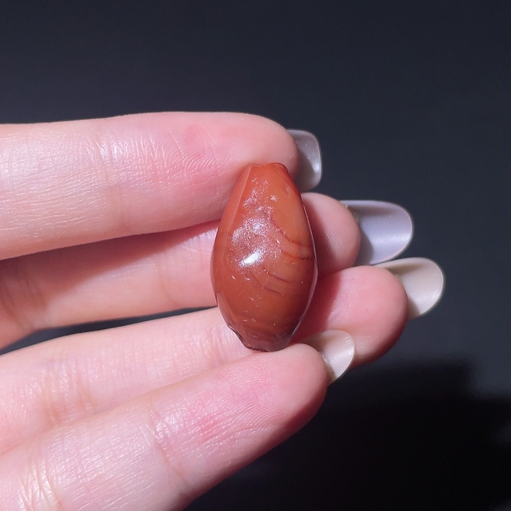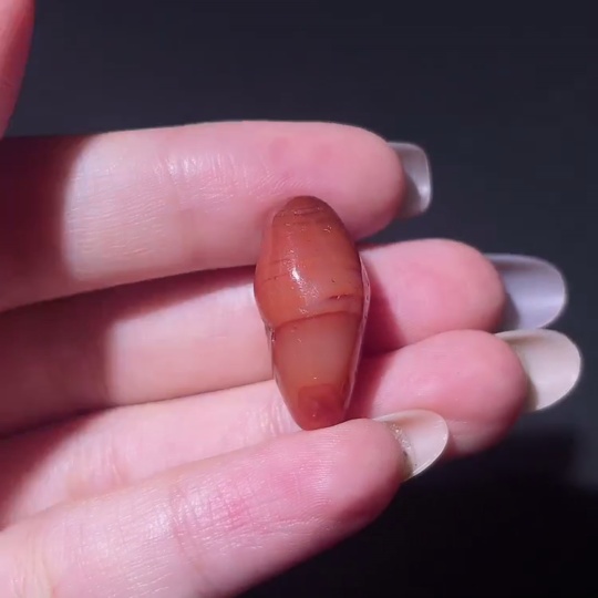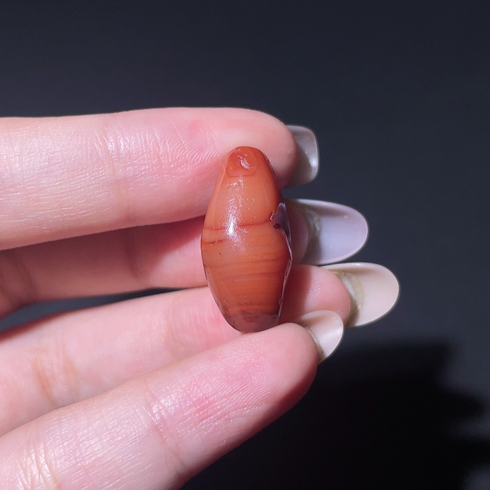 Doubtful Millennium West Asia Banded Agate Biconical Bead, Vintage Bead