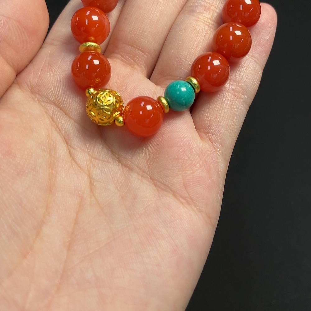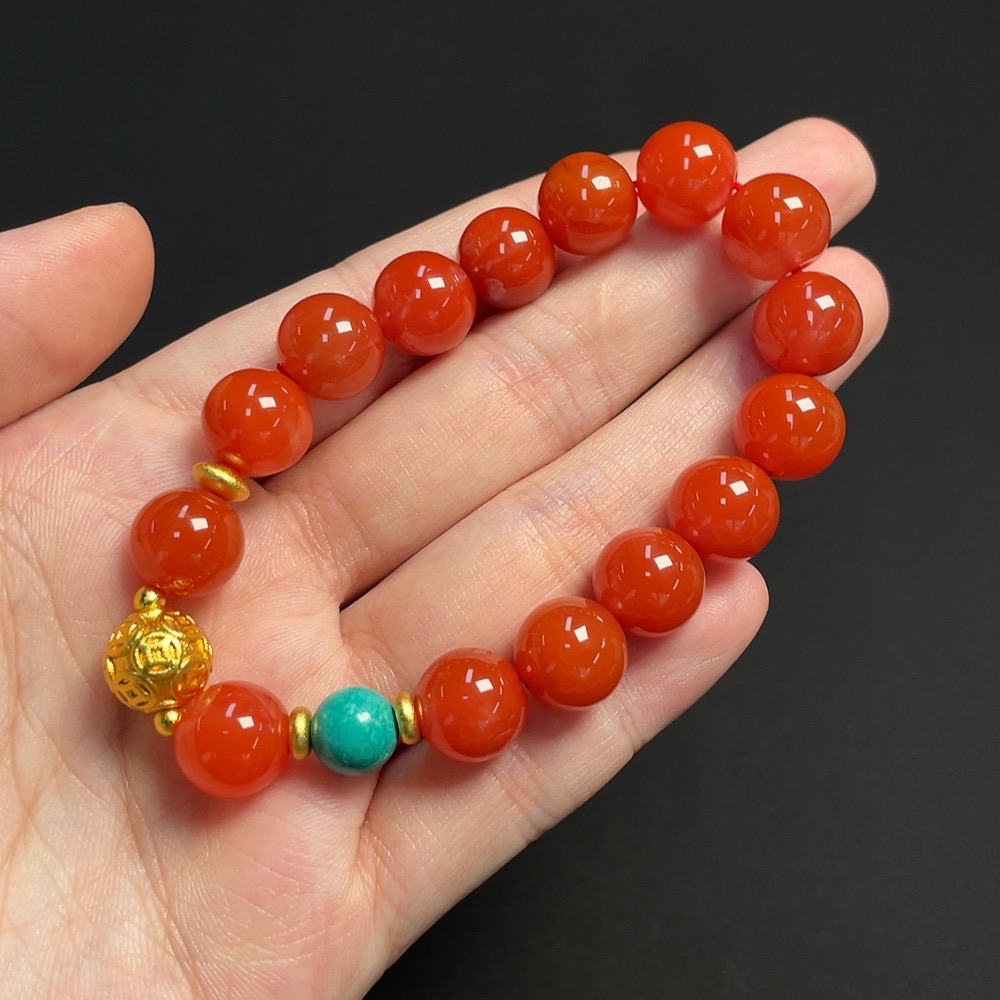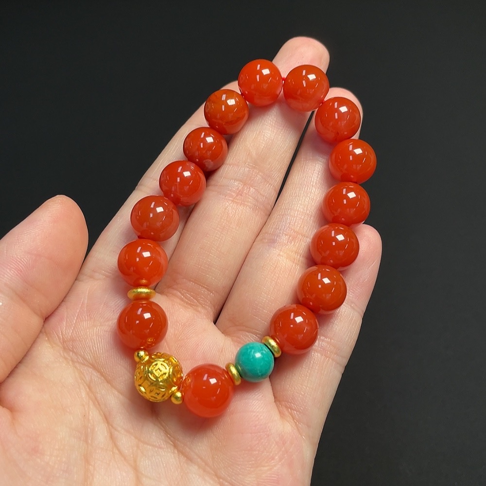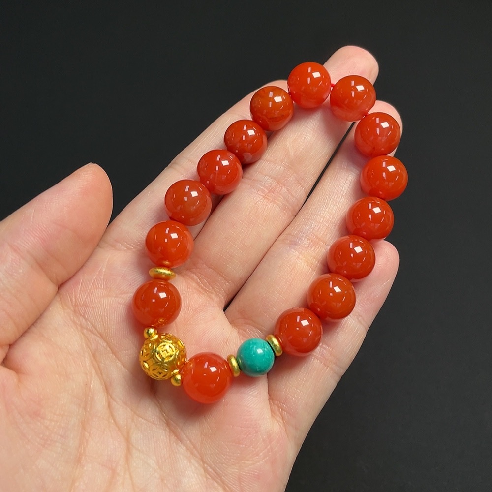 Red Agate Bracelet, Non-Gold Inlaid, Approx. 10.5mm, Total Weight About 28.99g, Visible Organic Matter, Non-Natural Accent Stones Considered