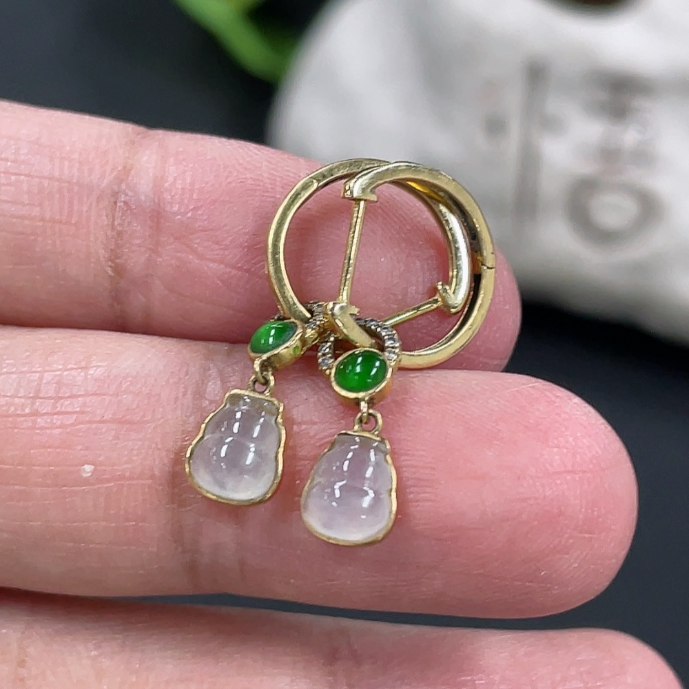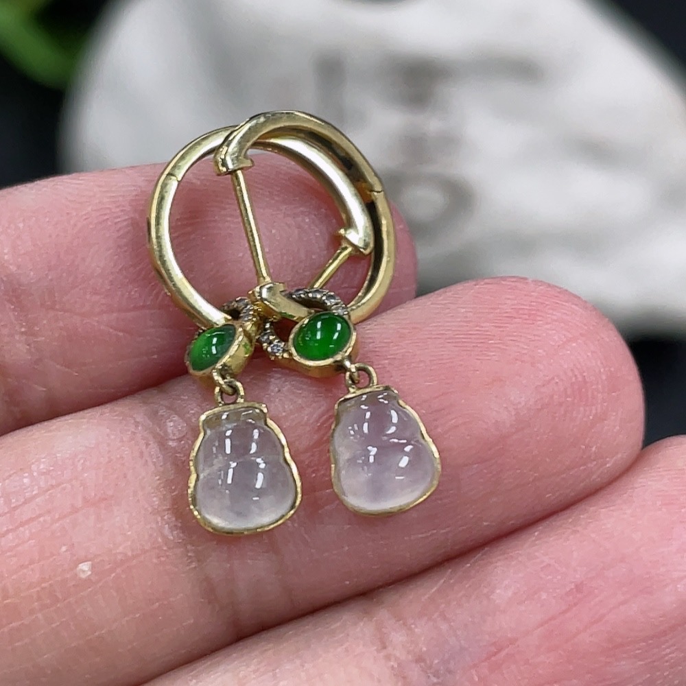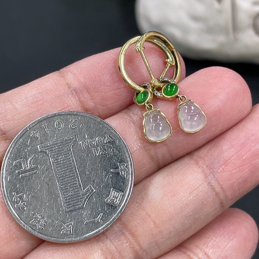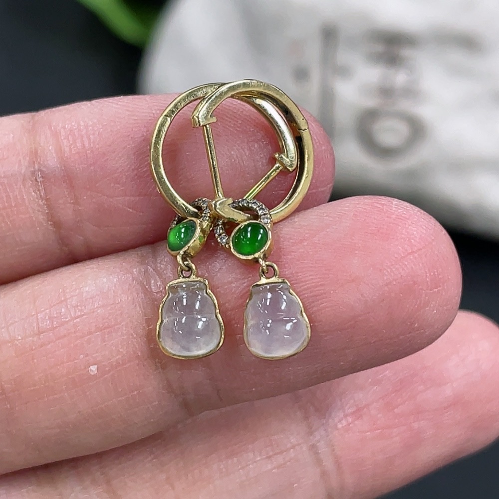 Jadeite earrings set in 18k gold with diamond accents, total weight approximately 1.95g