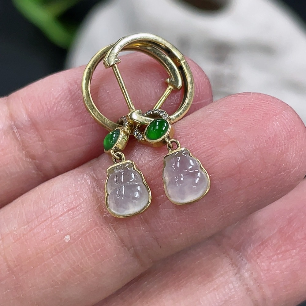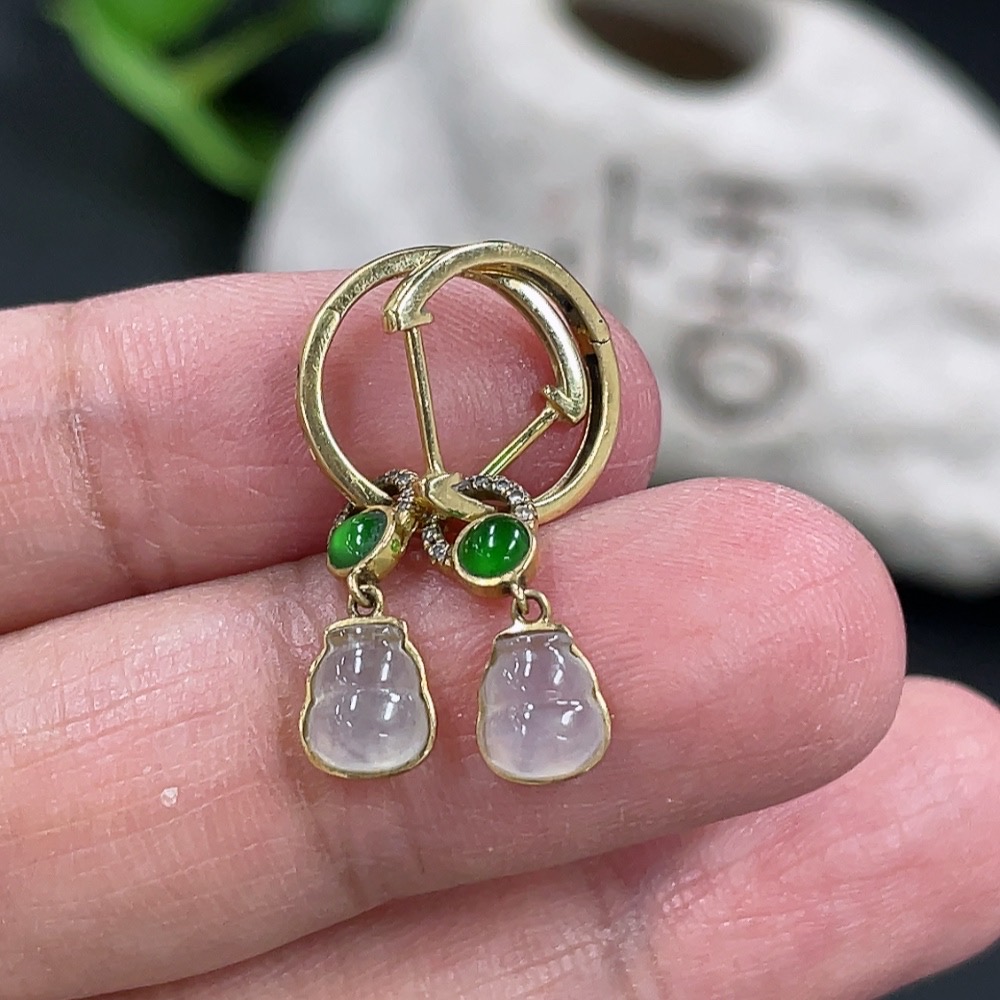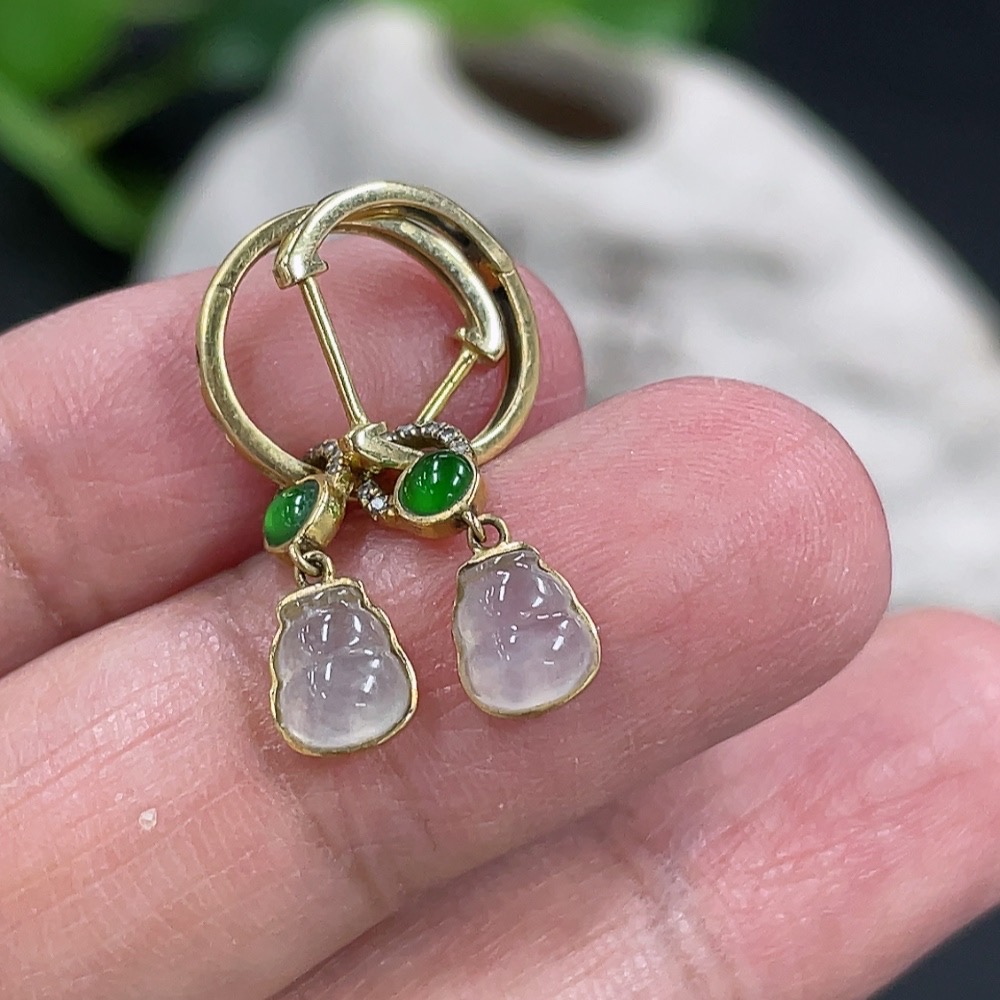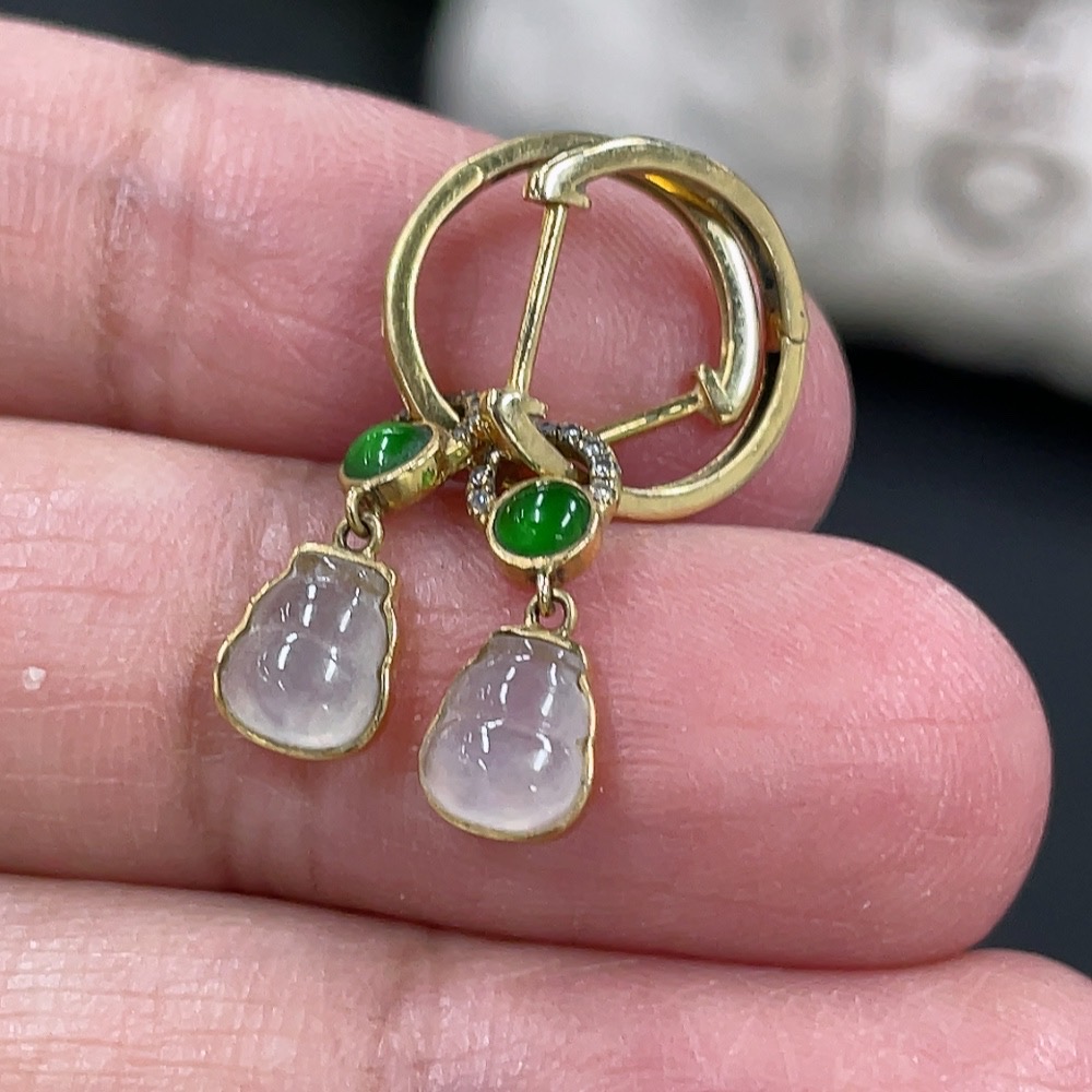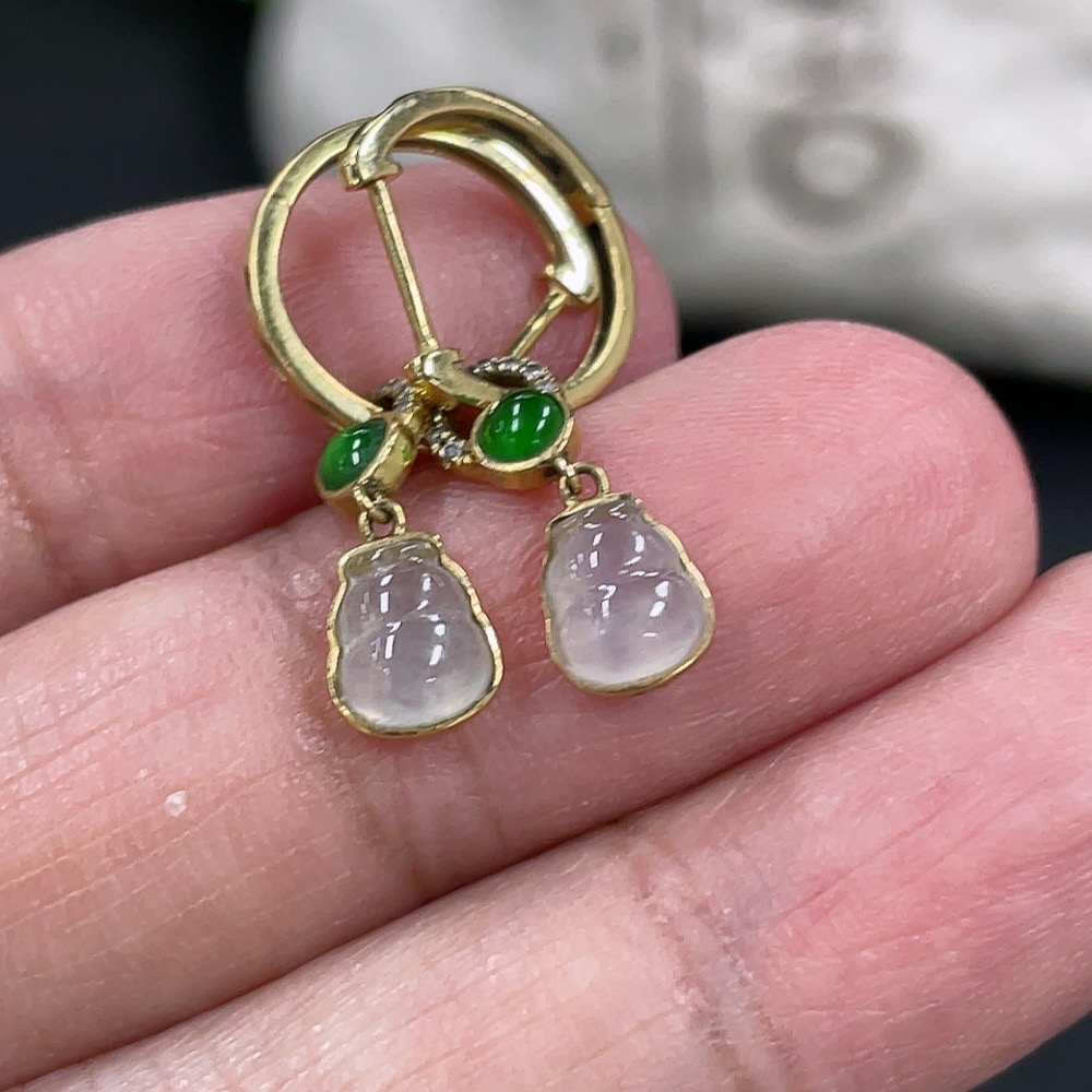 Jadeite earrings set in 18k gold with diamond accents, total weight approximately 1.95g