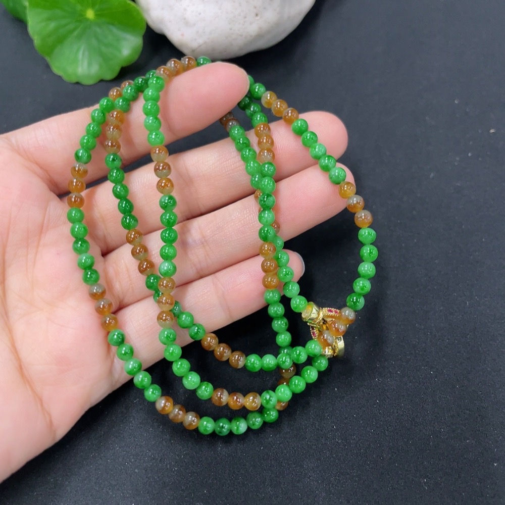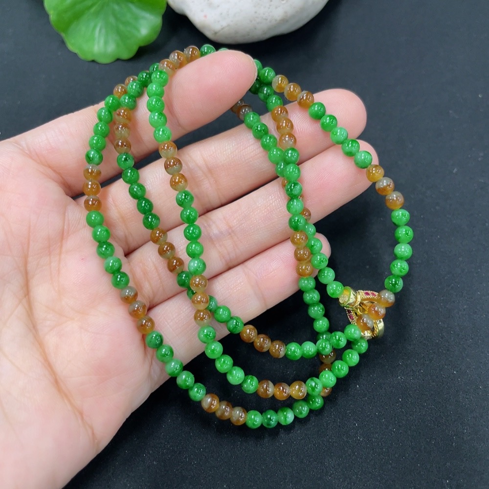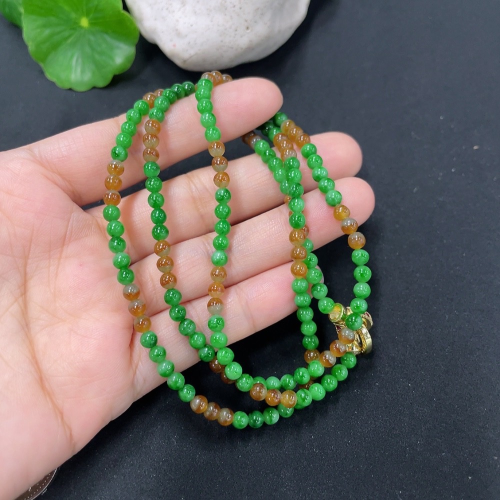 Jadeite Bead Necklace Approx. 3.7mm Non-Gold Total Weight Approx. 16.27g Containing Other Mineral Components