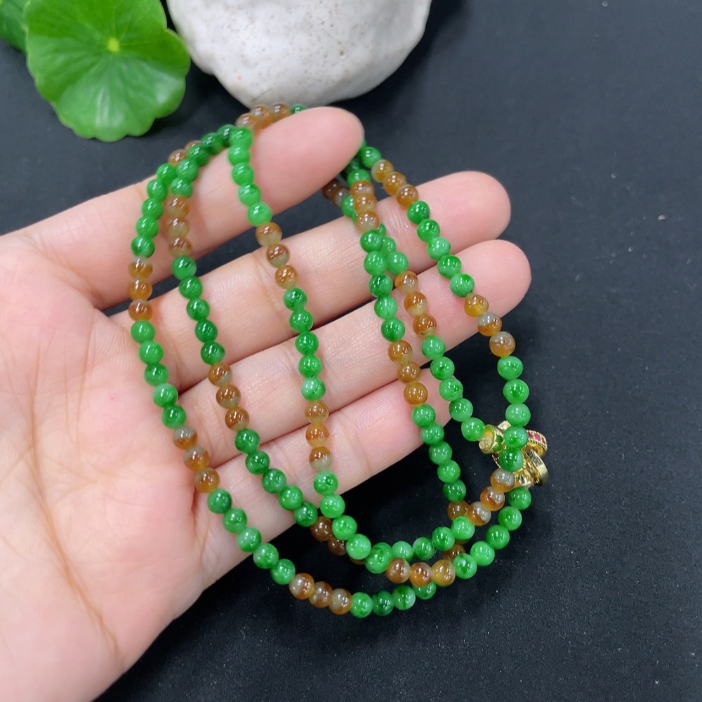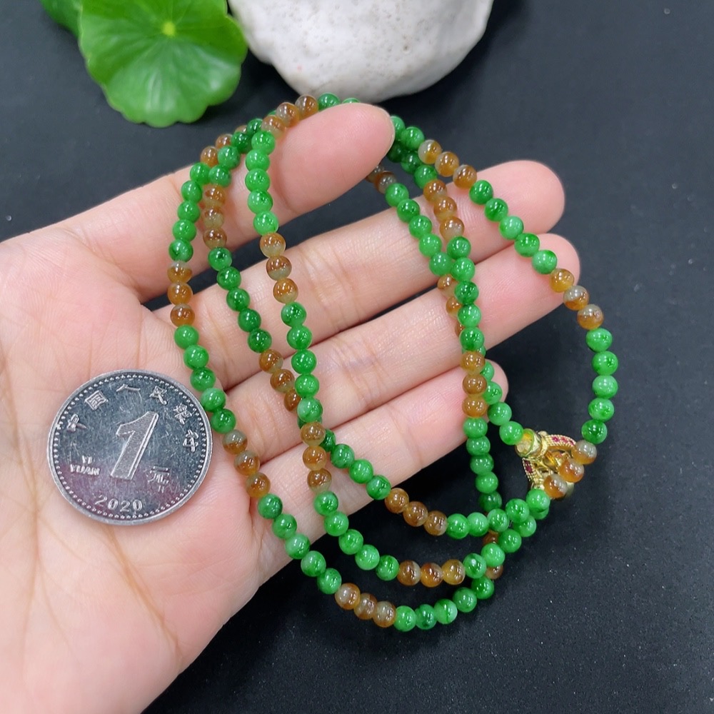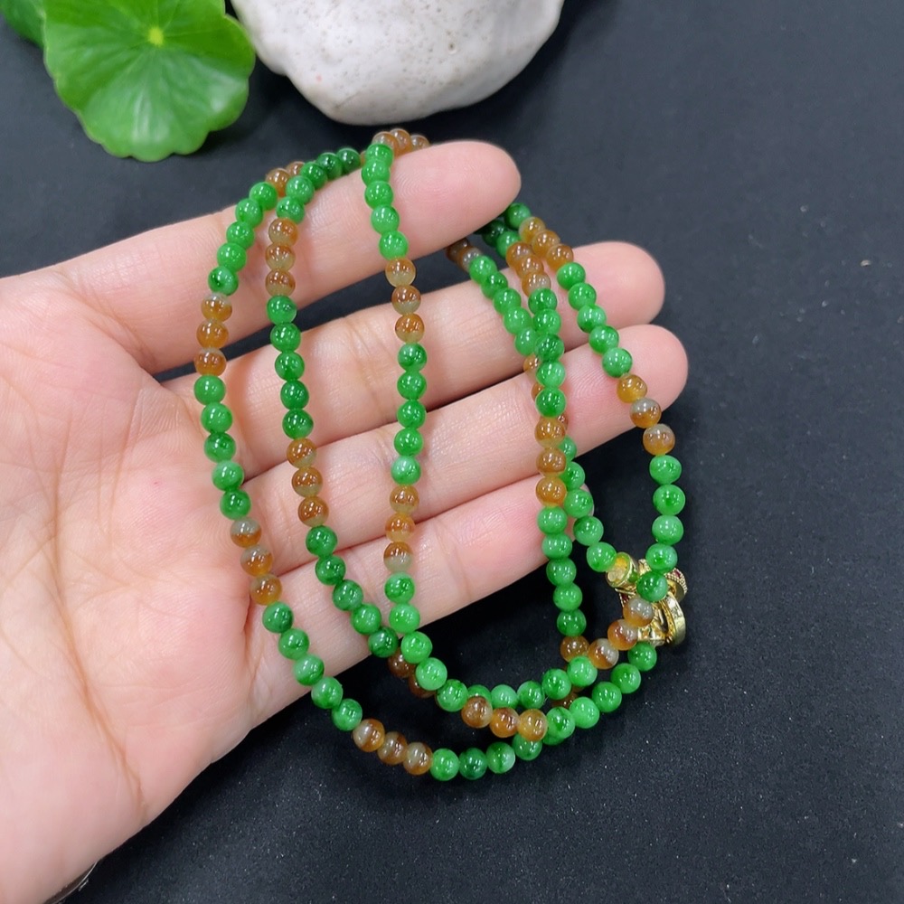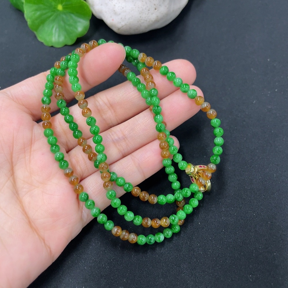 Jadeite Bead Necklace Approx. 3.7mm Non-Gold Total Weight Approx. 16.27g Containing Other Mineral Components