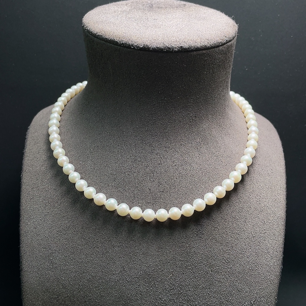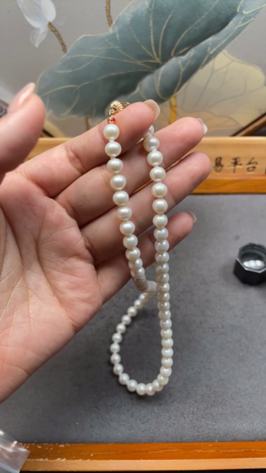 Pearl necklace marked red non-gold others 14k gold total weight about 25.37g size about 6.8mm