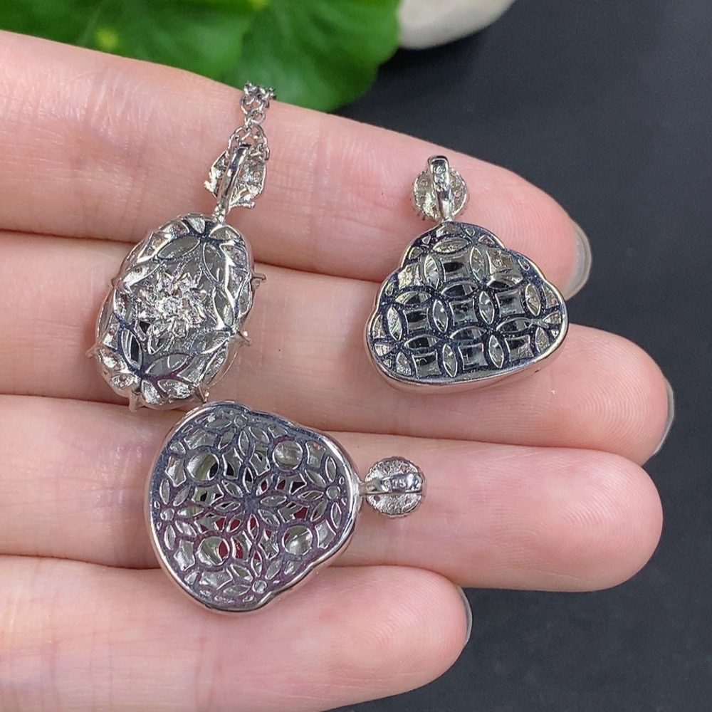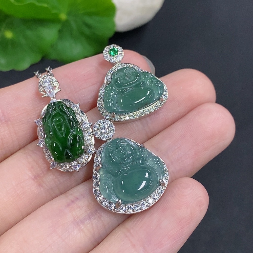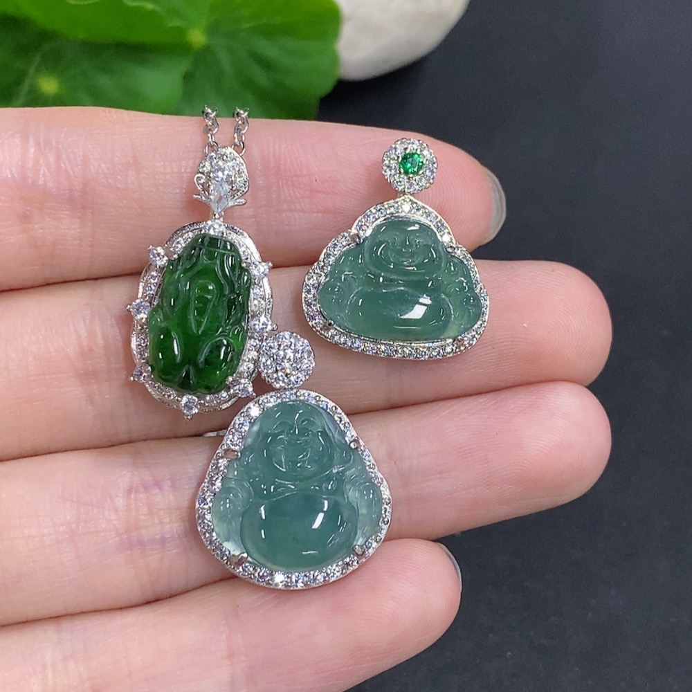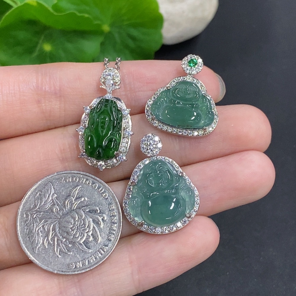 Jadeite Inlaid Pendant Sell as a Lot Non-Gold Inlaid