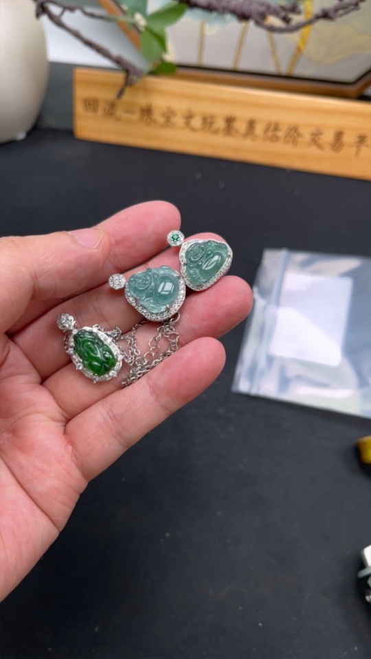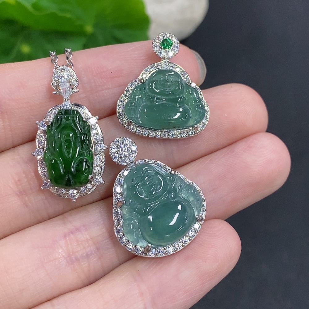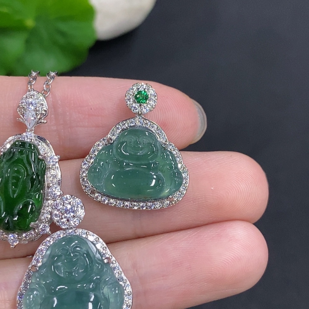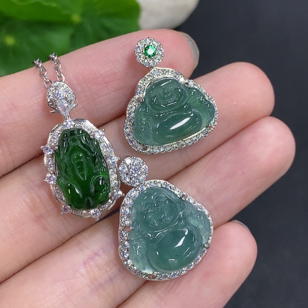 Jadeite Inlaid Pendant Sell as a Lot Non-Gold Inlaid