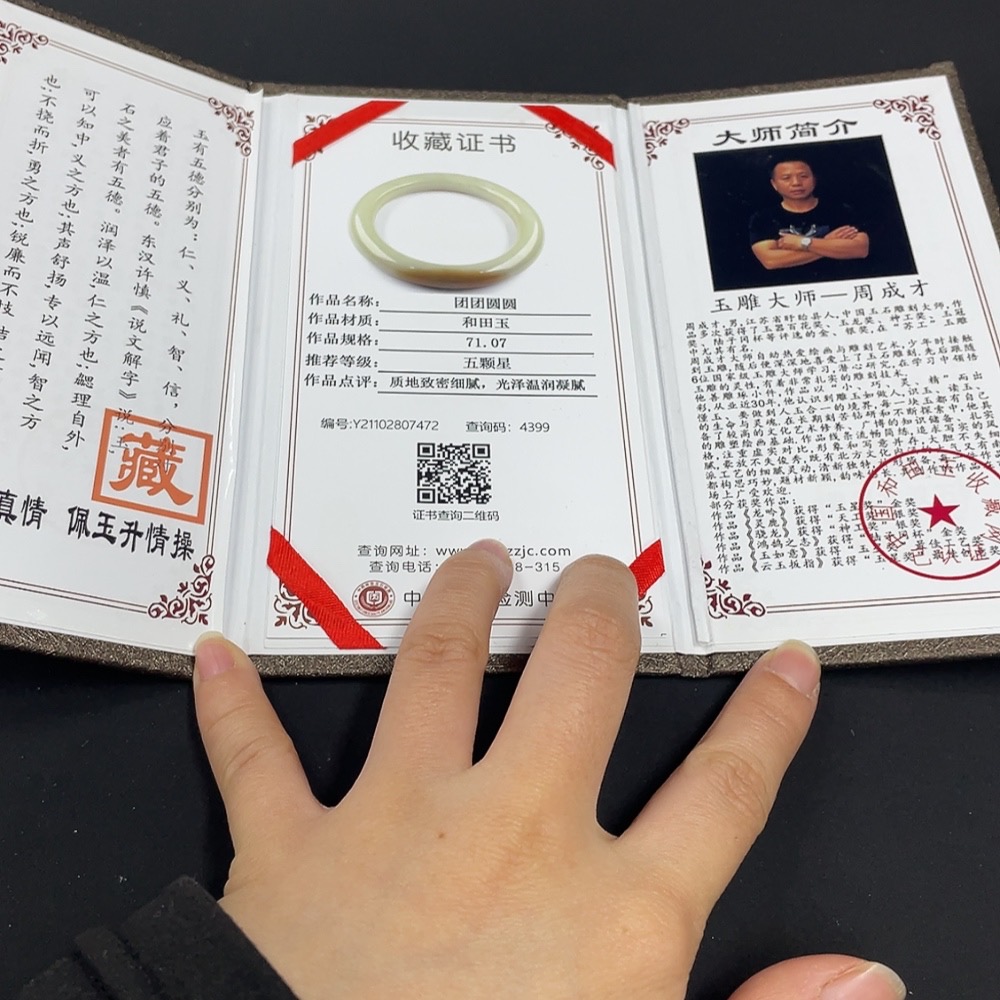 Hetian Jade Round Bracelet Size 59 Collection Certificate Total Weight Approx. 71g