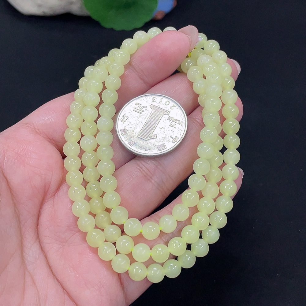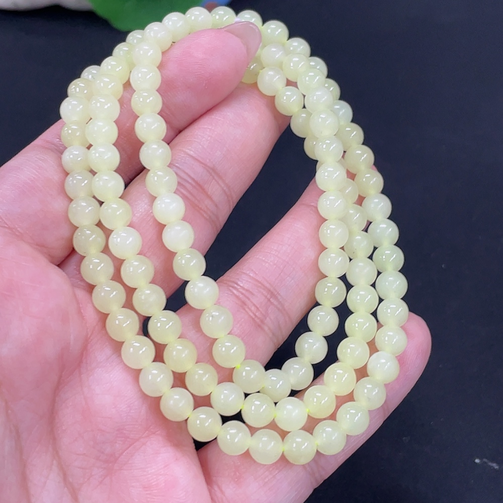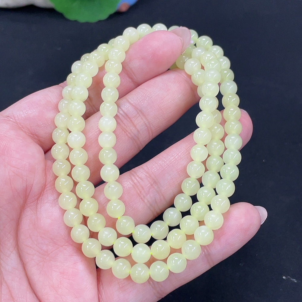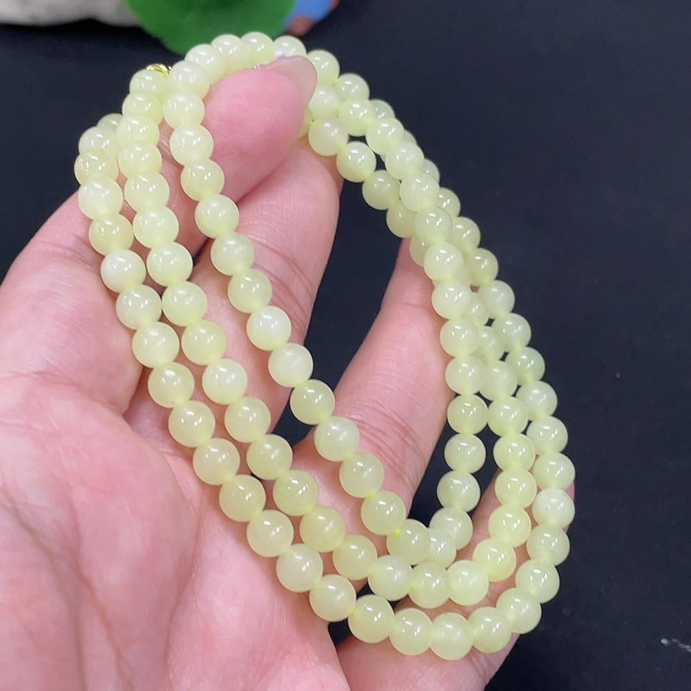 Hetian Jade Bead Necklace Approx. 5.6mm Non-Gold Total Weight Approx. 34.3g