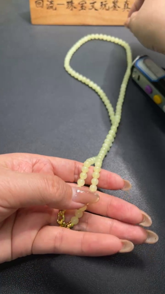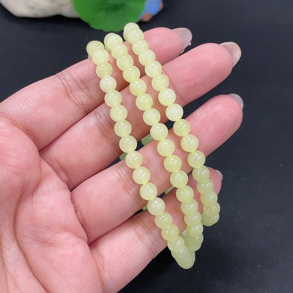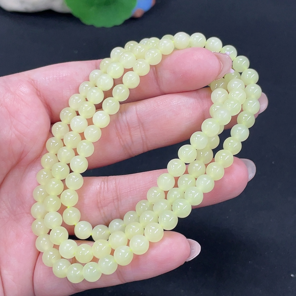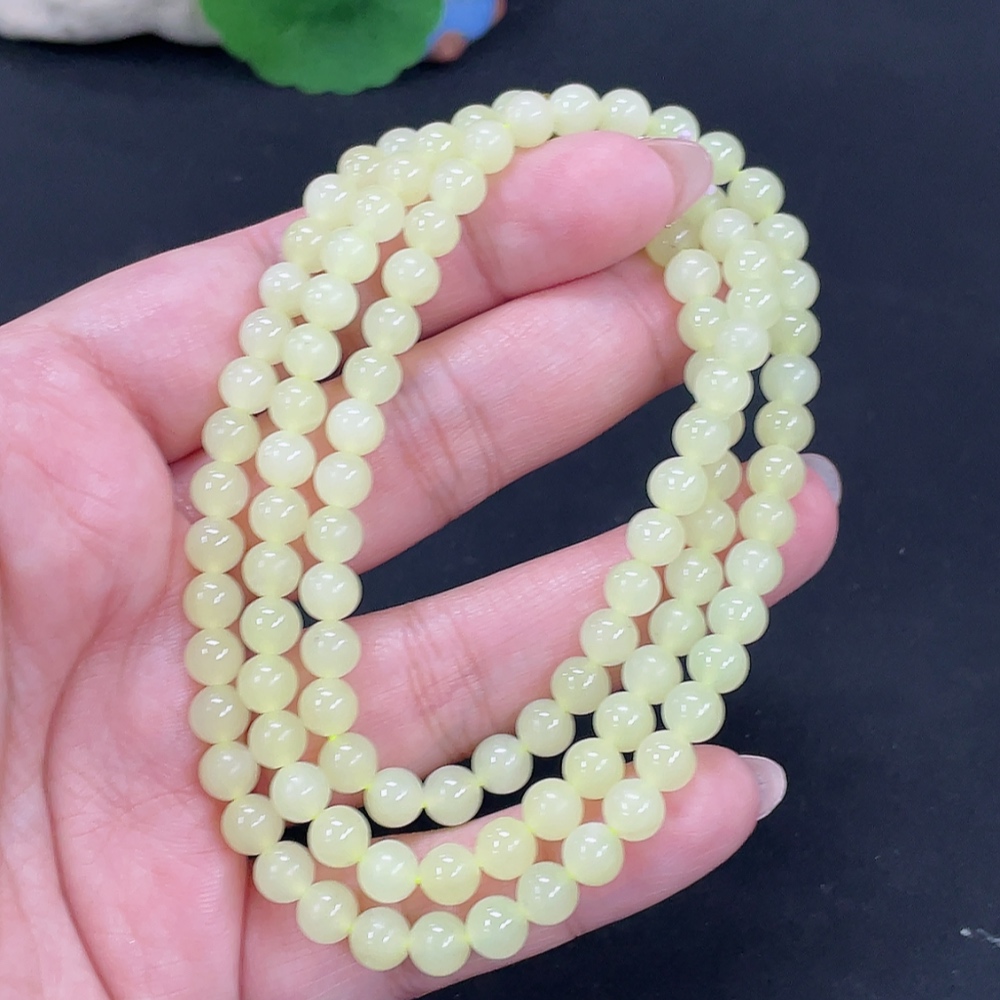 Hetian Jade Bead Necklace Approx. 5.6mm Non-Gold Total Weight Approx. 34.3g