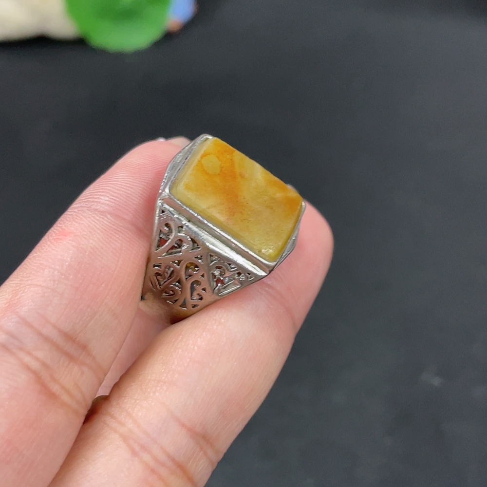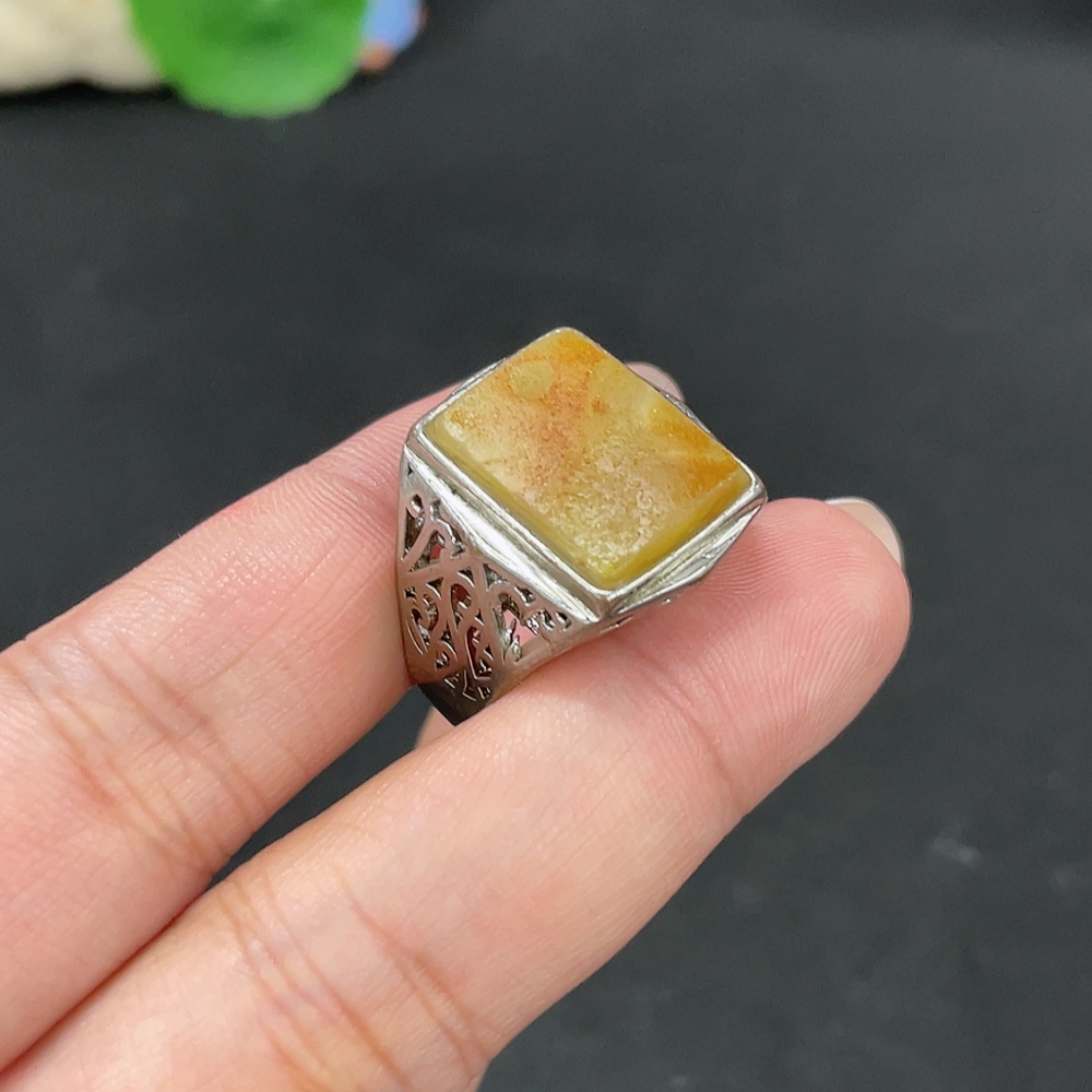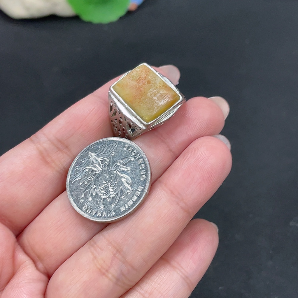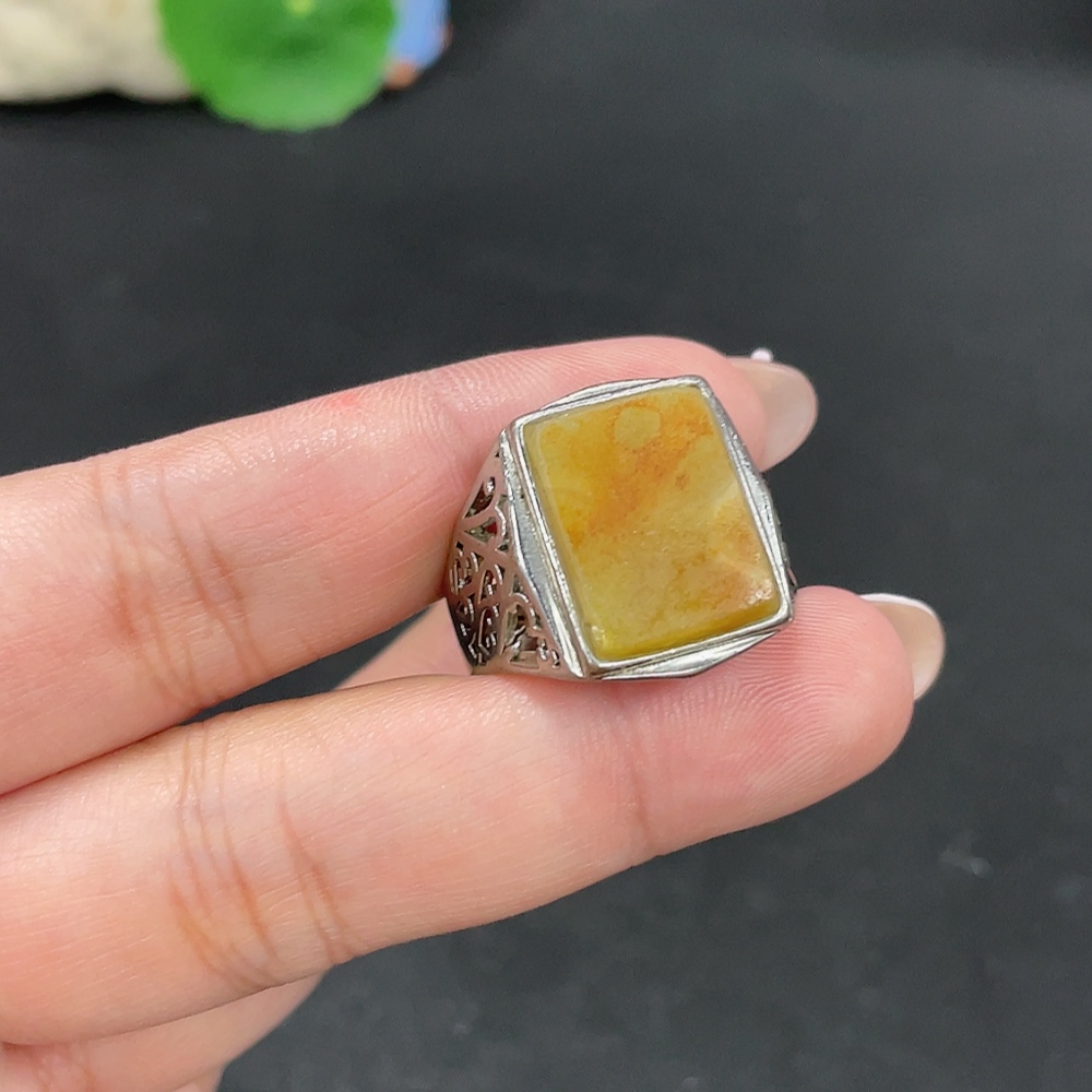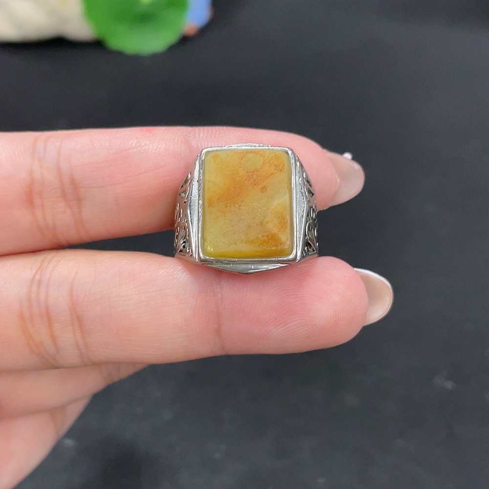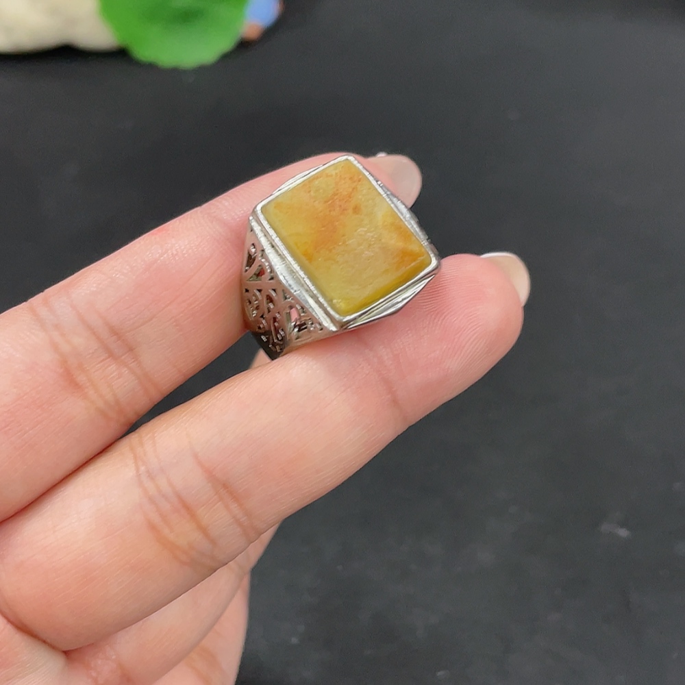 Hetian Jade Inlaid Adjustable Ring Total Weight Approx. 8.8g Non-Gold