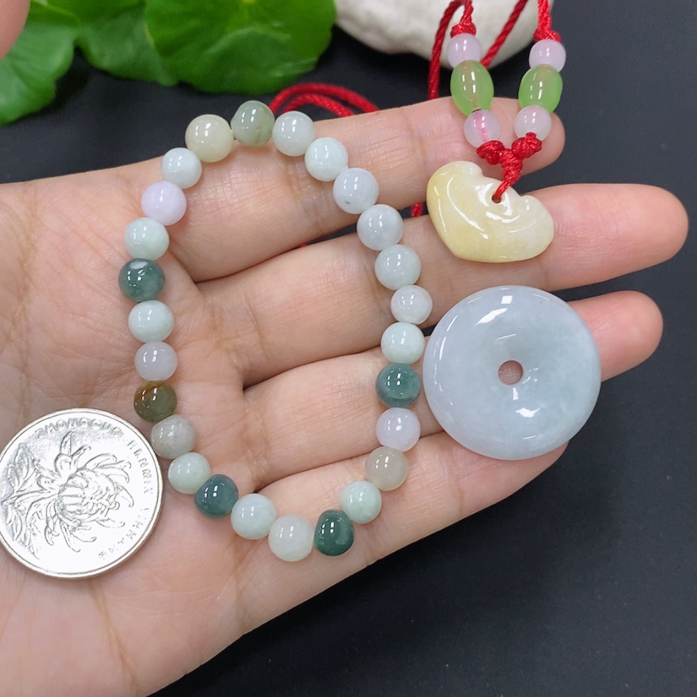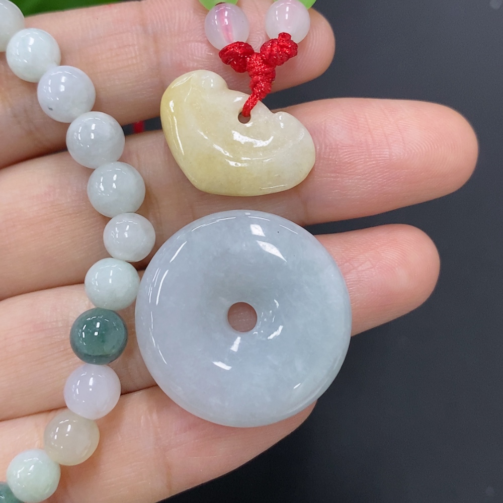 Jadeite Pendant with Bead Strand Sell as a Lot (Beads Not Grade A)