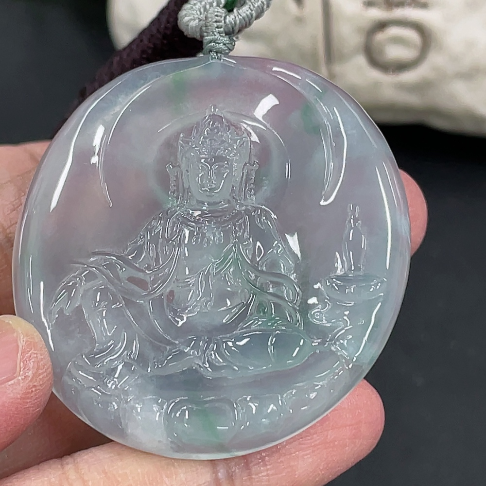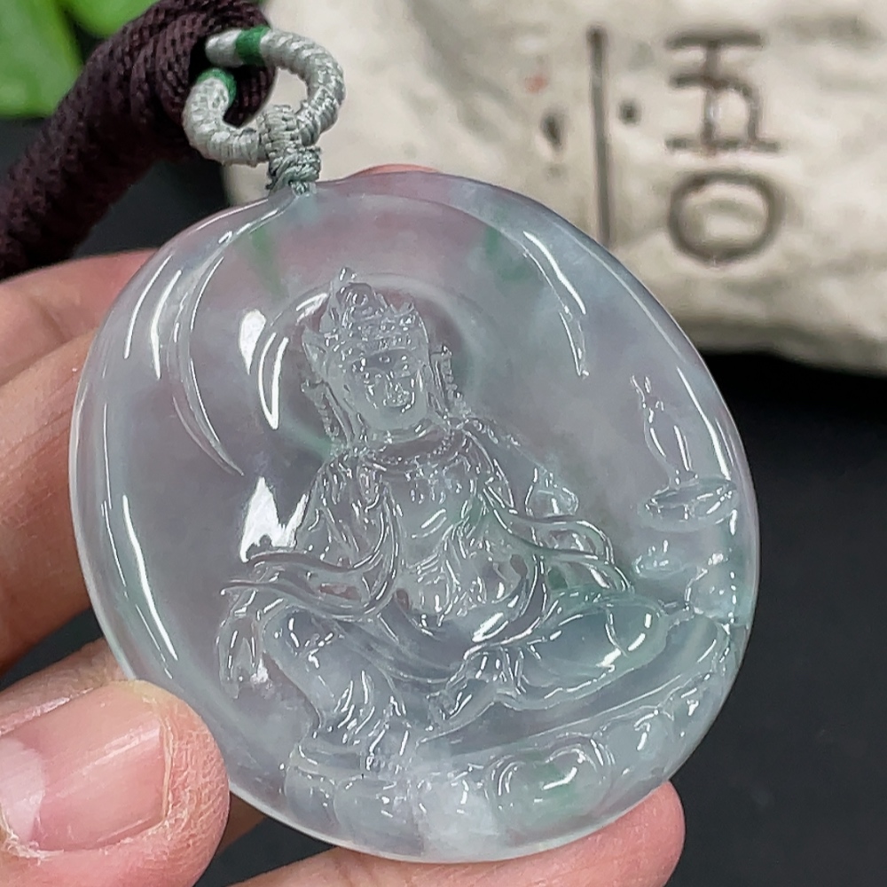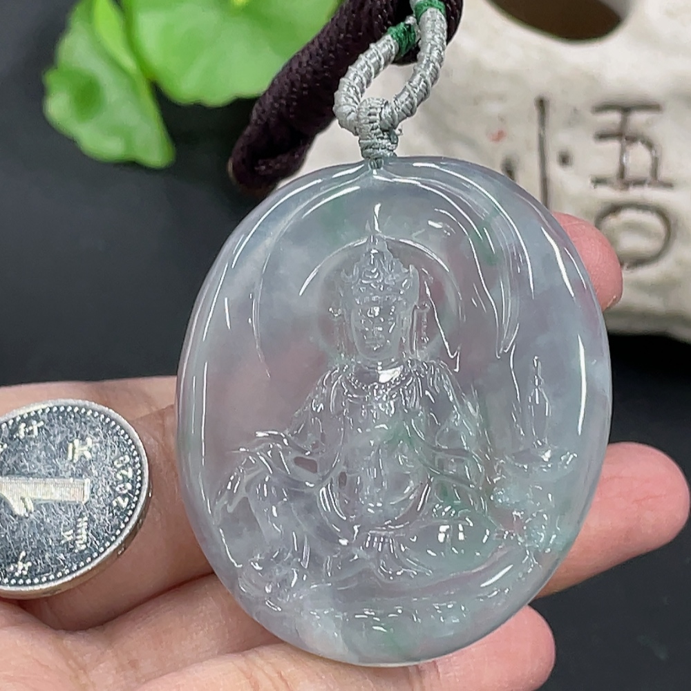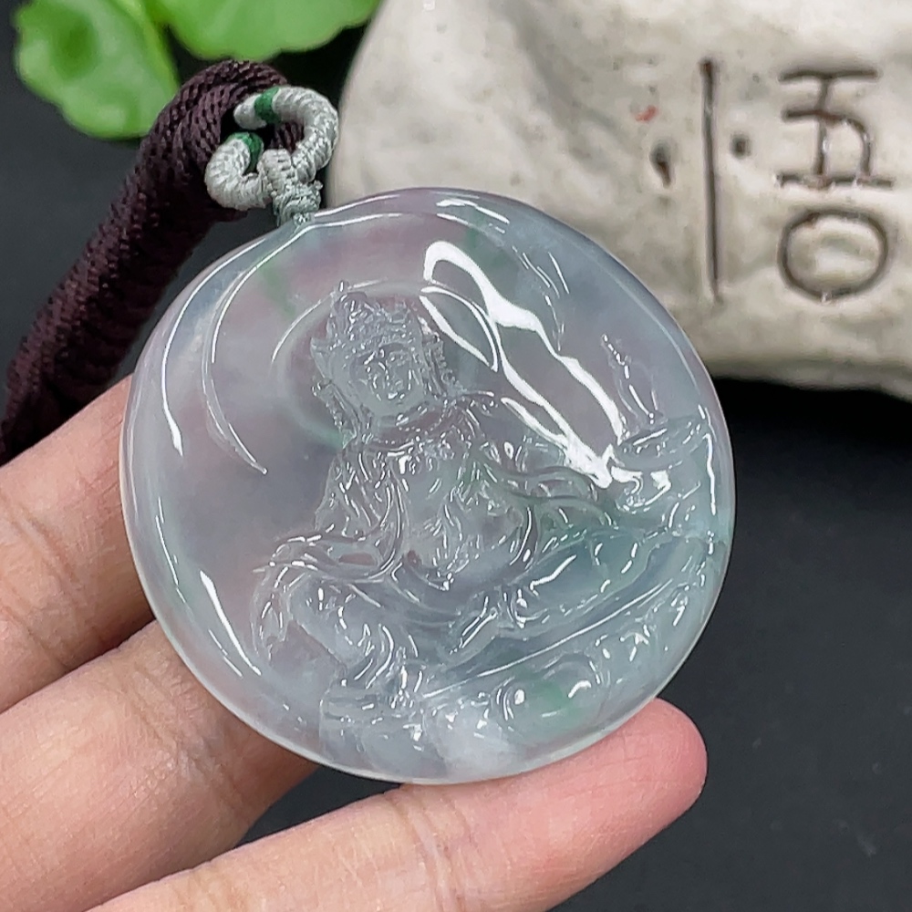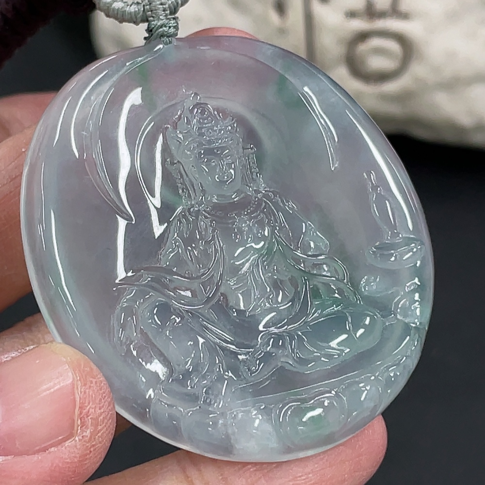 Jadeite Guanyin Pendant, Total Weight Approx. 28.8g