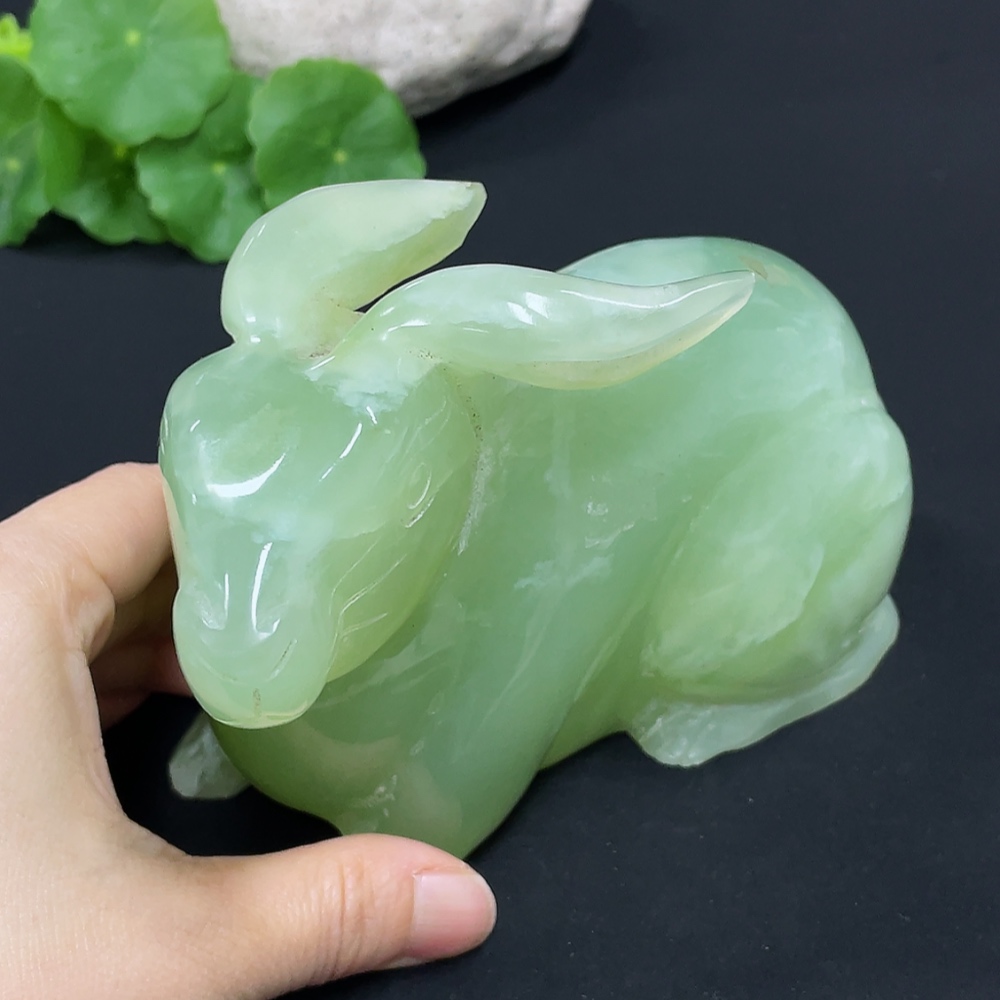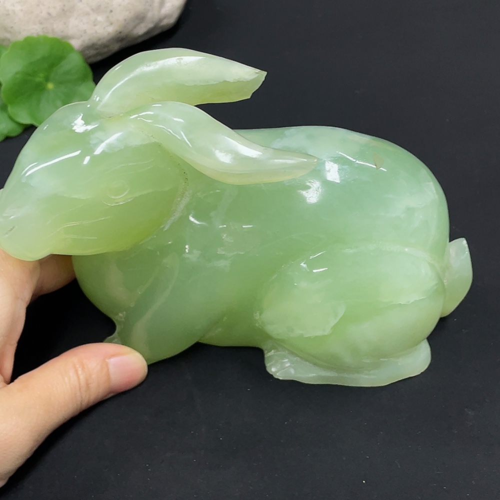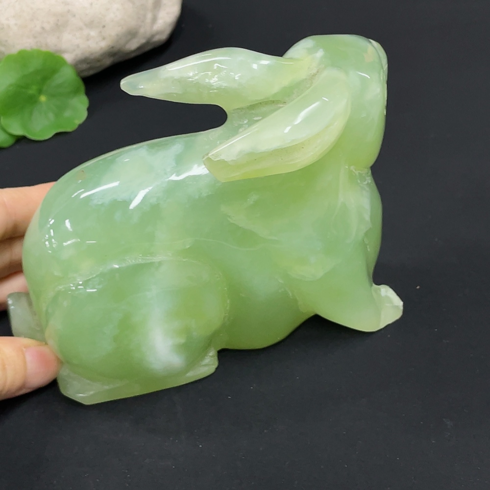 Xiuyu (serpentine jade) ornament rabbit total weight about 930g damaged