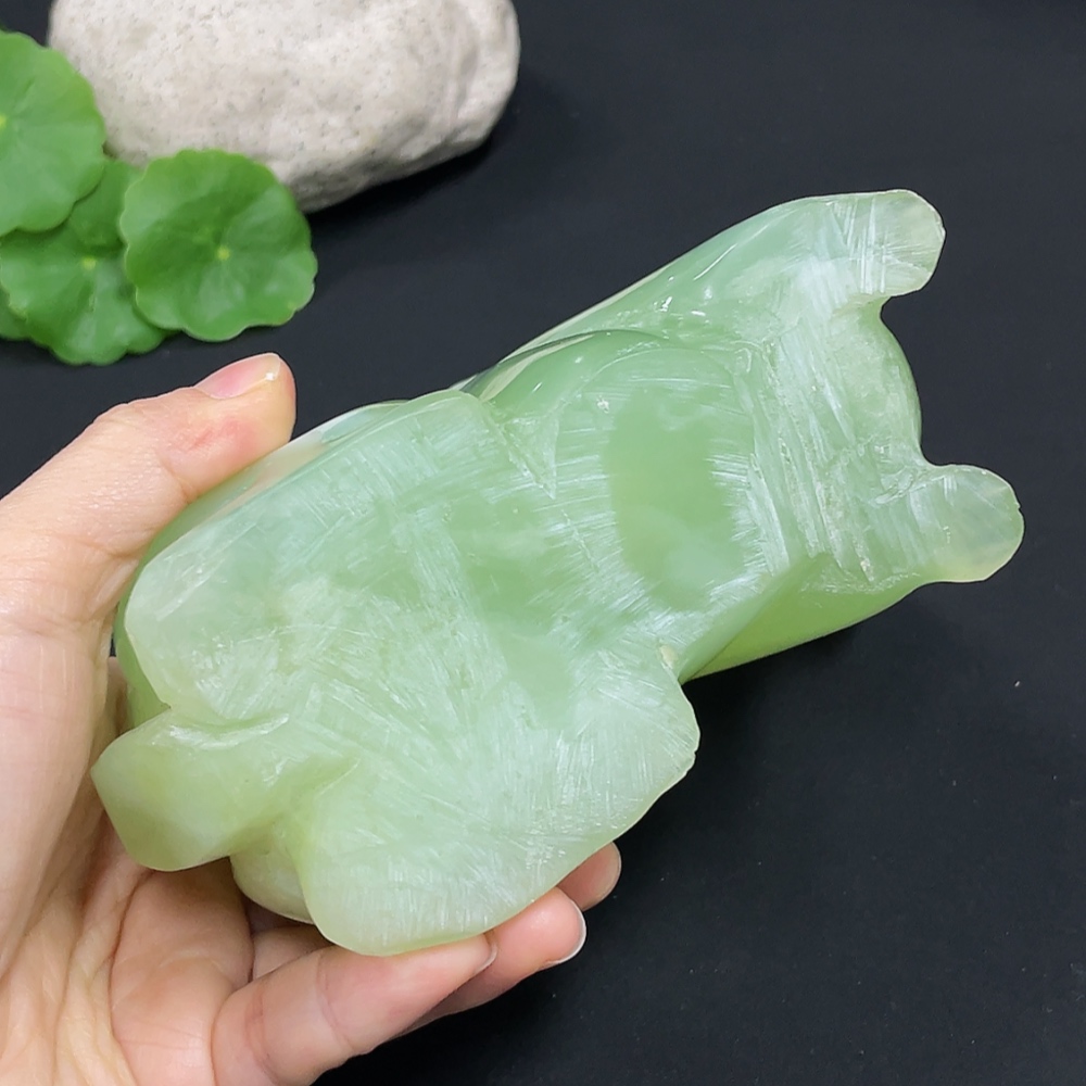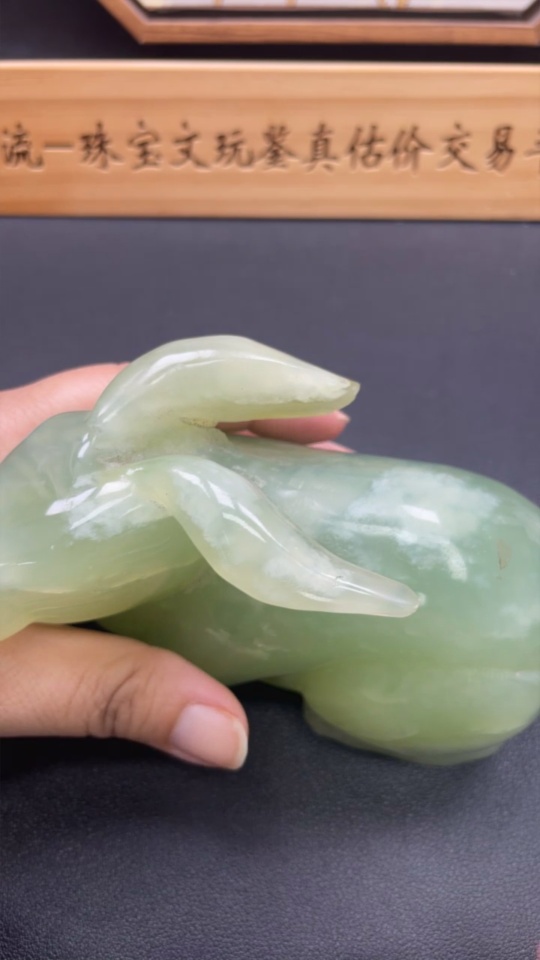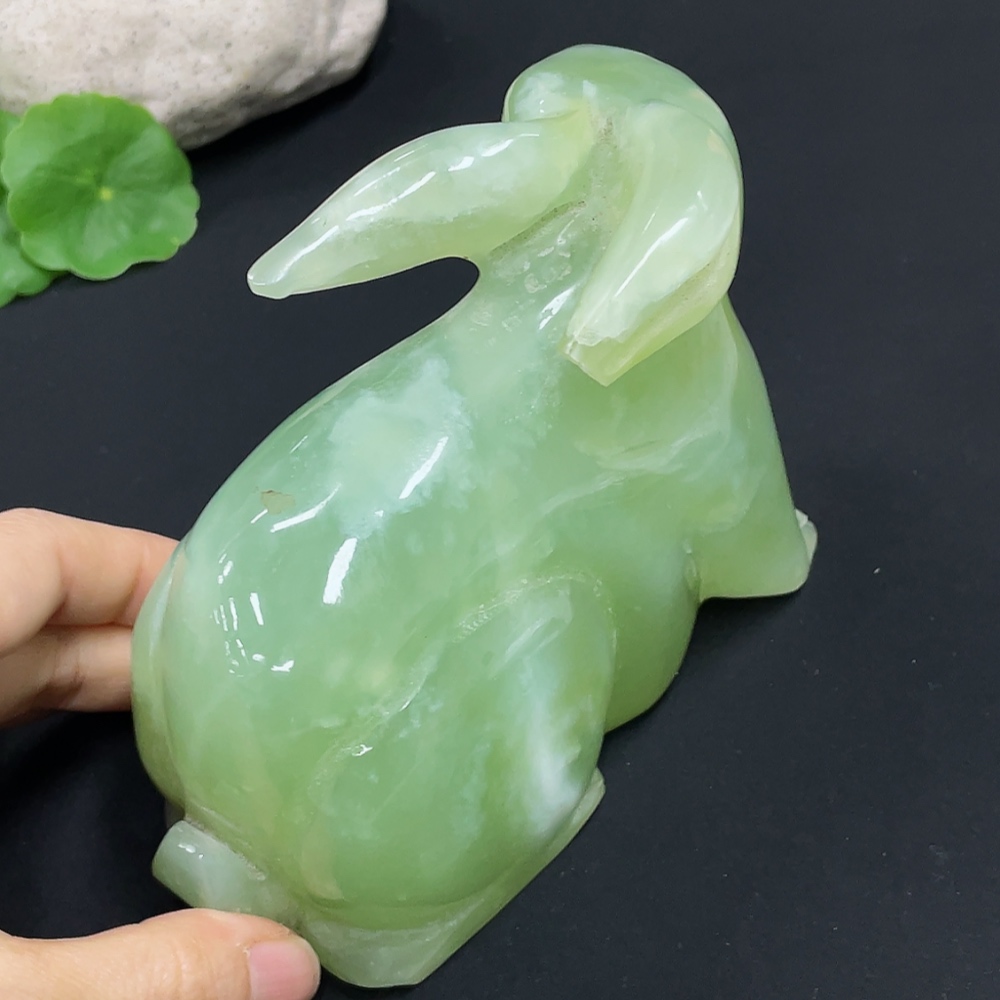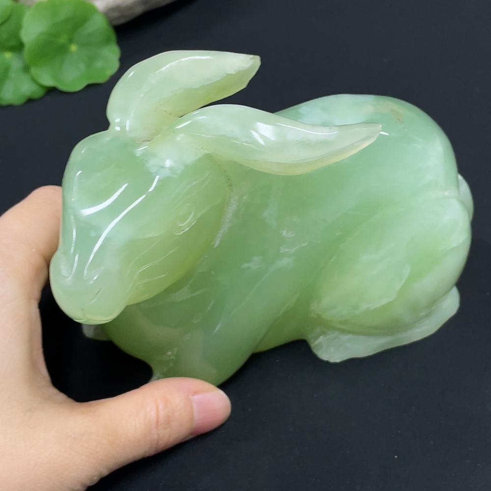 Xiuyu (serpentine jade) ornament rabbit total weight about 930g damaged