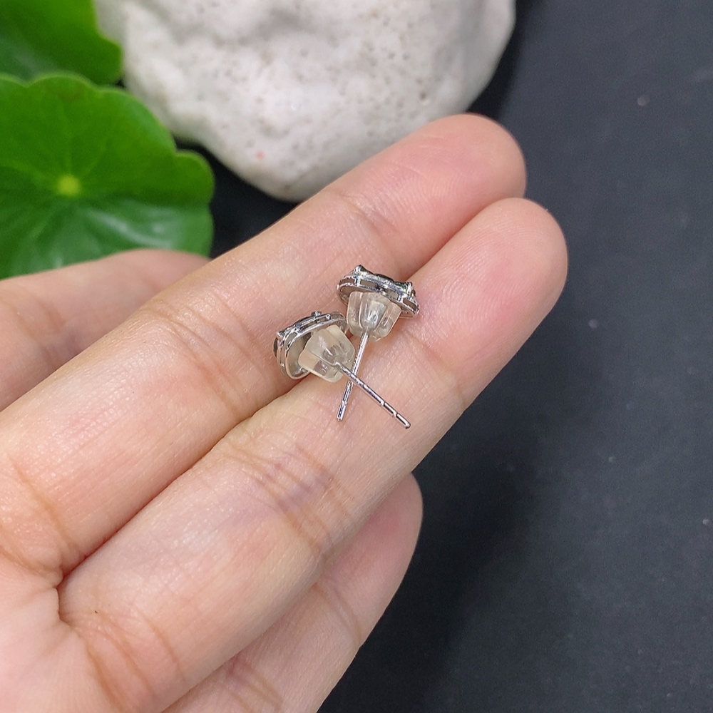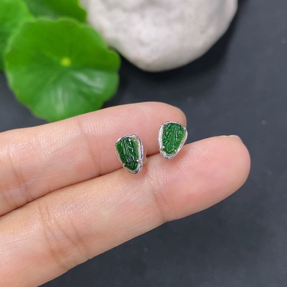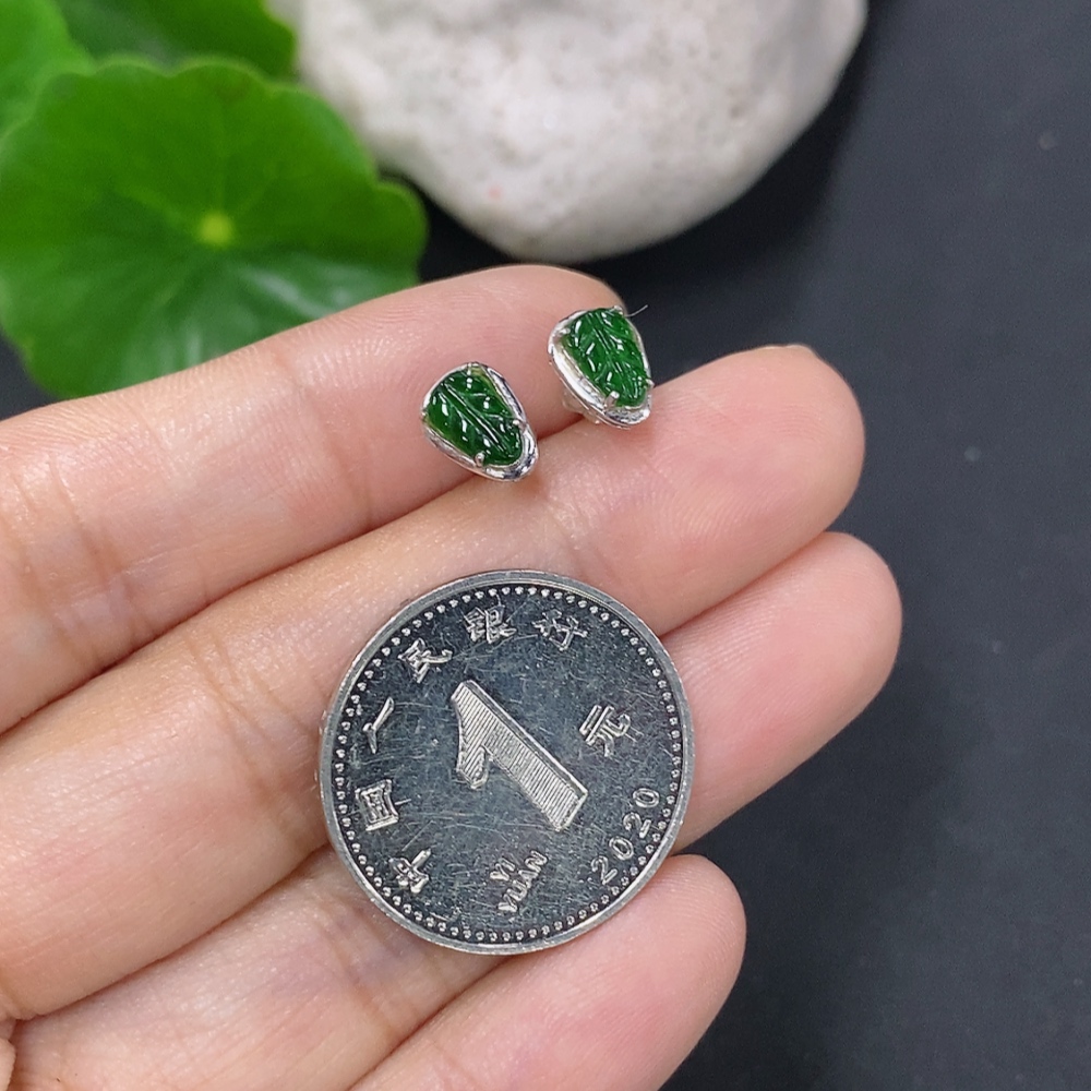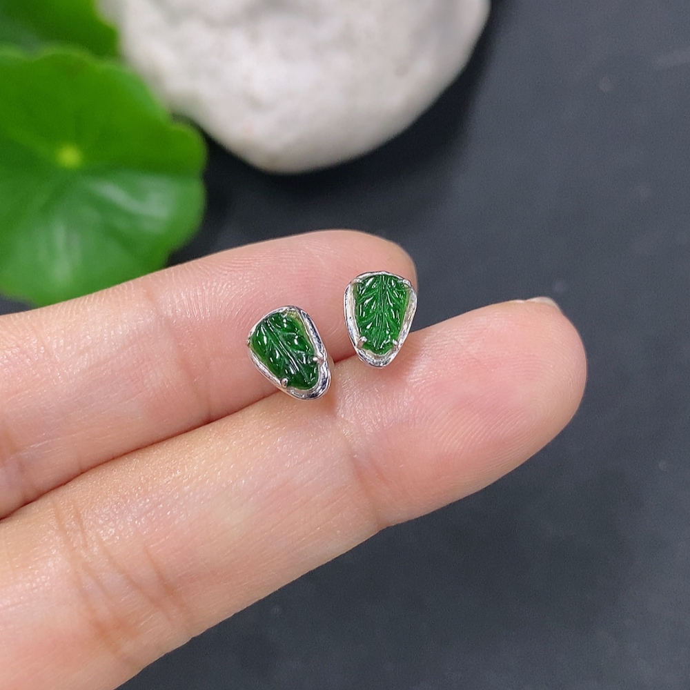 Jadeite Leaf Inlaid Earrings 18K Gold Total Weight Approximately 0.6g Without Ear Studs