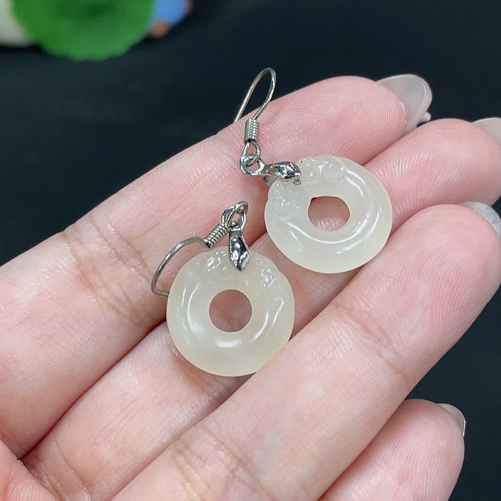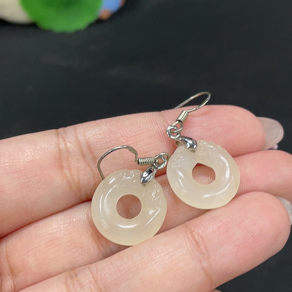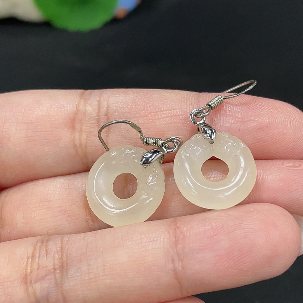 Hetian Jade Inlaid Earrings Antique Button Total Weight Approx.4.3g Non-Gold