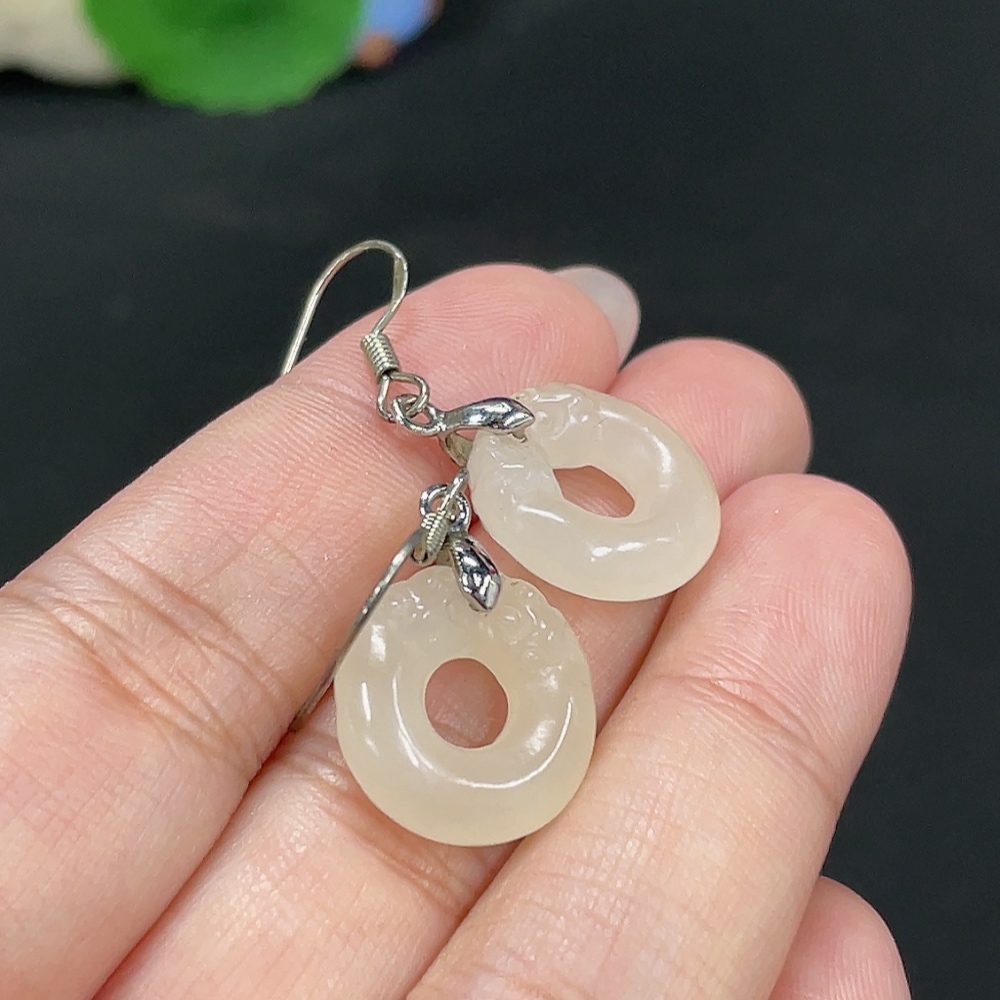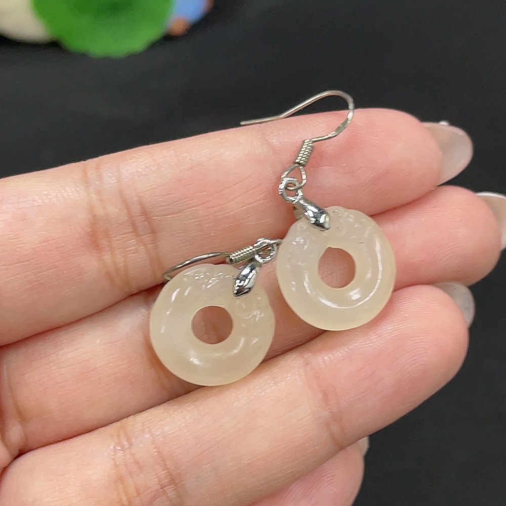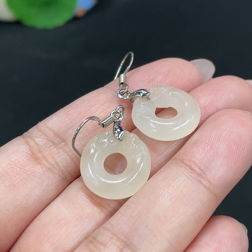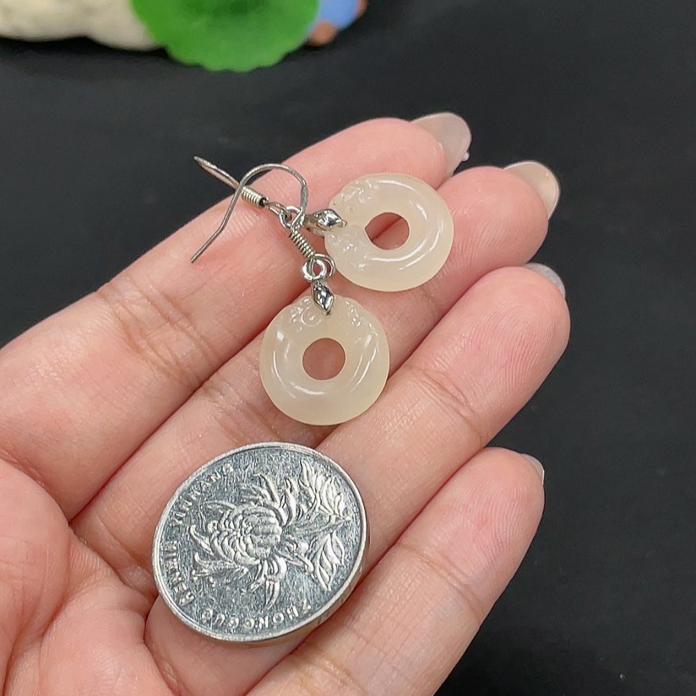 Hetian Jade Inlaid Earrings Antique Button Total Weight Approx.4.3g Non-Gold