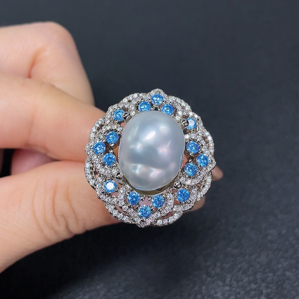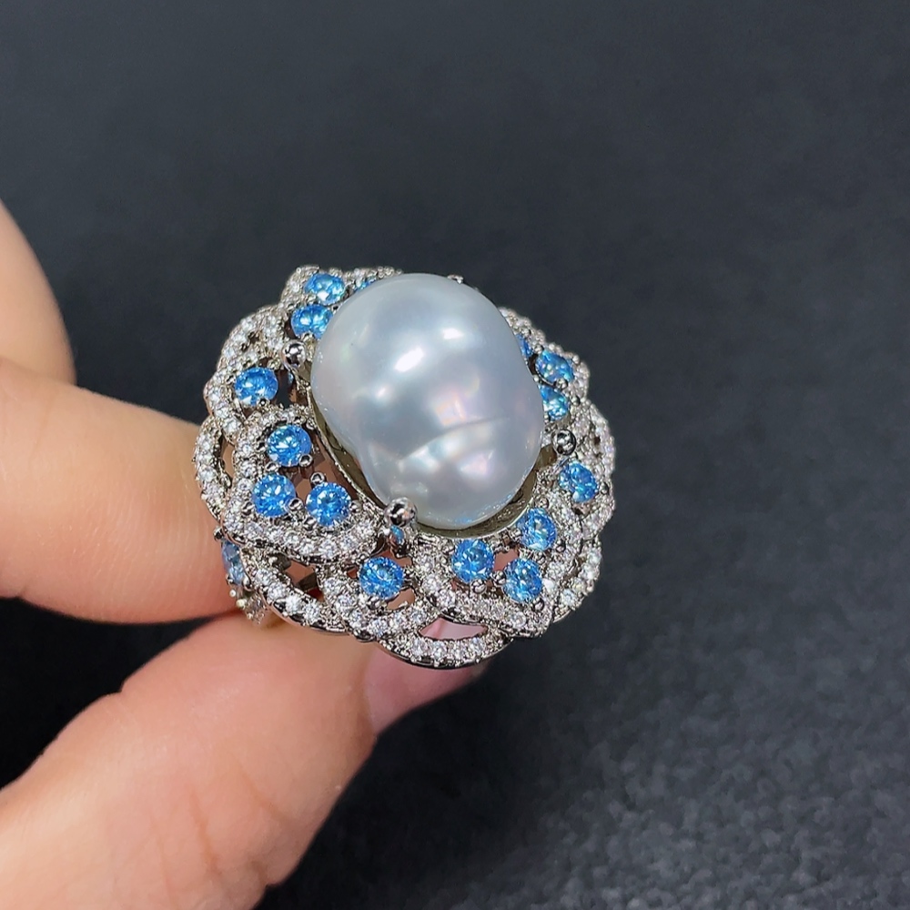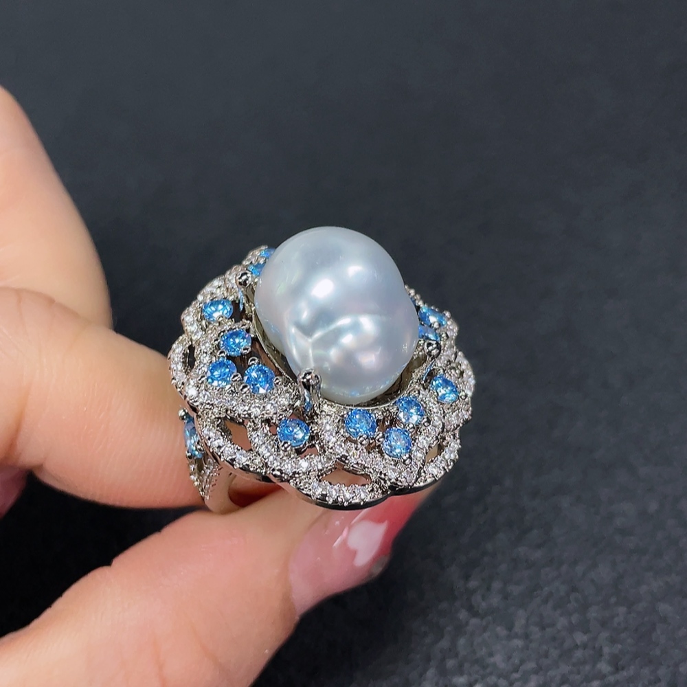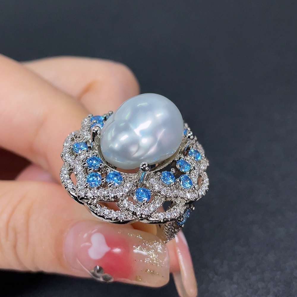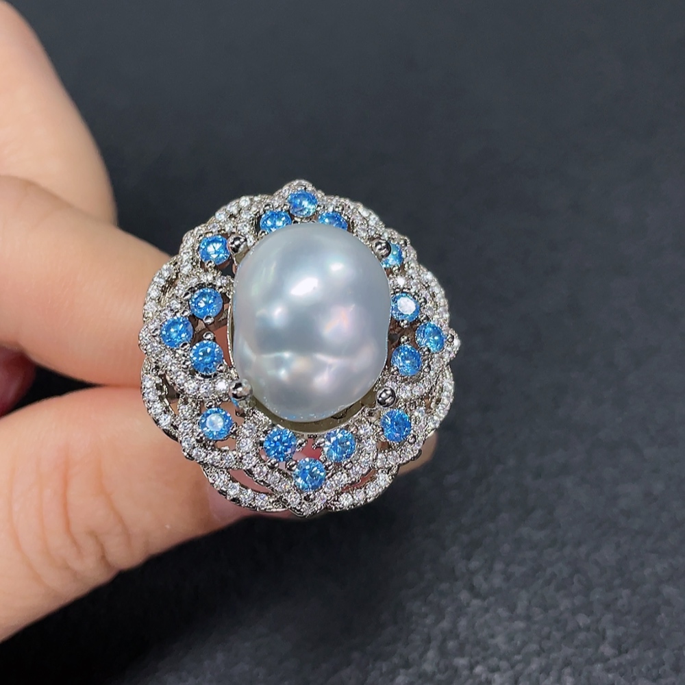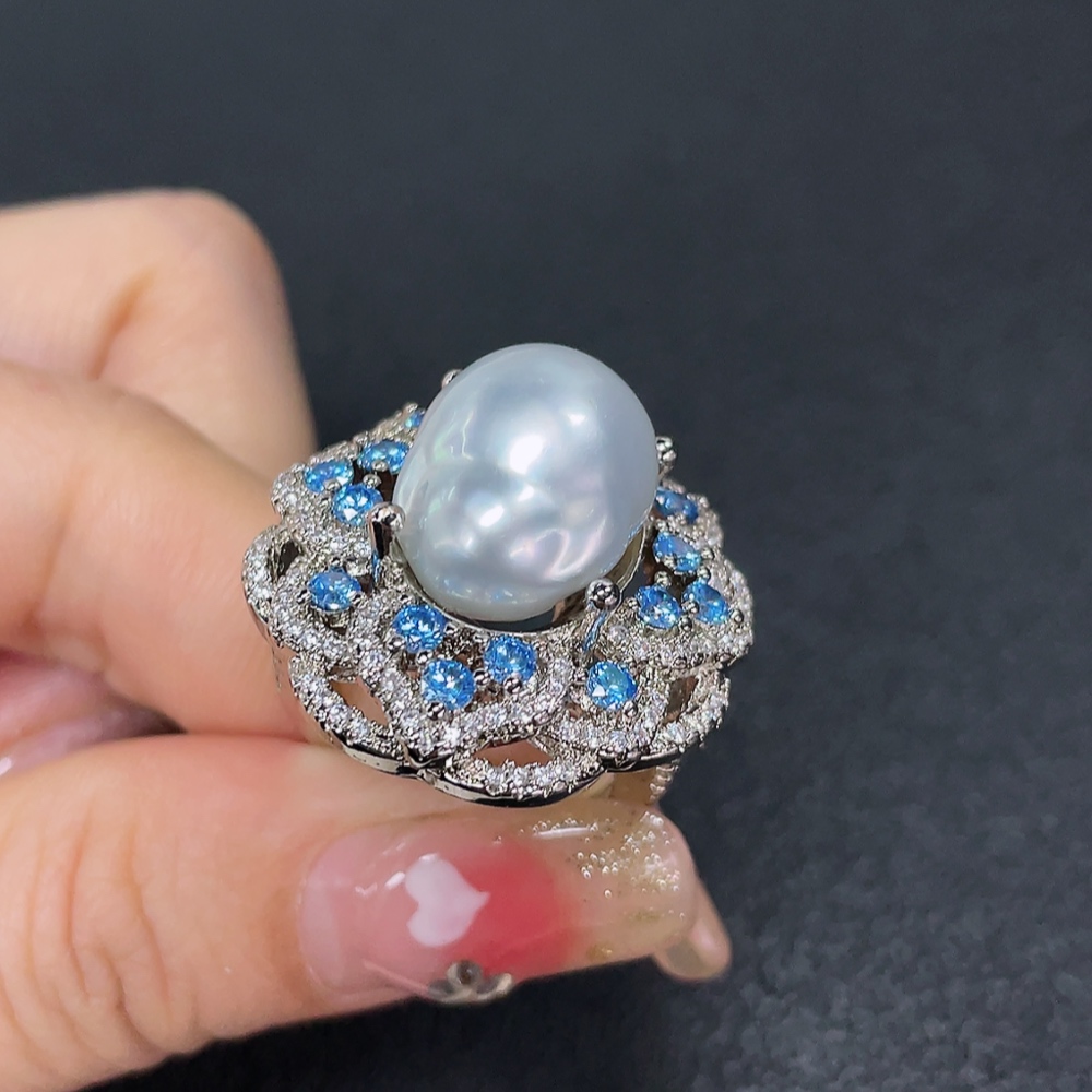 Seawater Pearl Ring, Color Origin Undetermined, Non-Gold, Adjustable, Total Weight Approximately 14.79g