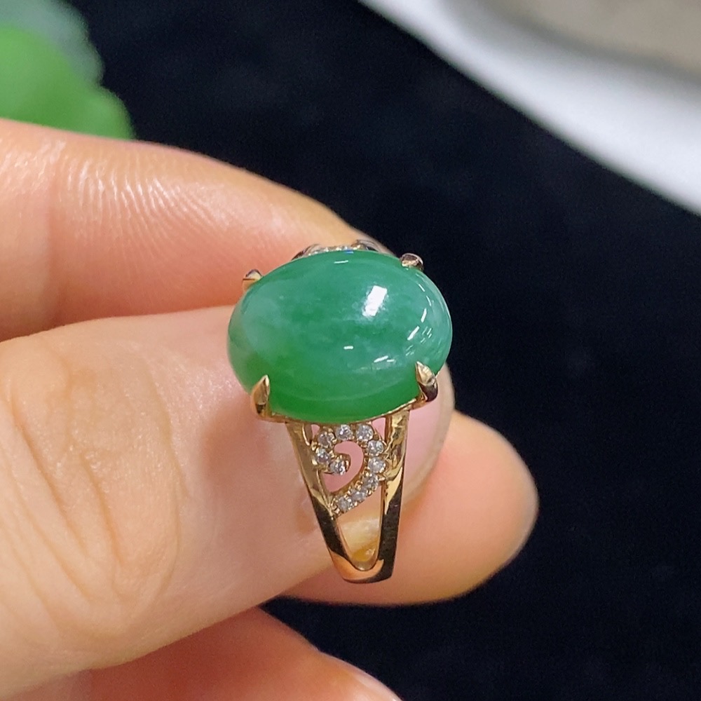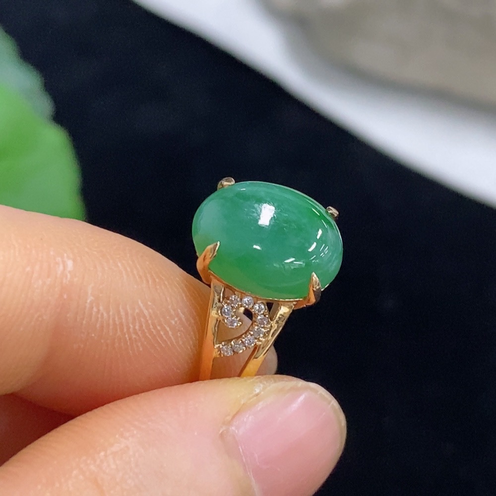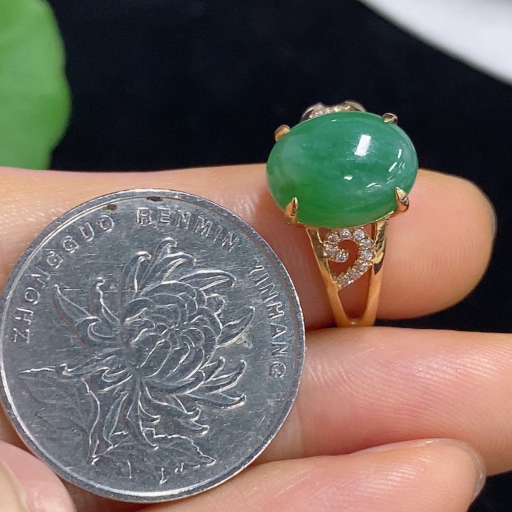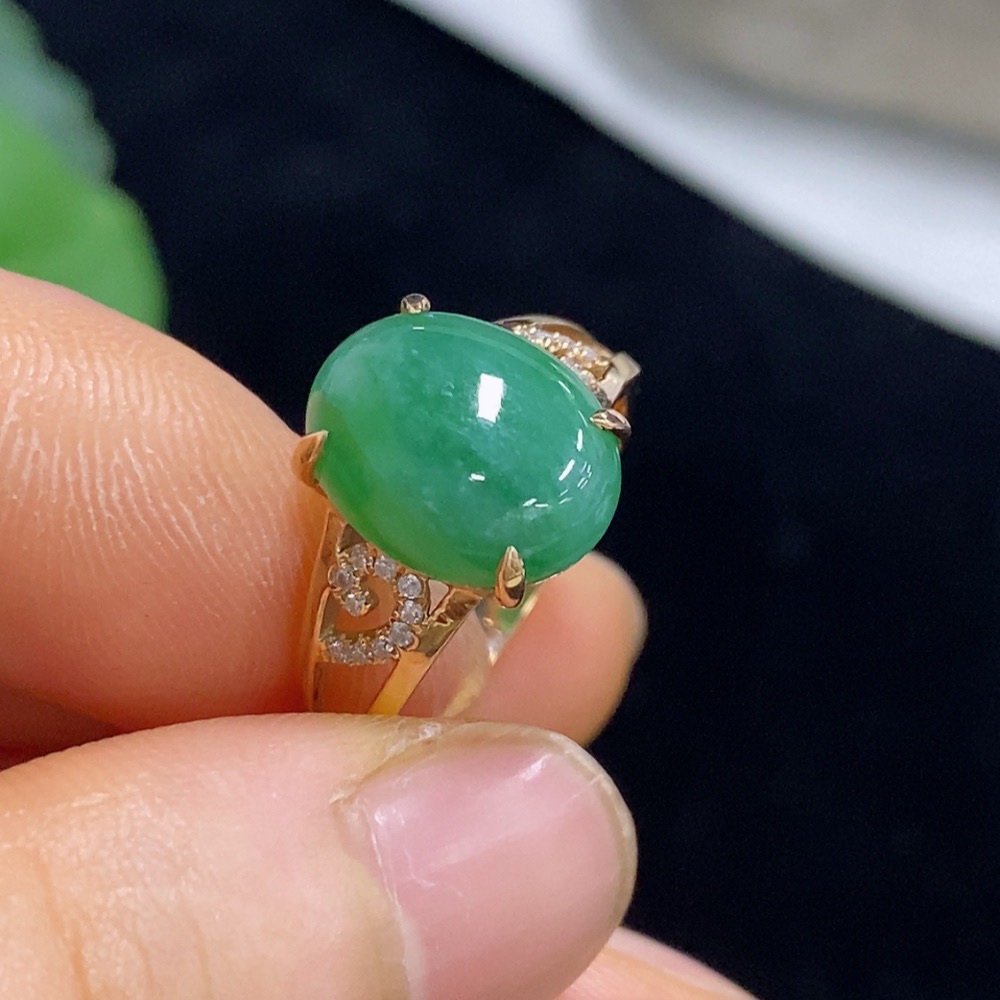 Jadeite Ring with 18k Gold and Diamond Accents, Size 16, Total Weight Approximately 4.4g