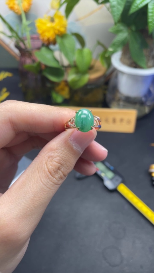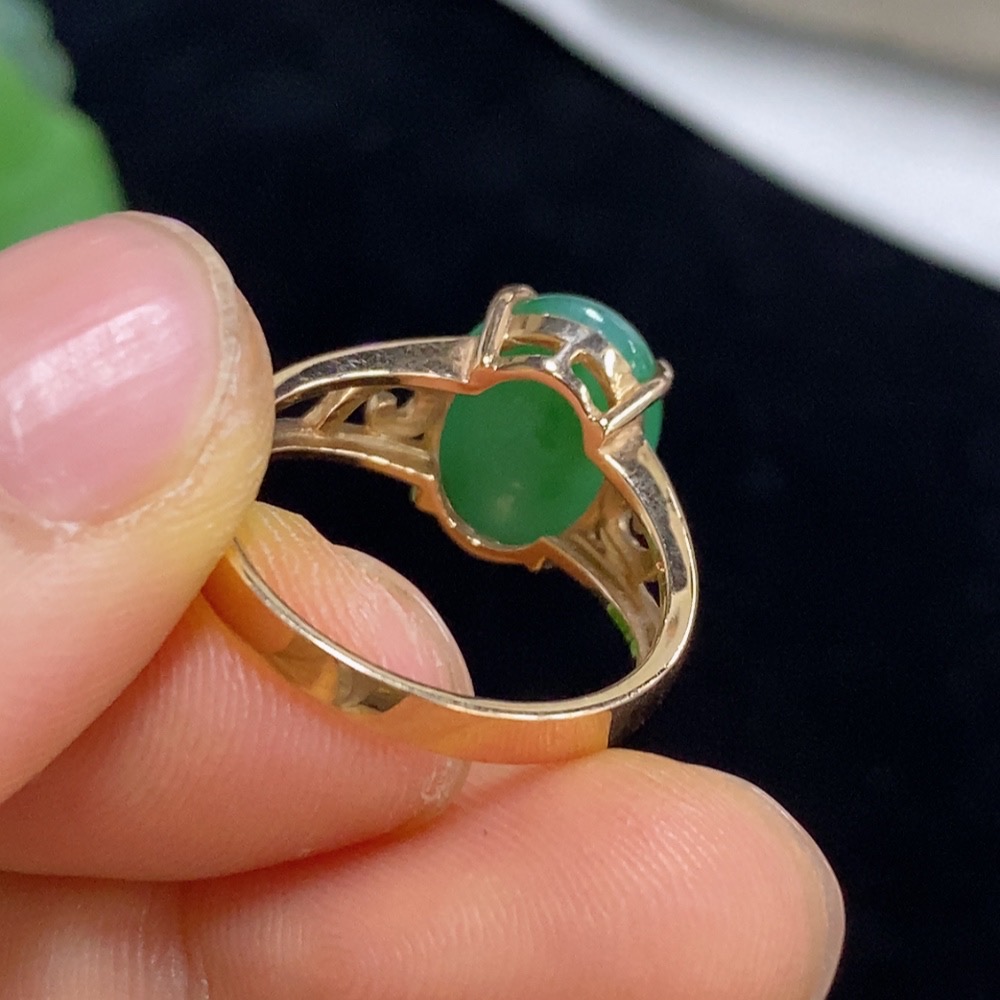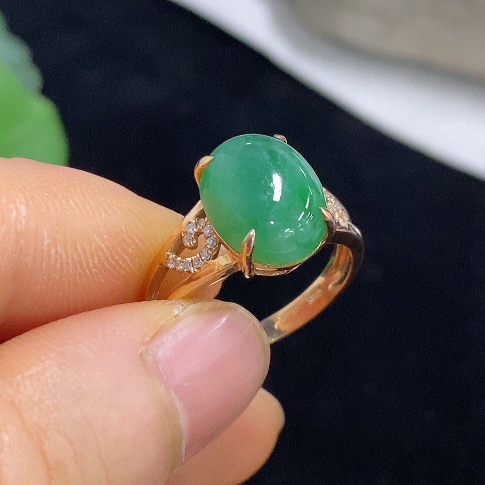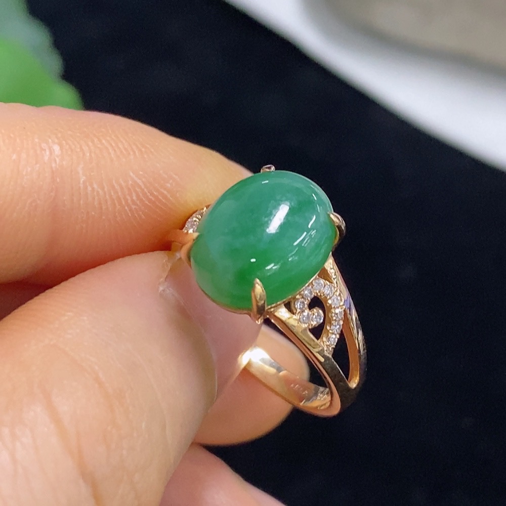 Jadeite Ring with 18k Gold and Diamond Accents, Size 16, Total Weight Approximately 4.4g