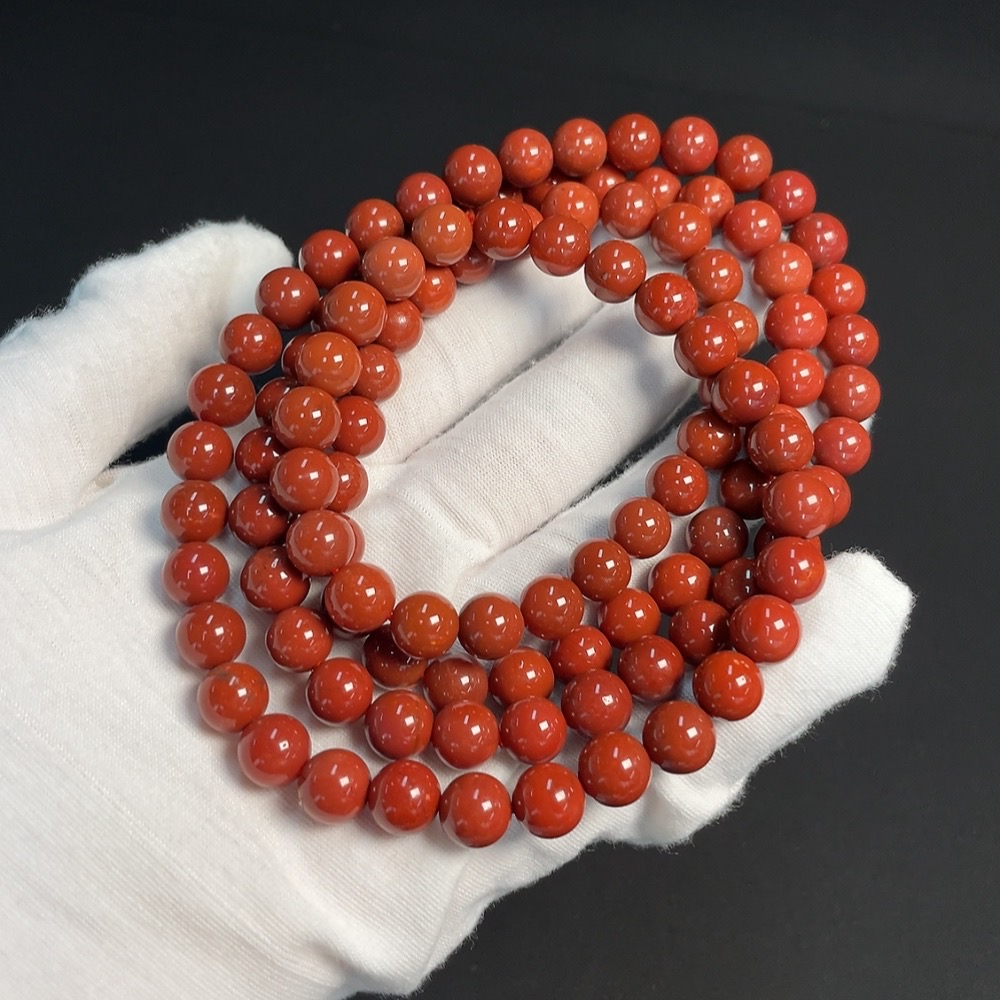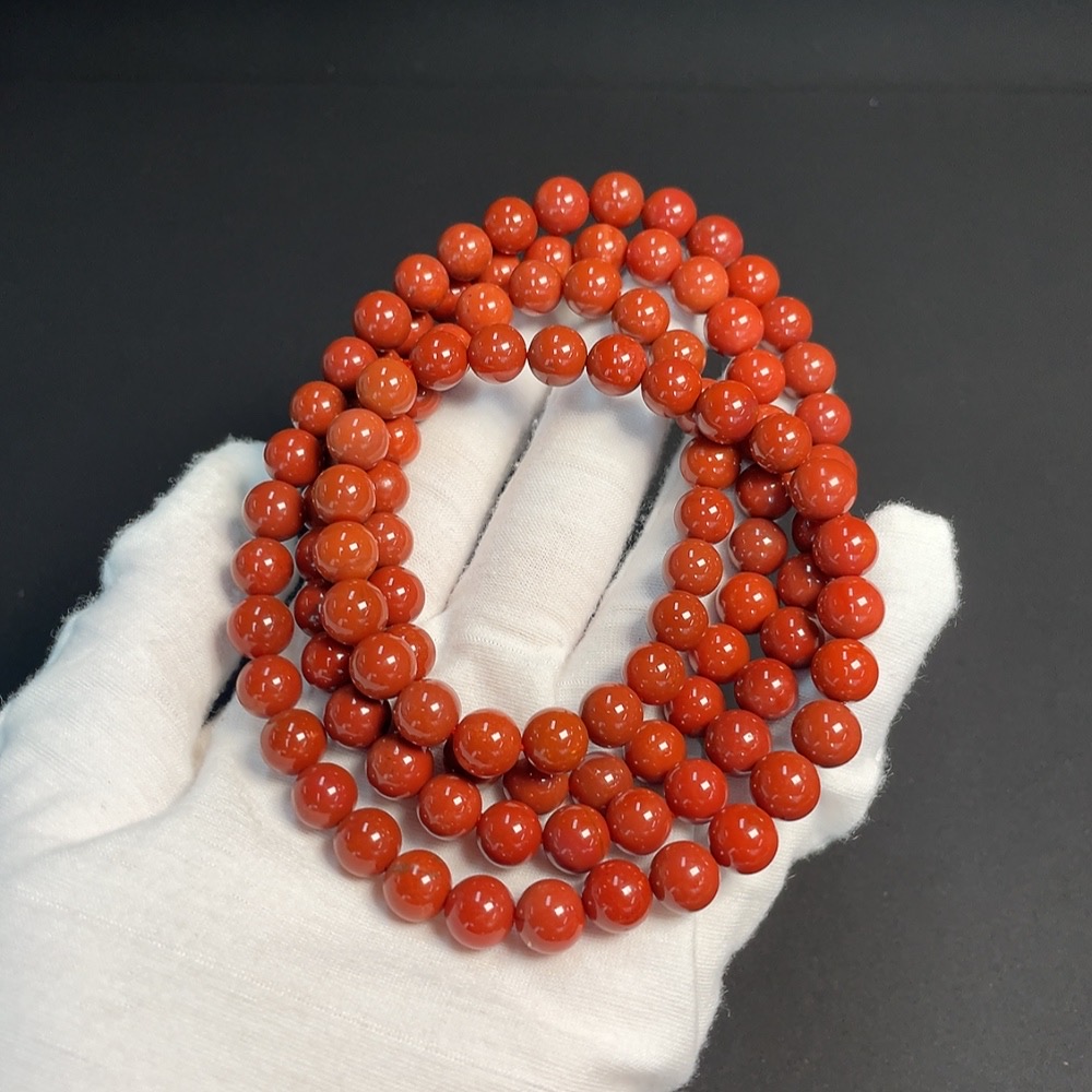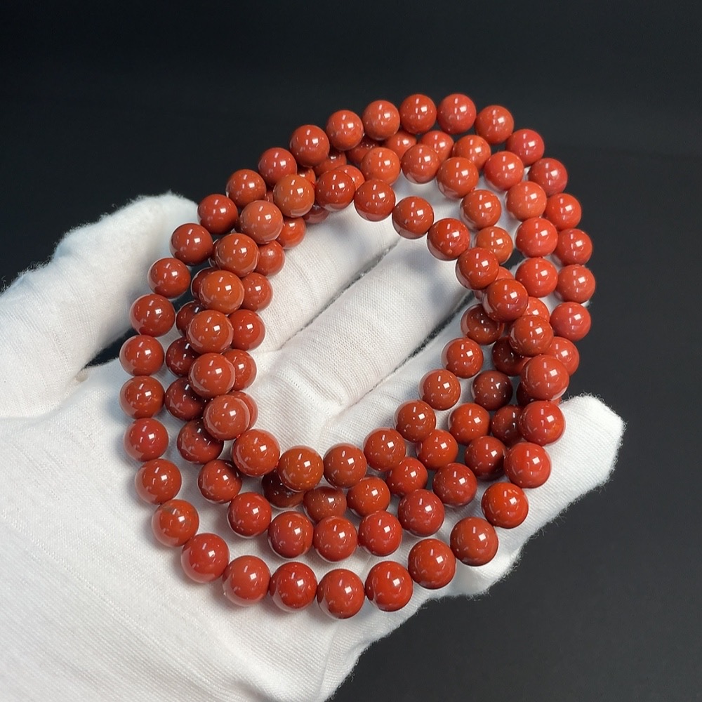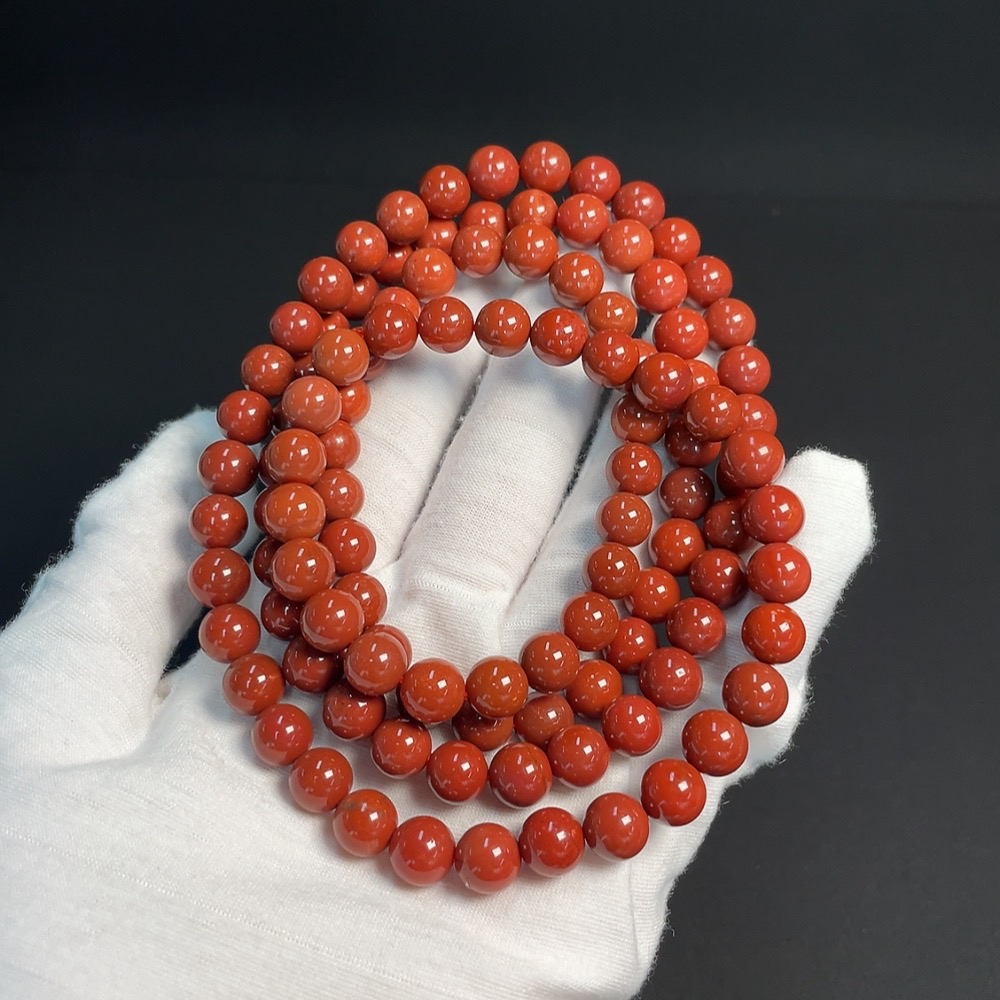 Red Agate Bead Strand approx. 8.5mm Total Weight approx. 94.46g Visible Organic Matter