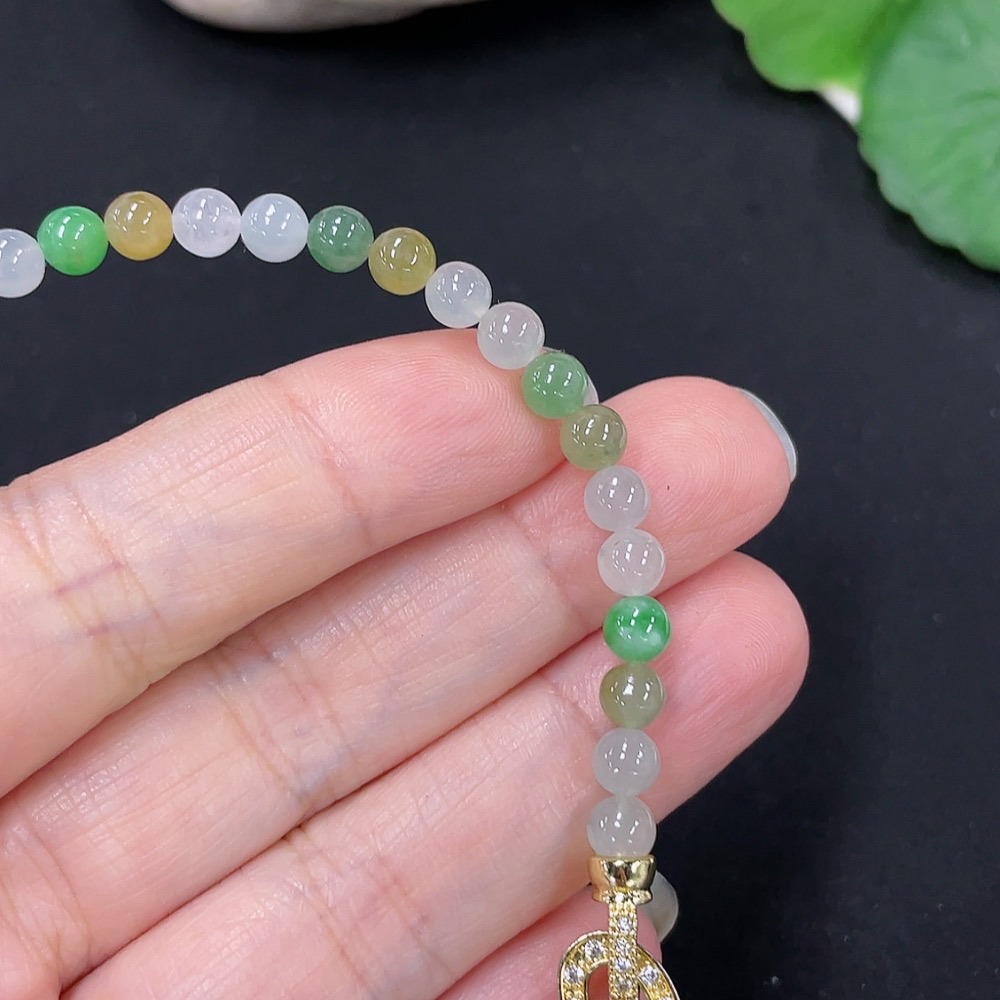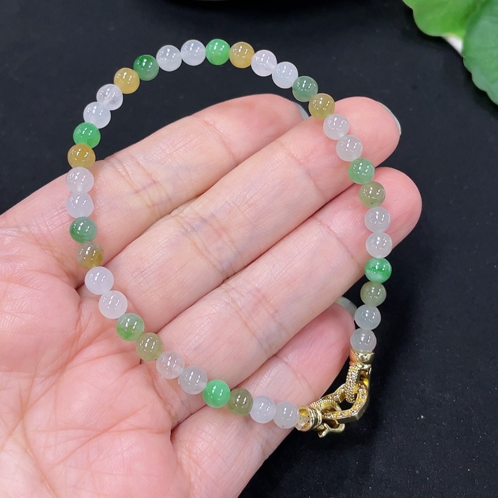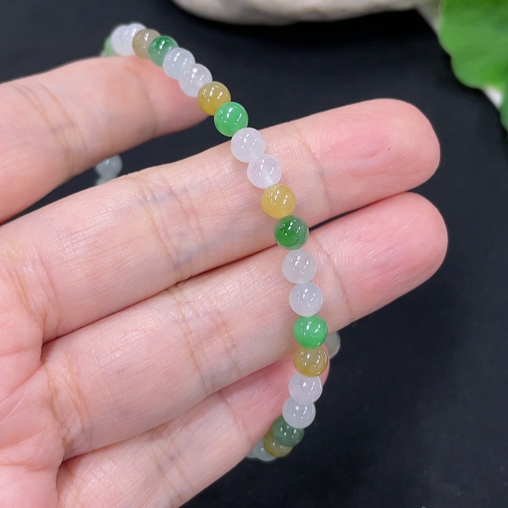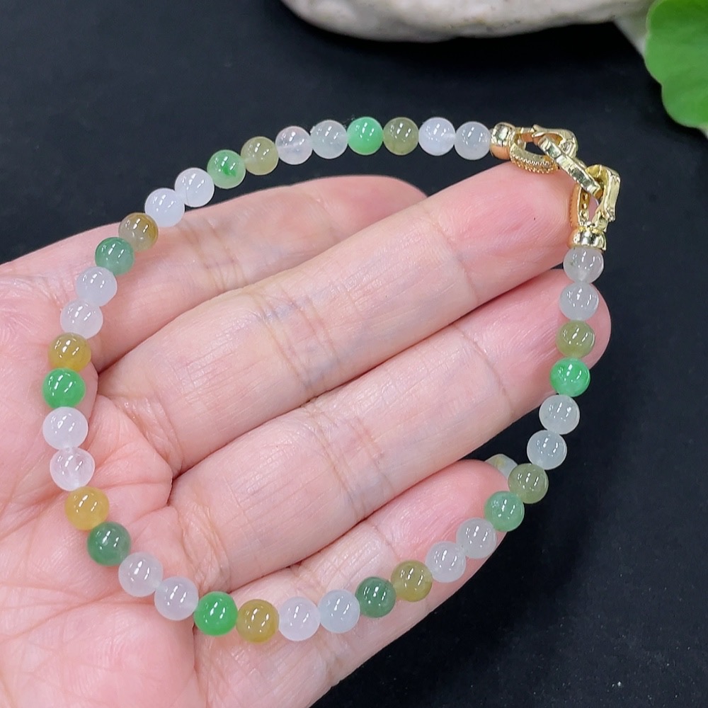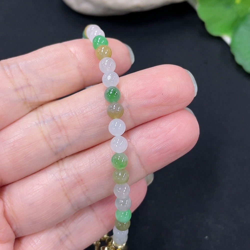 Jadeite Beads Bracelet Approx. 4.7mm Total Weight Approx. 8.5g (Non-Gold Inlaid)