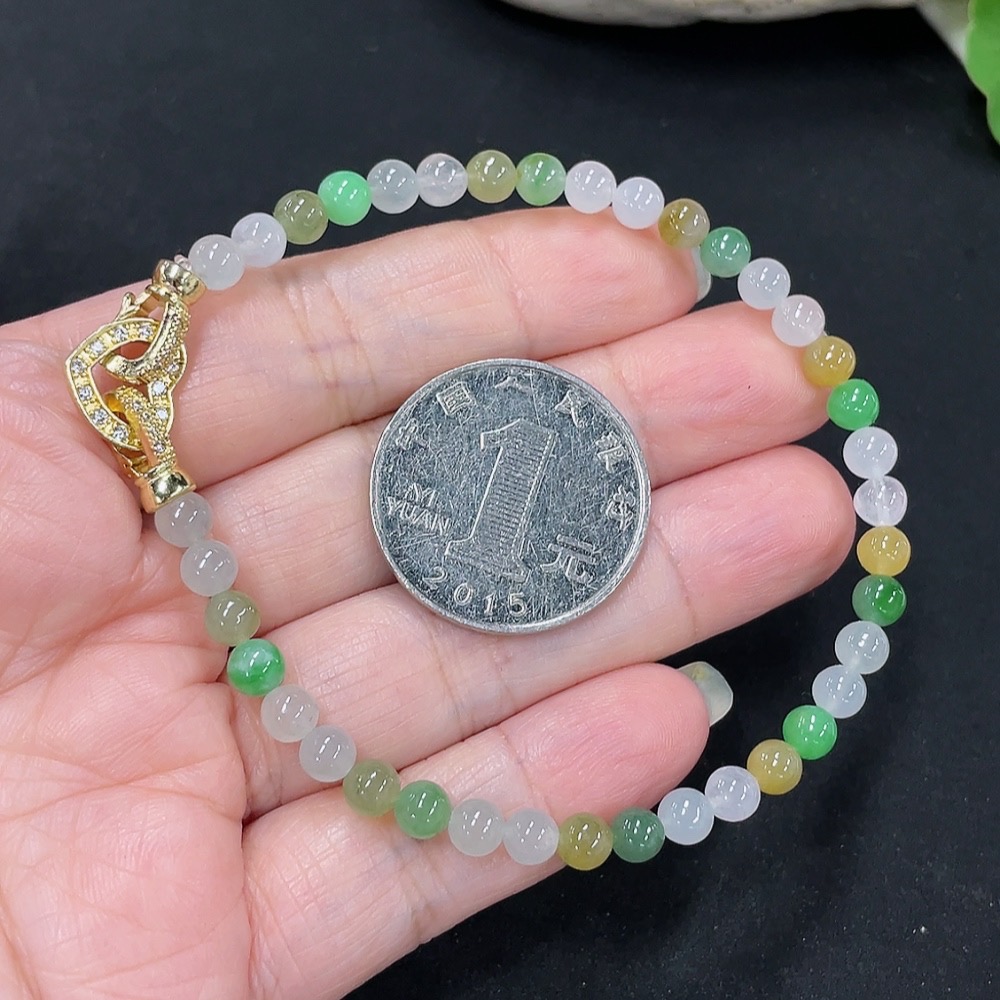 Trezaar - Jadeite Beads Bracelet Approx. 4.7mm Total Weight Approx. 8.5g (Non-Gold Inlaid)