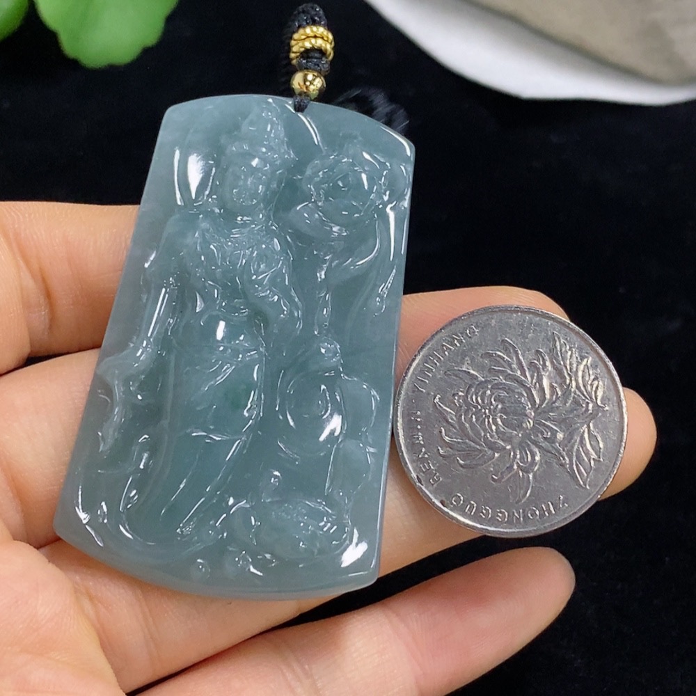 Jadeite Guanyin Pendant Total Weight Approx. 22.65g (Including Rope Weight)