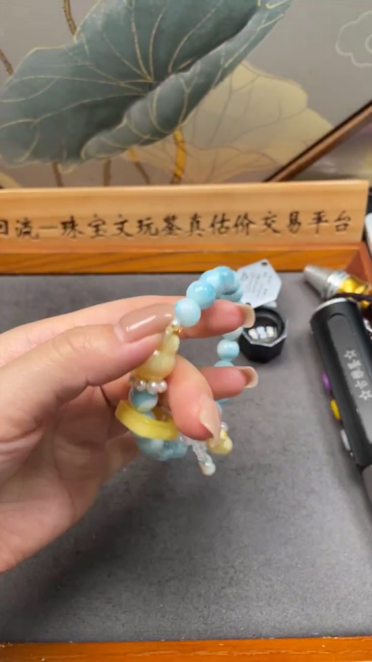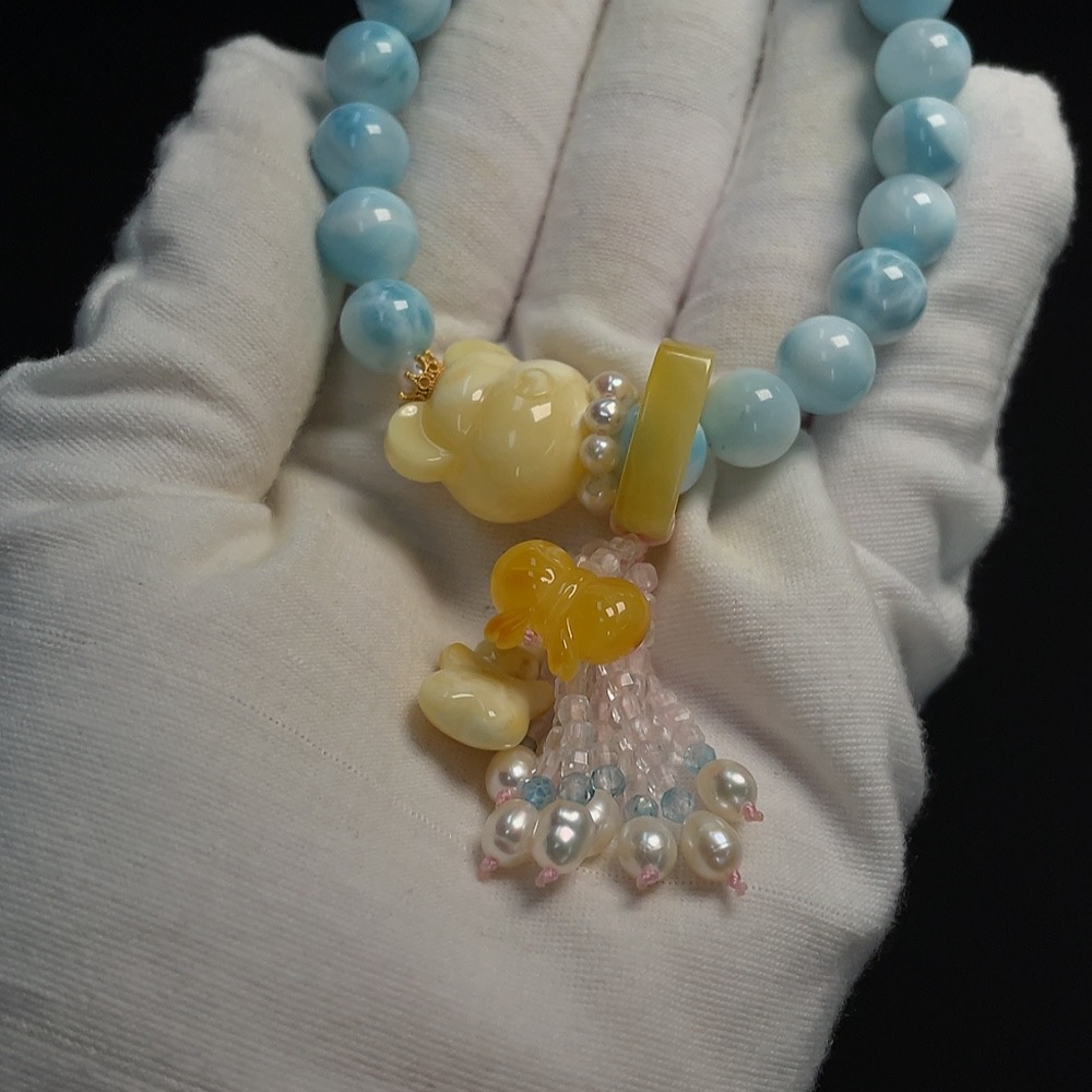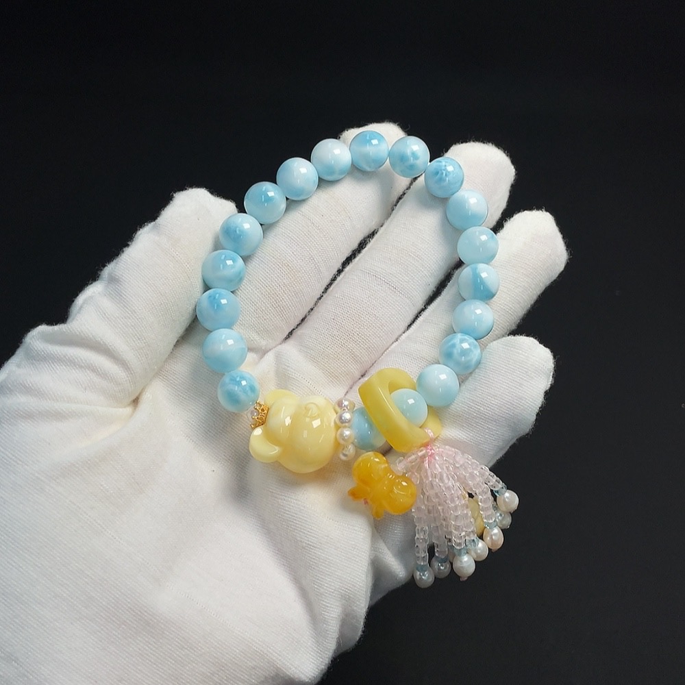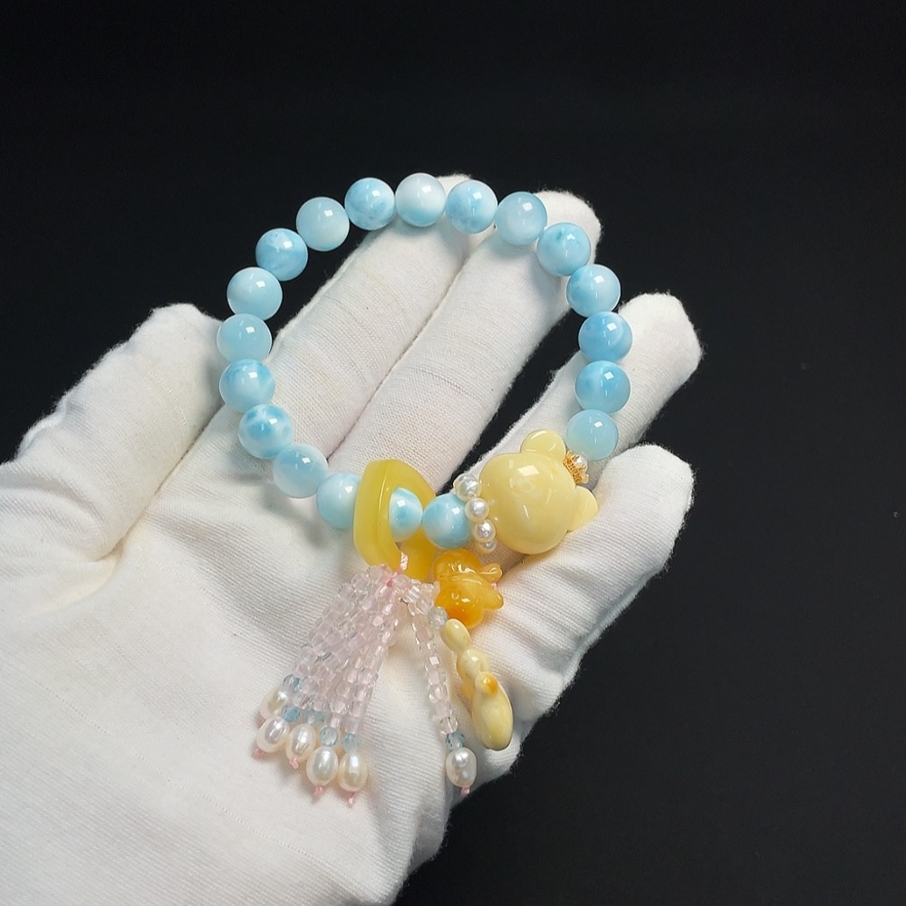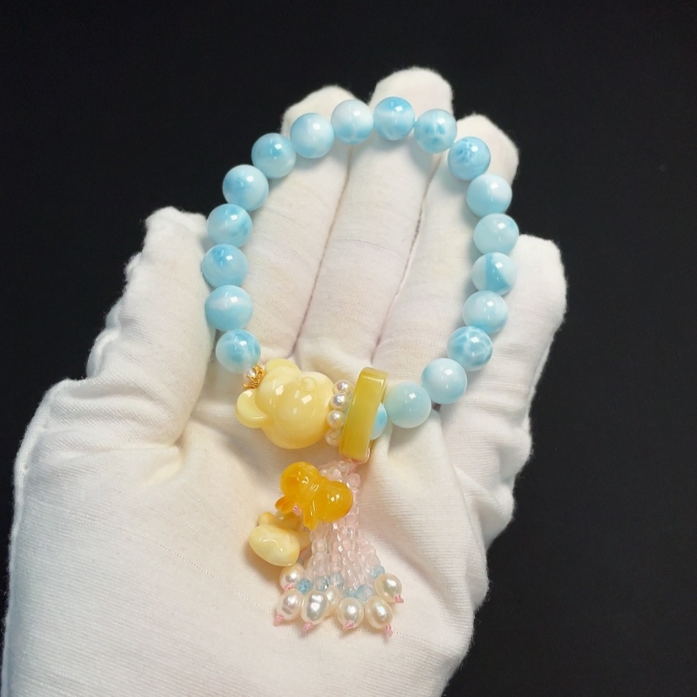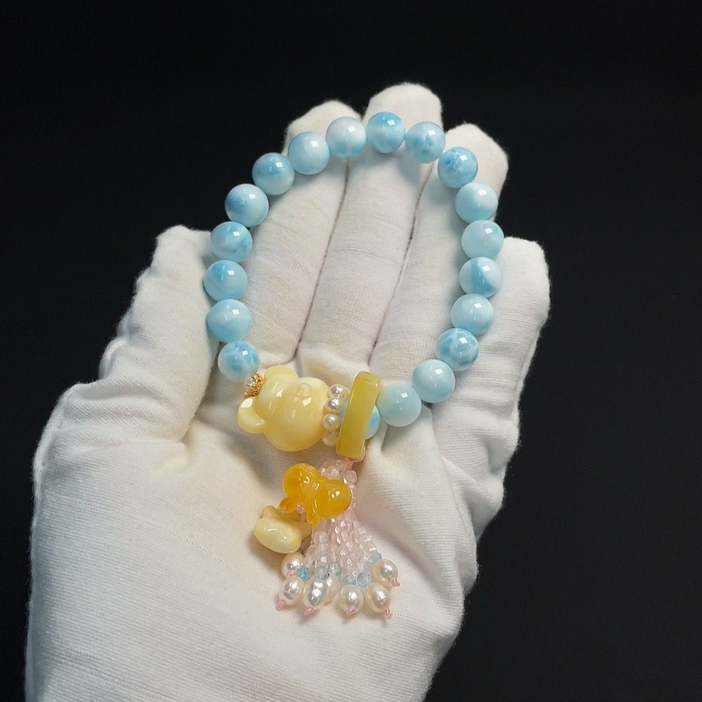 Larimar Bracelet Non-Gold Inlaid Approx. 9.5mm Total Weight About 32.19g With Amber, Pearl Non-Natural Matching Stones Considered