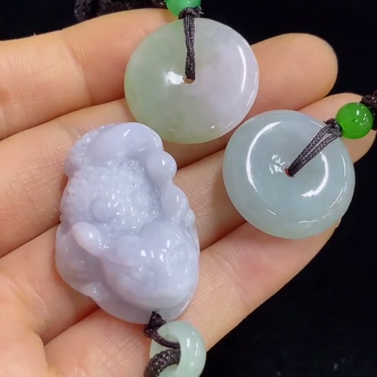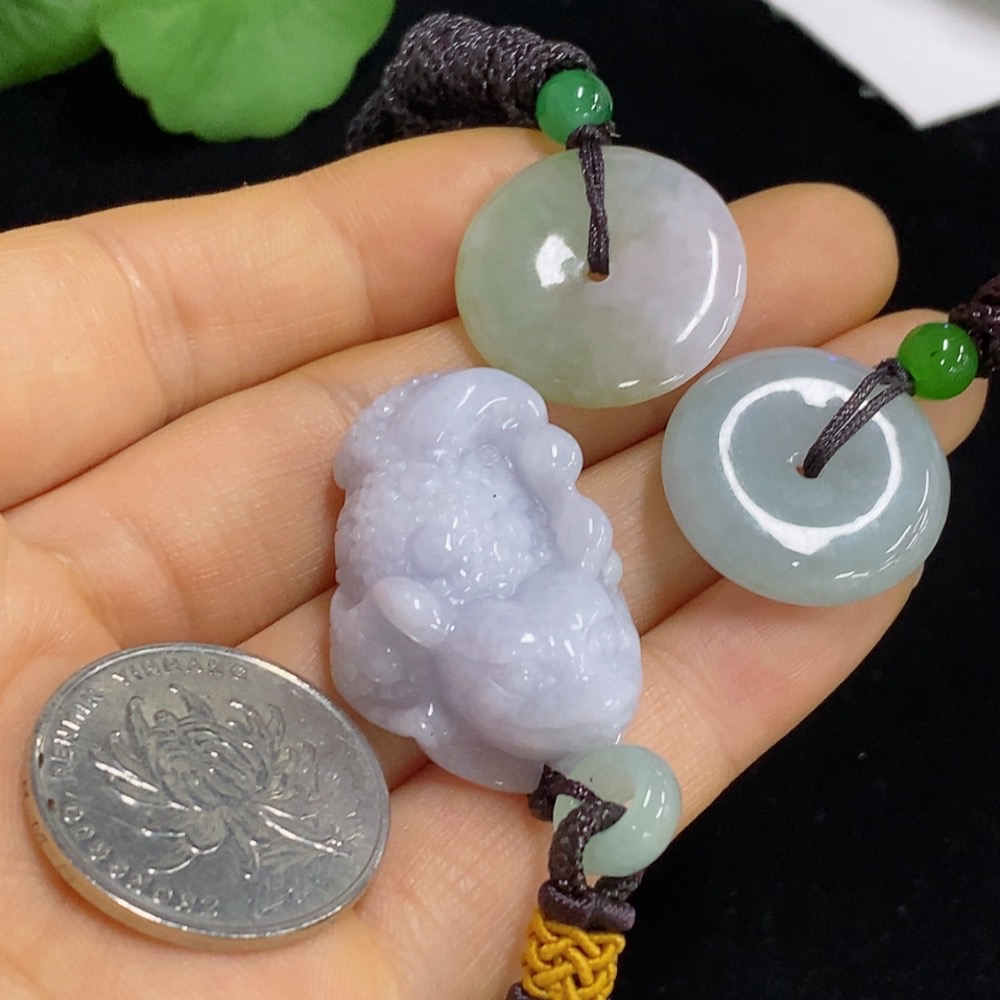 Jadeite Peace Knot/Tri-Legged Golden Toad Pendant Sell as a Lot with Non-Grade A Beads