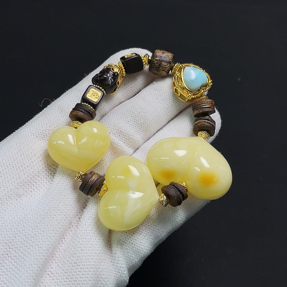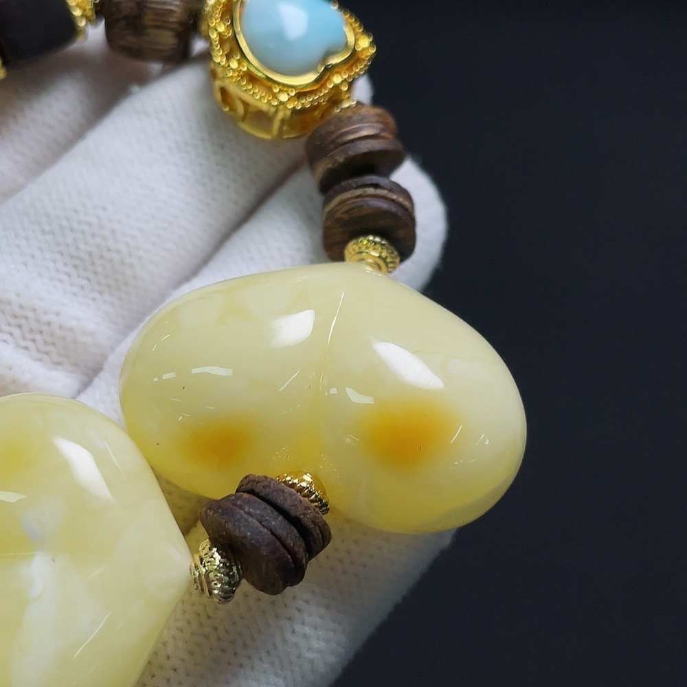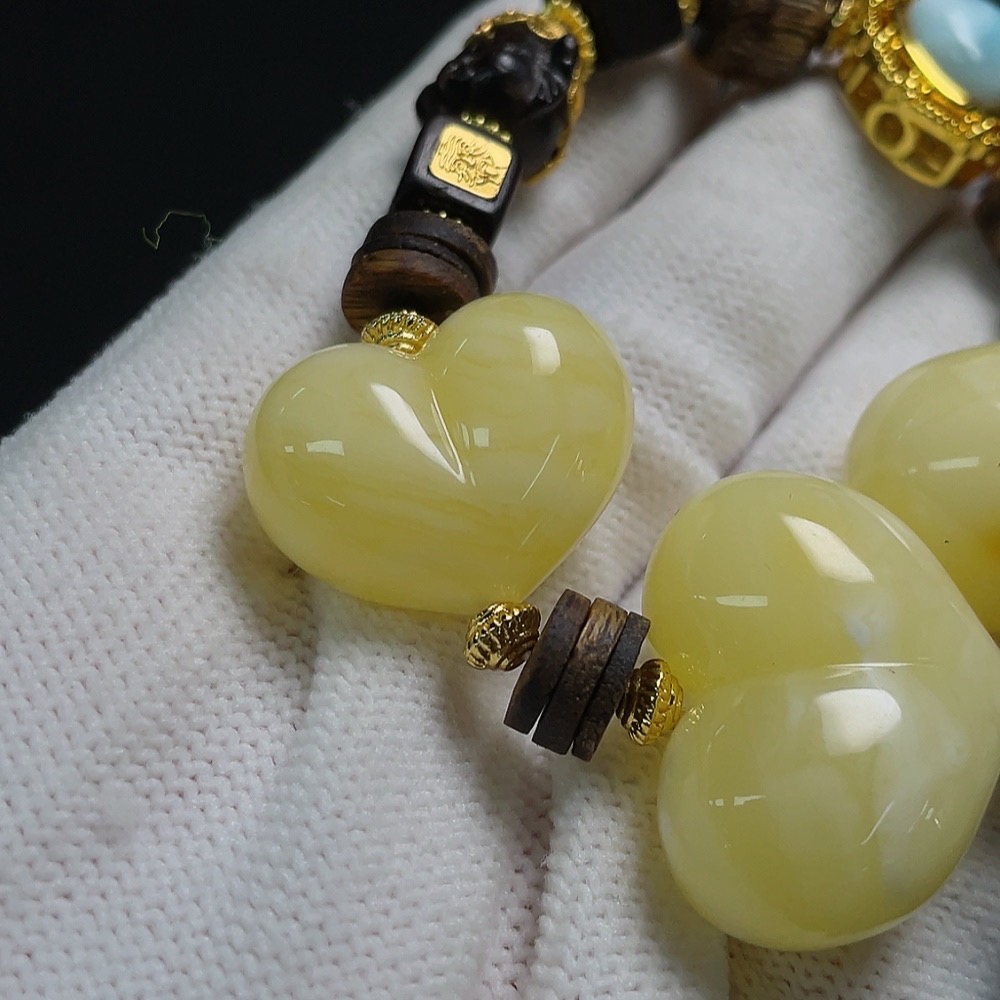 Amber Beeswax Bracelet with Larimar, Non-Gold, Total Weight Approx. 24.3g, Size About 32.3mm