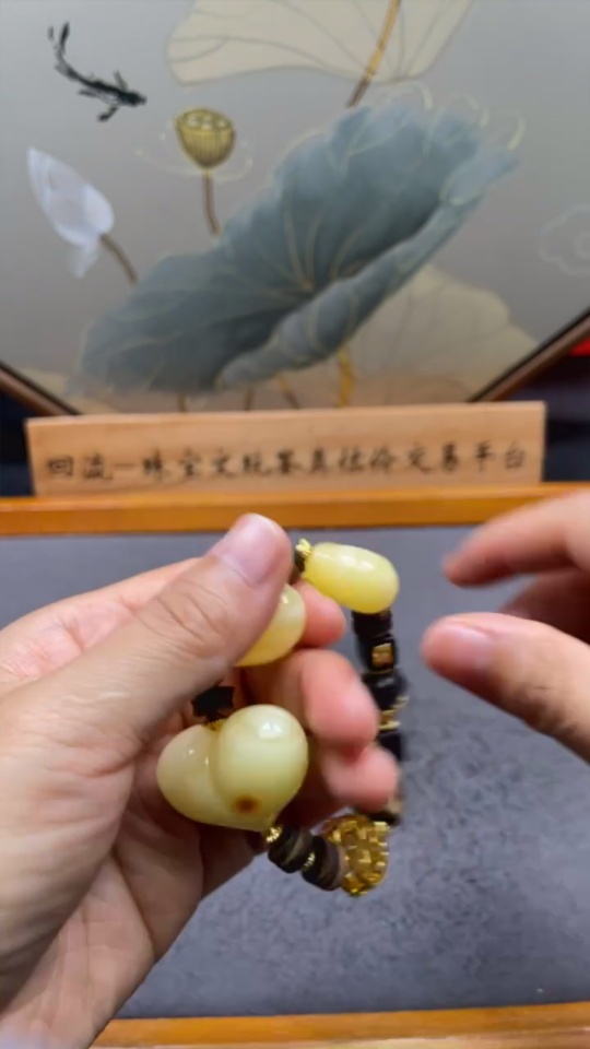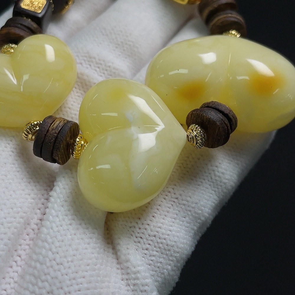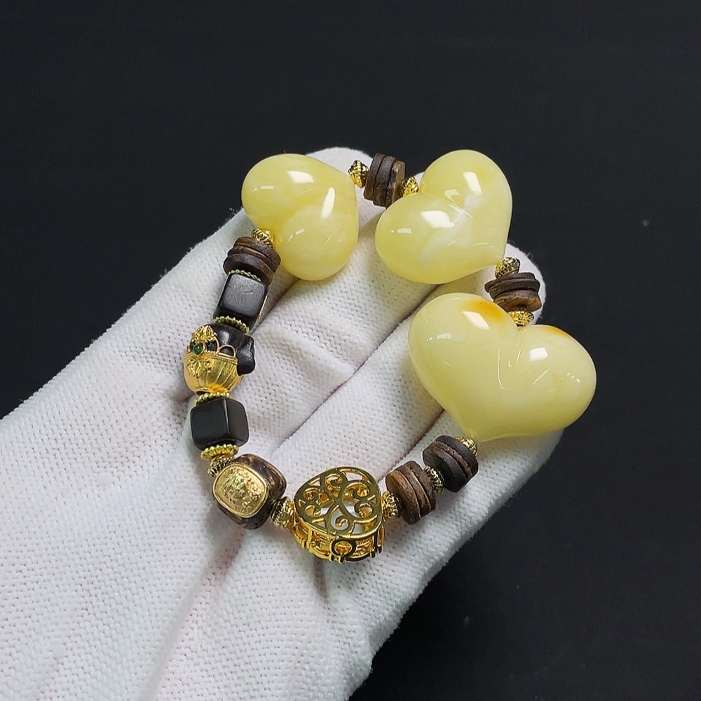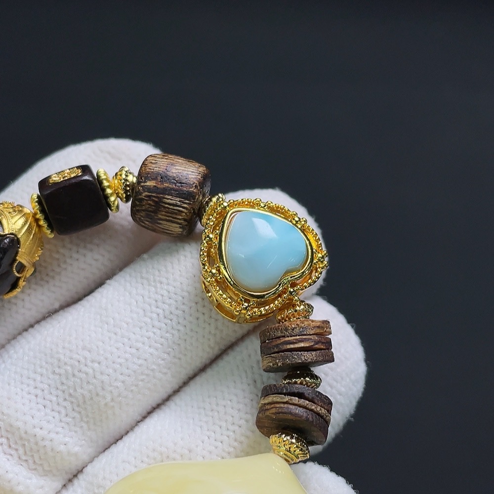 Amber Beeswax Bracelet with Larimar, Non-Gold, Total Weight Approx. 24.3g, Size About 32.3mm