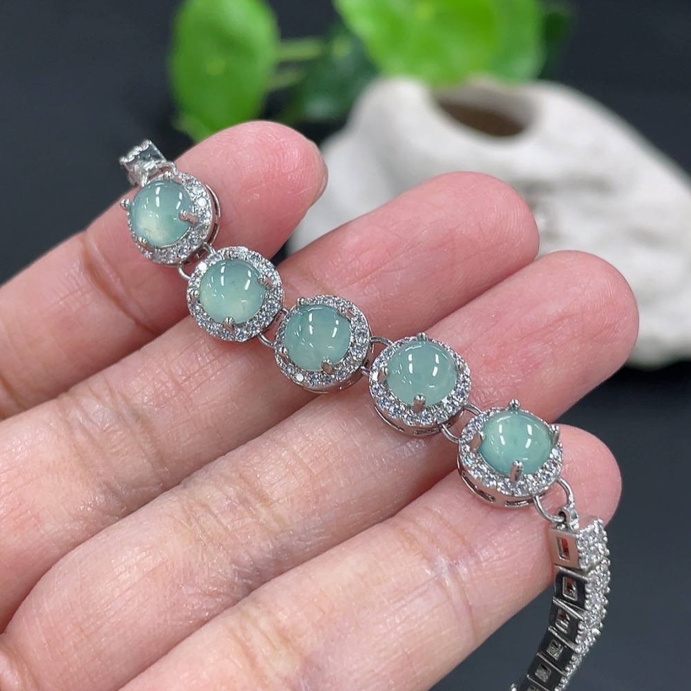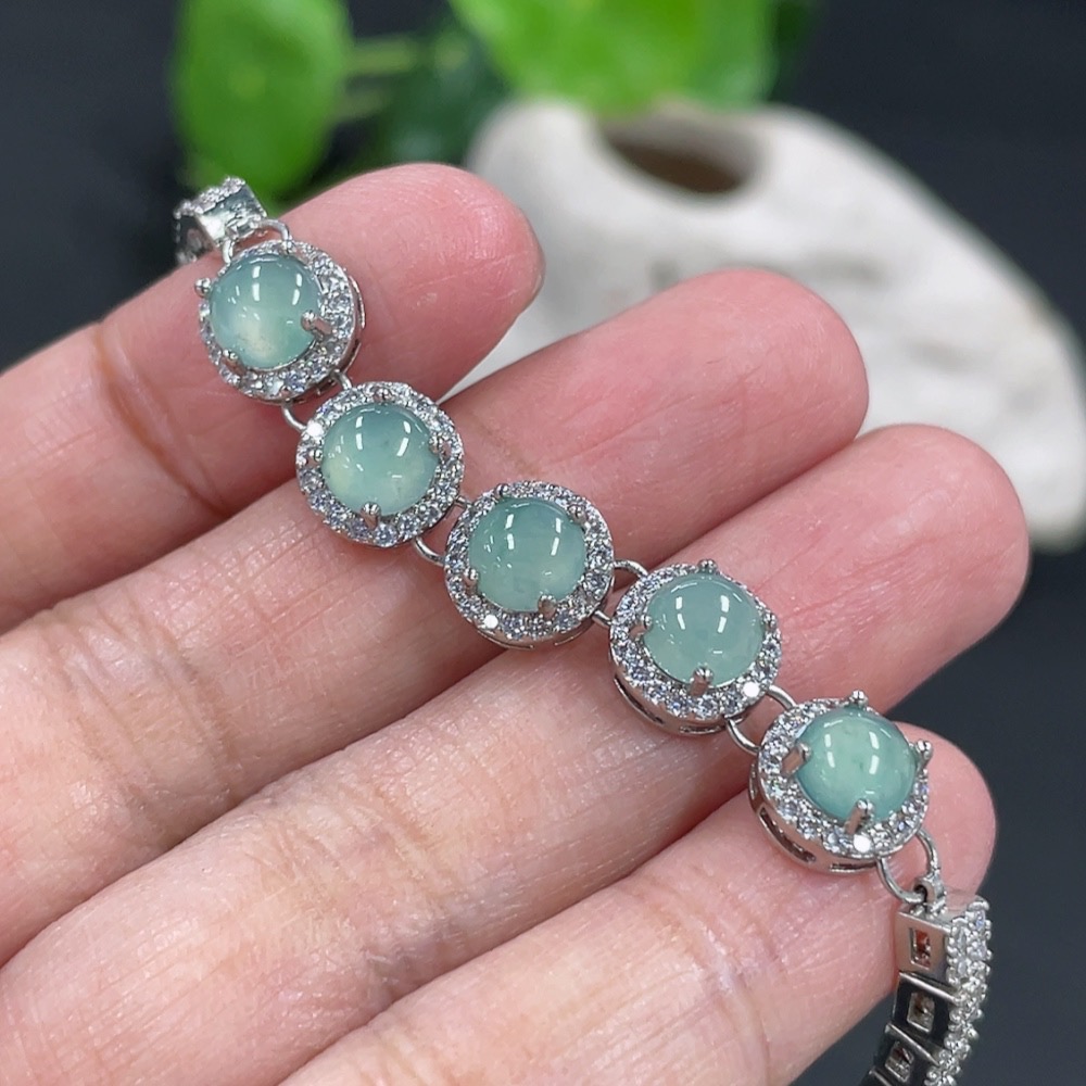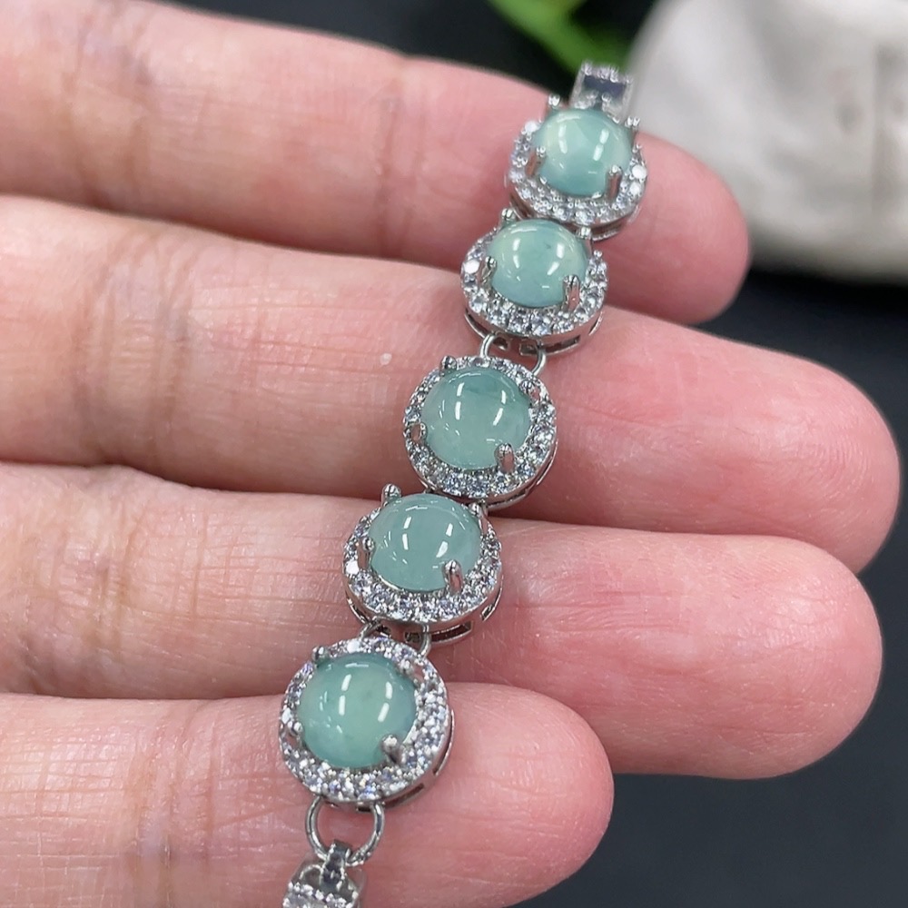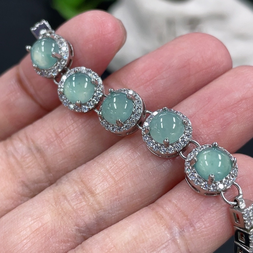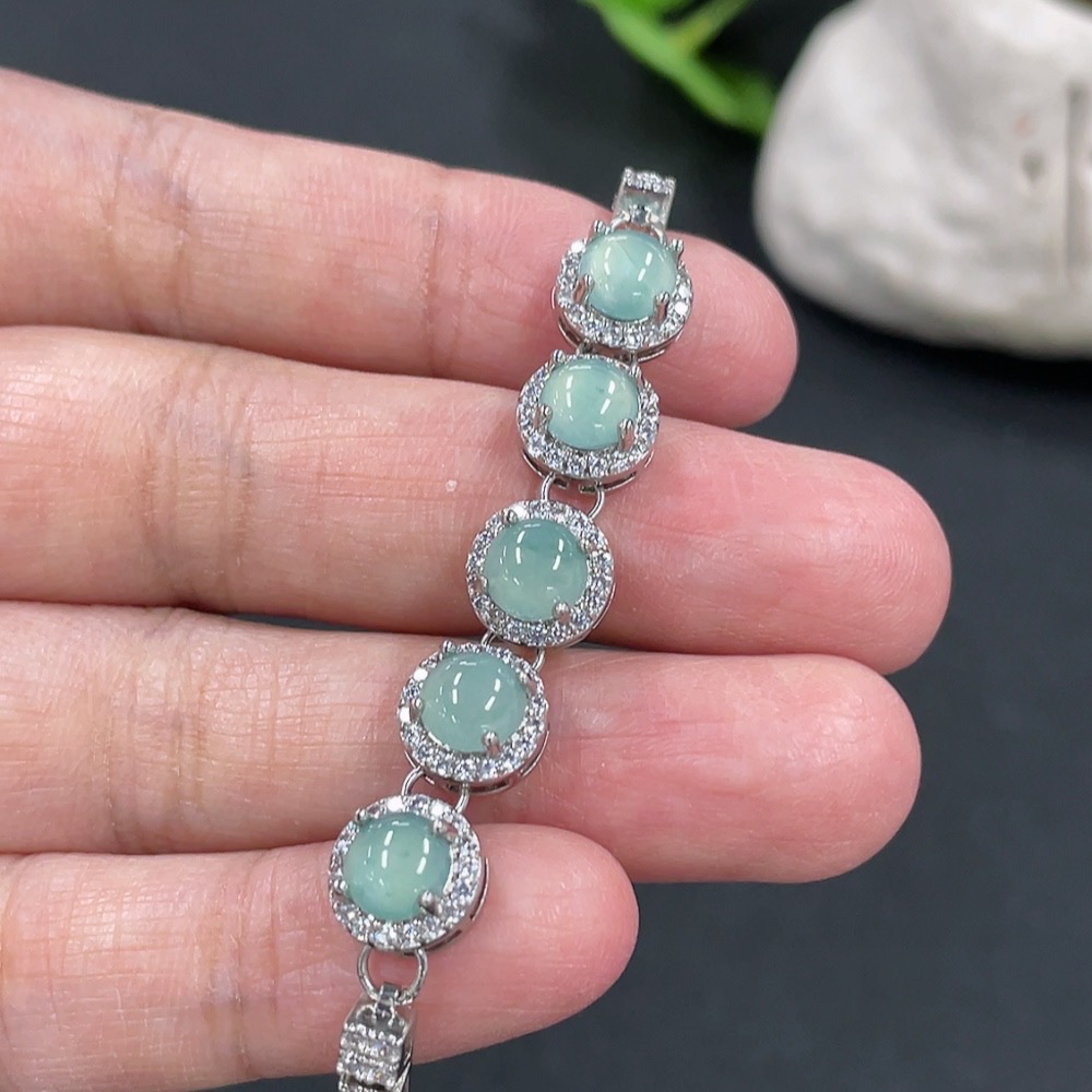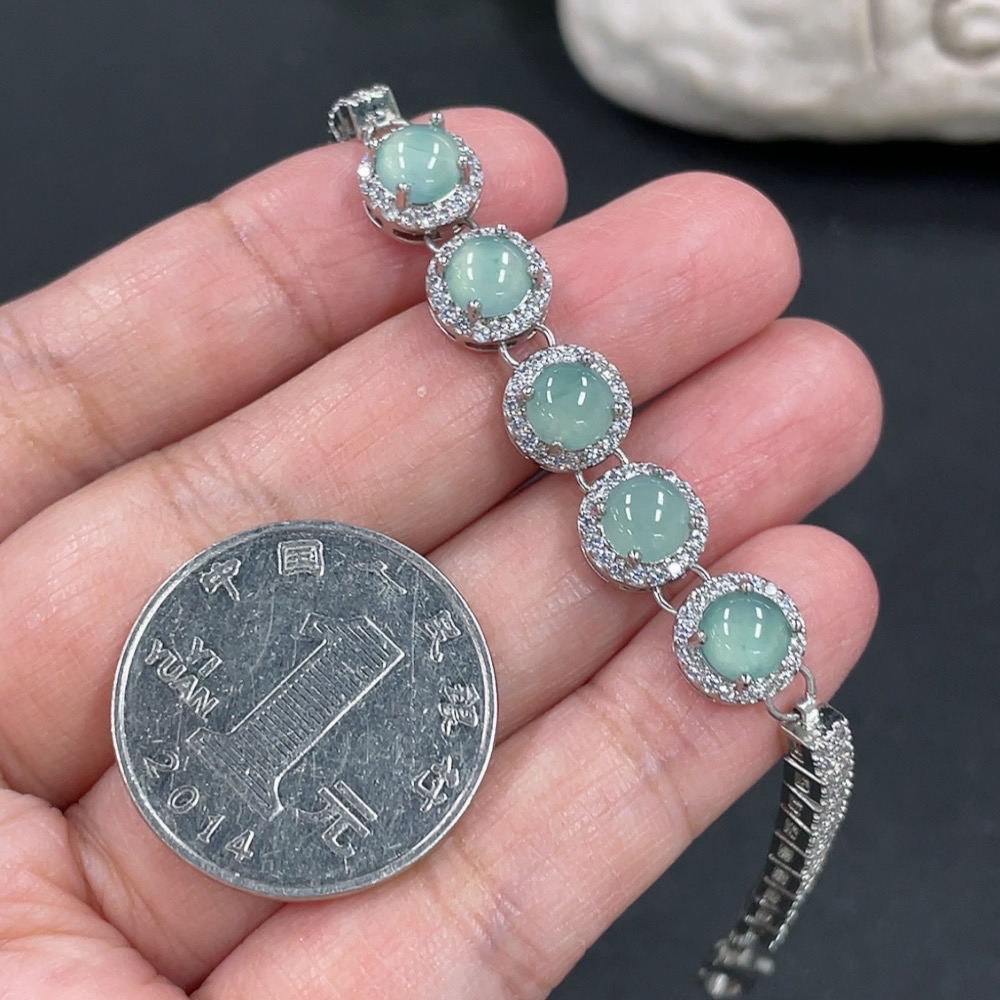 Jadeite Inlaid Bracelet Non-Gold Total Weight Approx. 8.29g